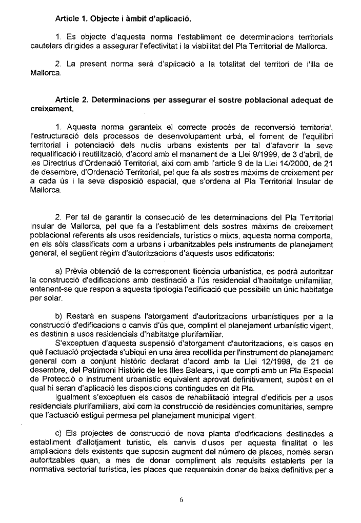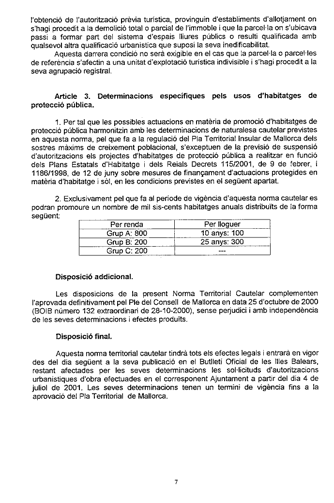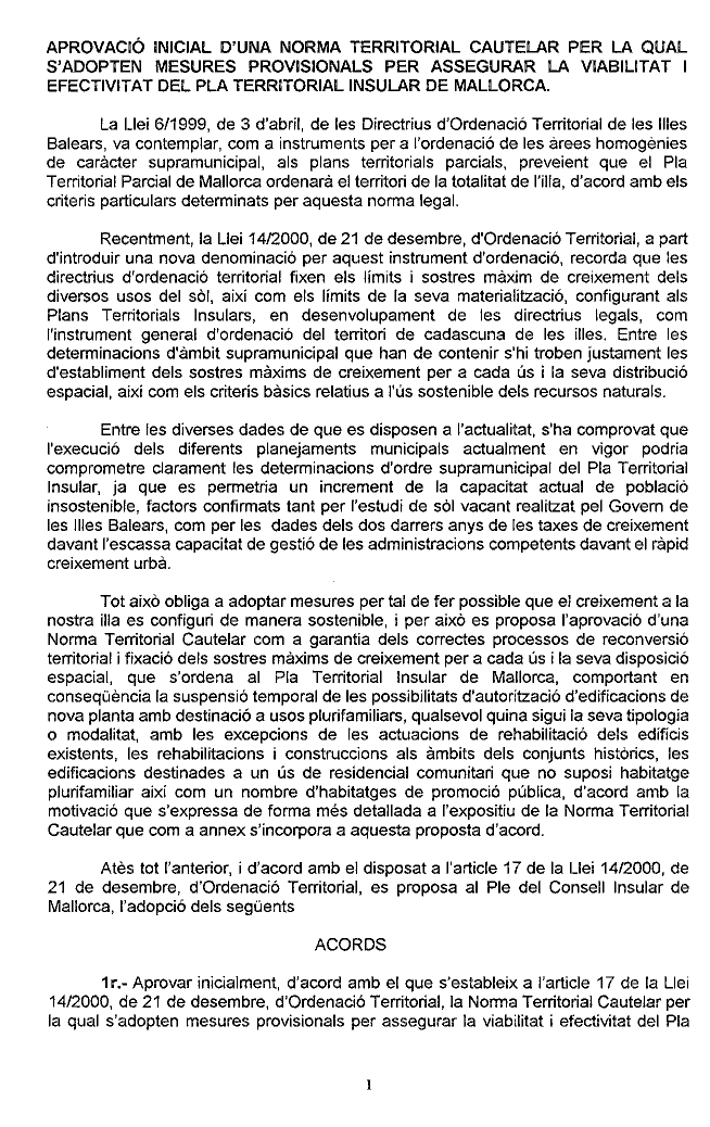 NORMA TERRITORIAL CAUTELAR DE MALLORCA ( Aprovada pel Consell Executiu en data 09.07.01)