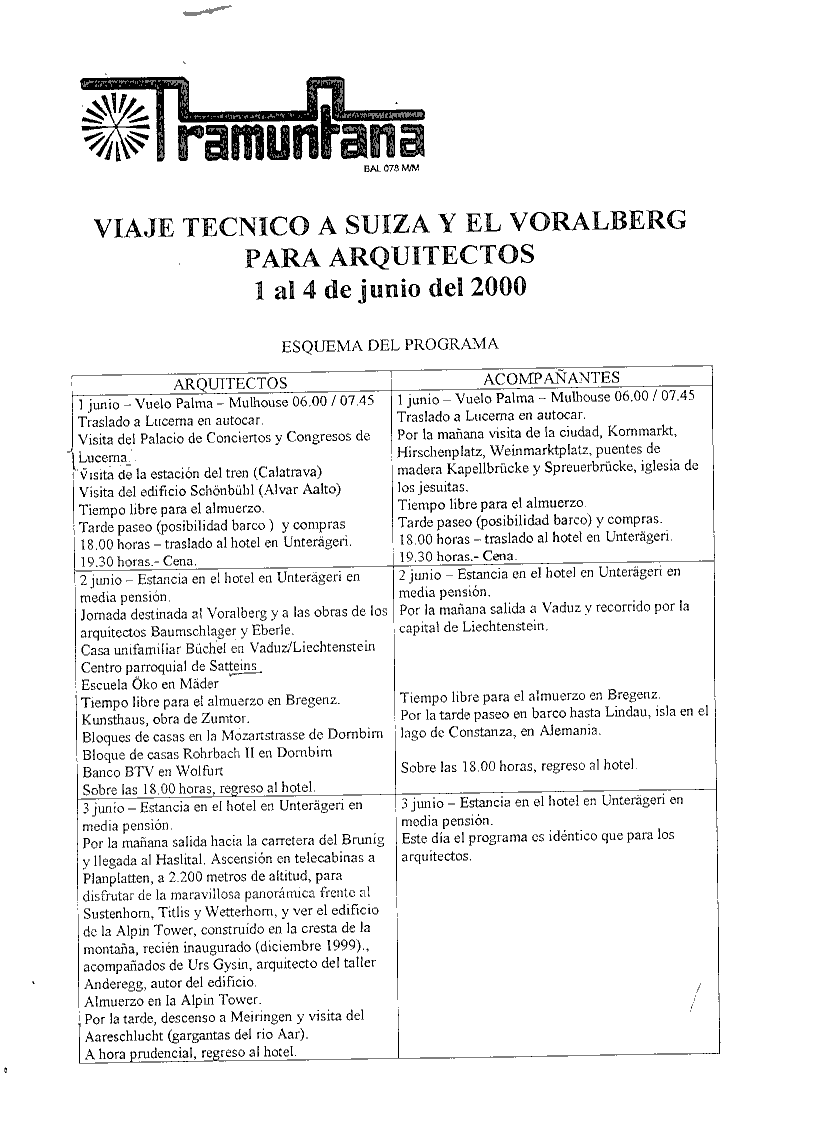 La Delegació Mallorca del C.O.A.B. està organitzant un viatge tècnic a Suïssa i el Voralberg, per a arquitectes del COAB i acompanyants.