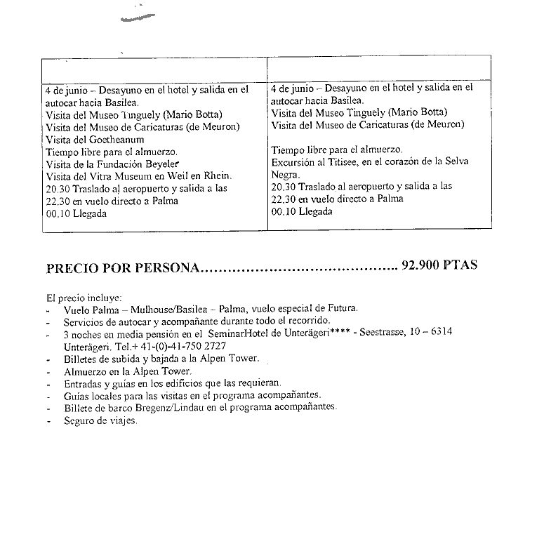Preu per persona: 92.200,- Pts. (Inclou desplaçaments, allotjament, visites guiades, assegurança de viatges).