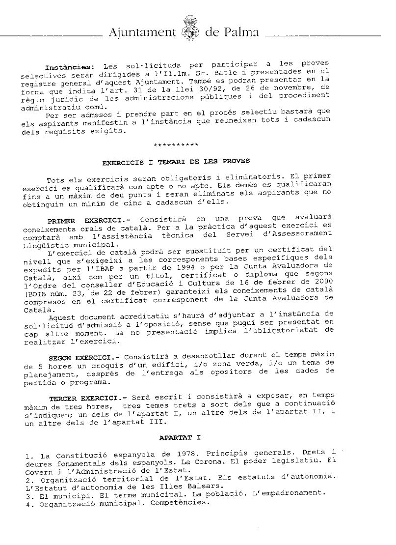 La premsa de data 16/05/00 publica anunci de l'Ajuntament de Palma amb la convocatòria de proves selectives pel nomenament, amb caràcter interí, de dos arquitectes superiors.