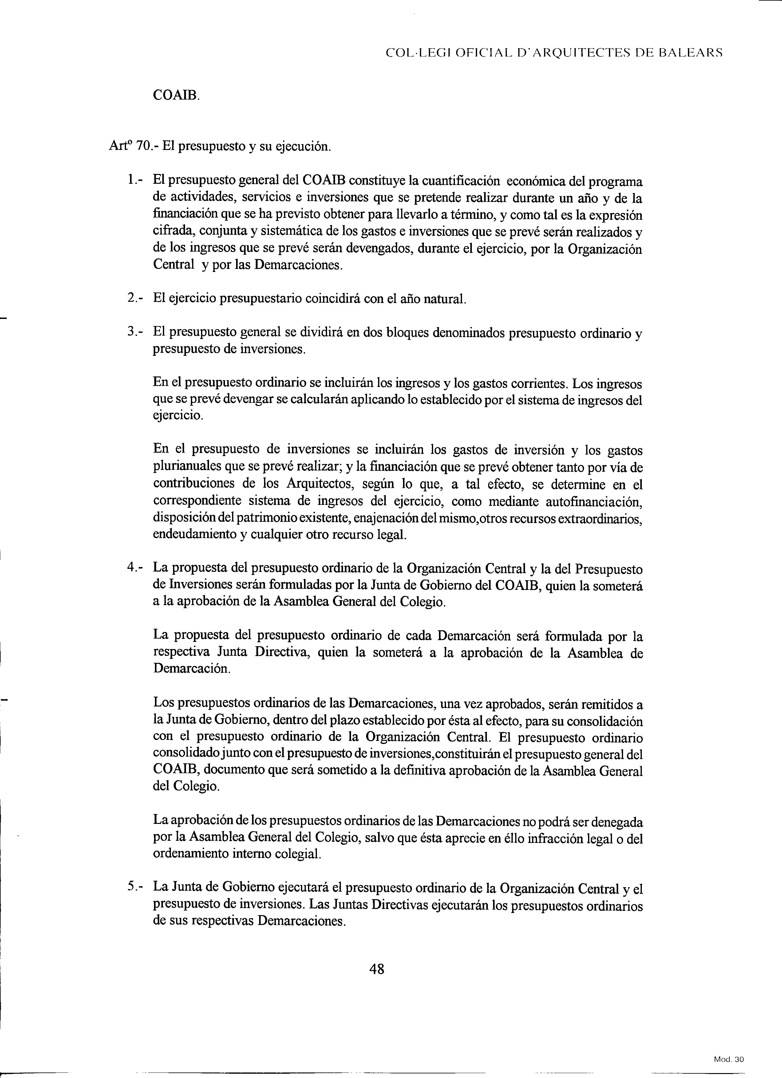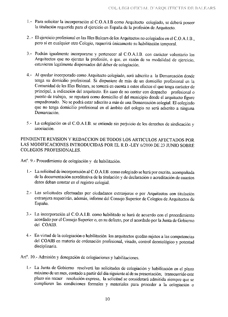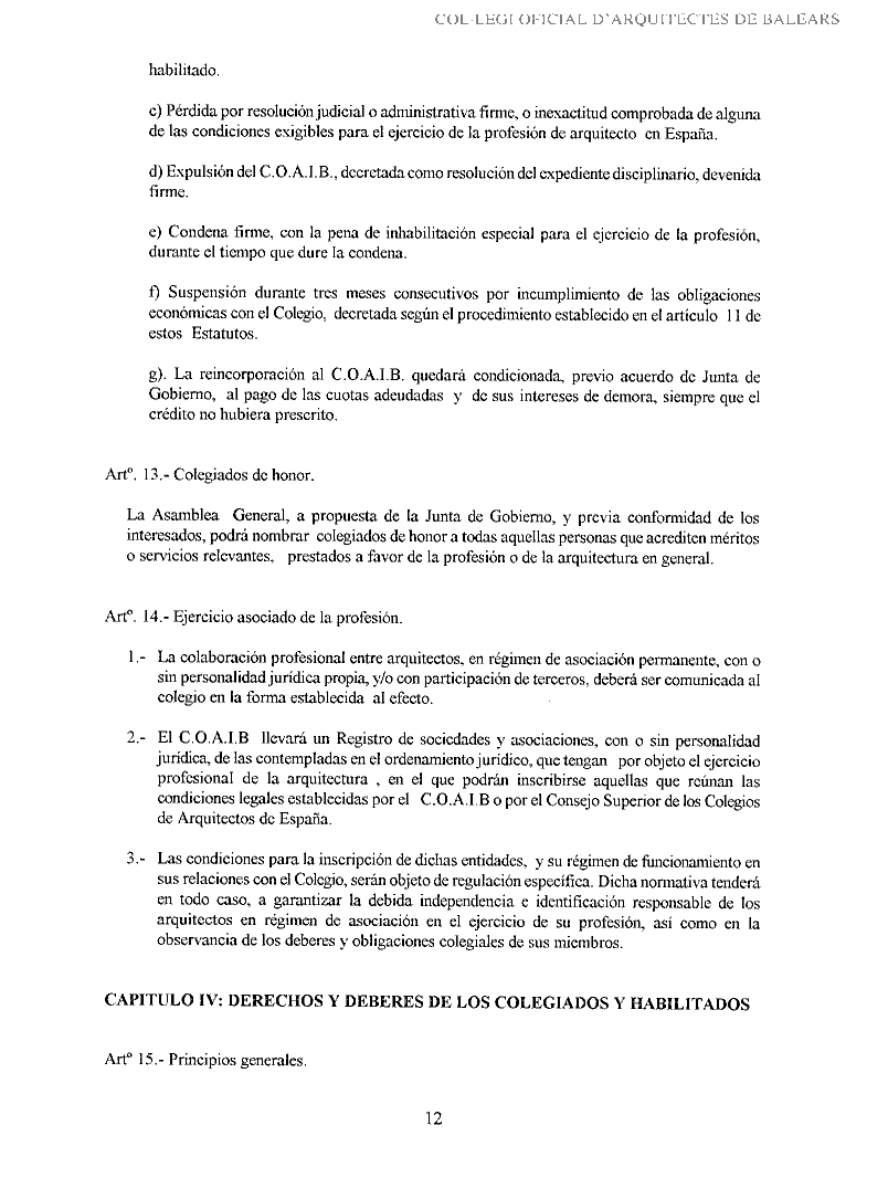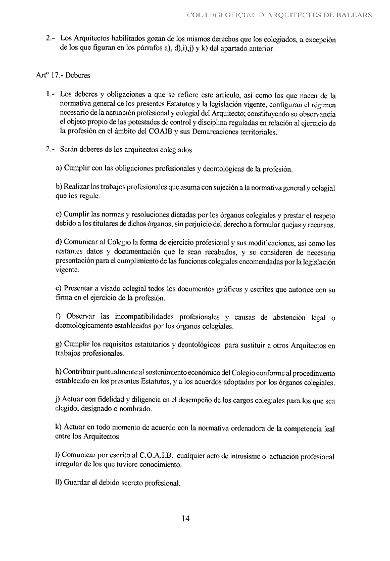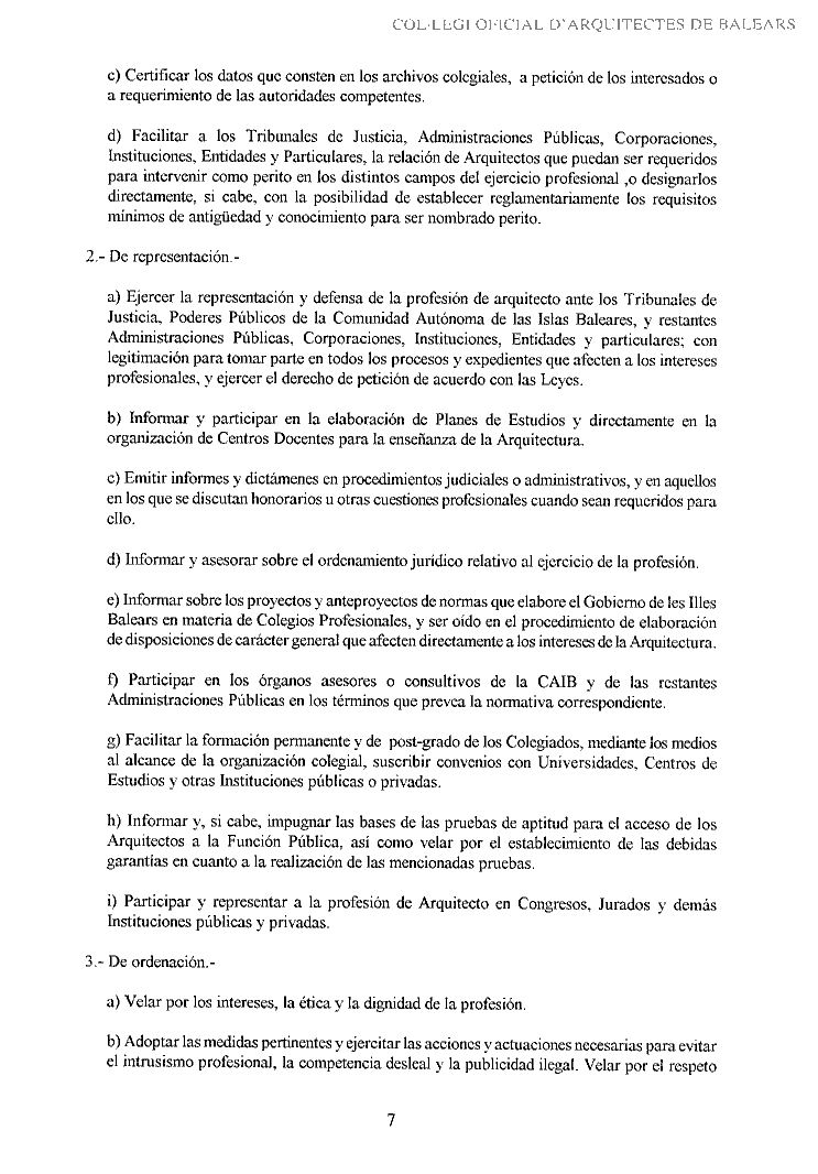 Estatuts del Col·legi Oficial d'Arquitectes de Balears.