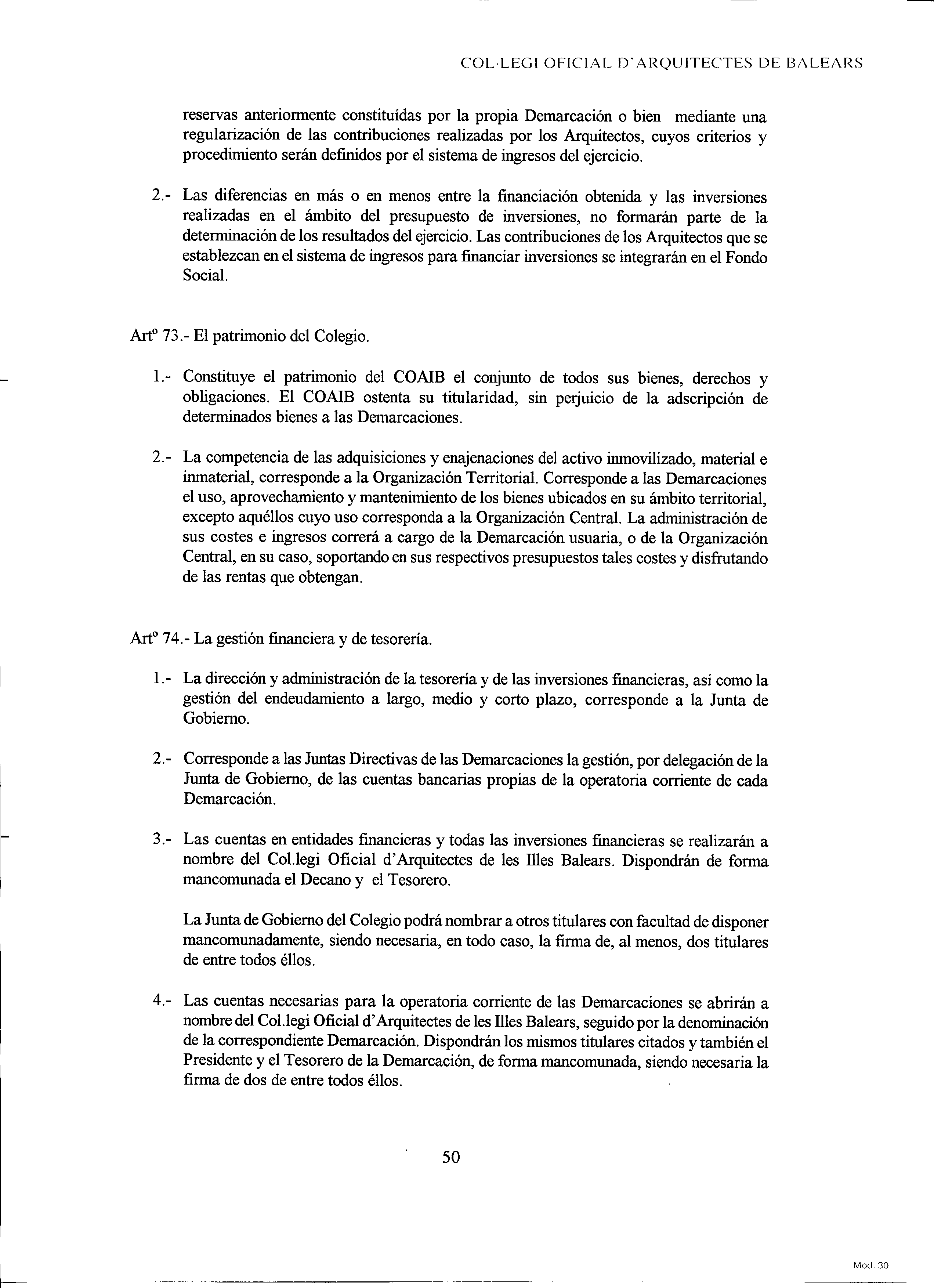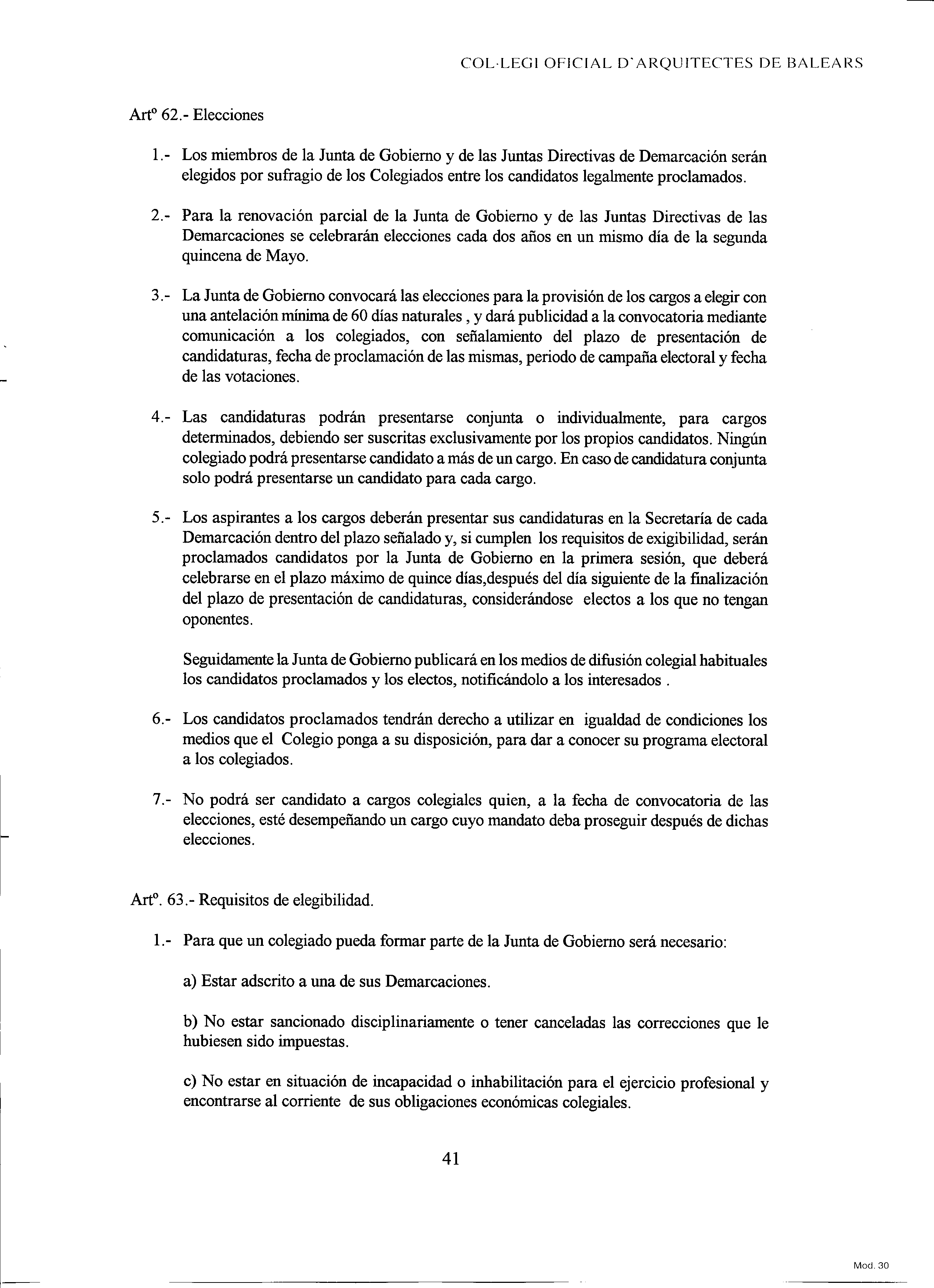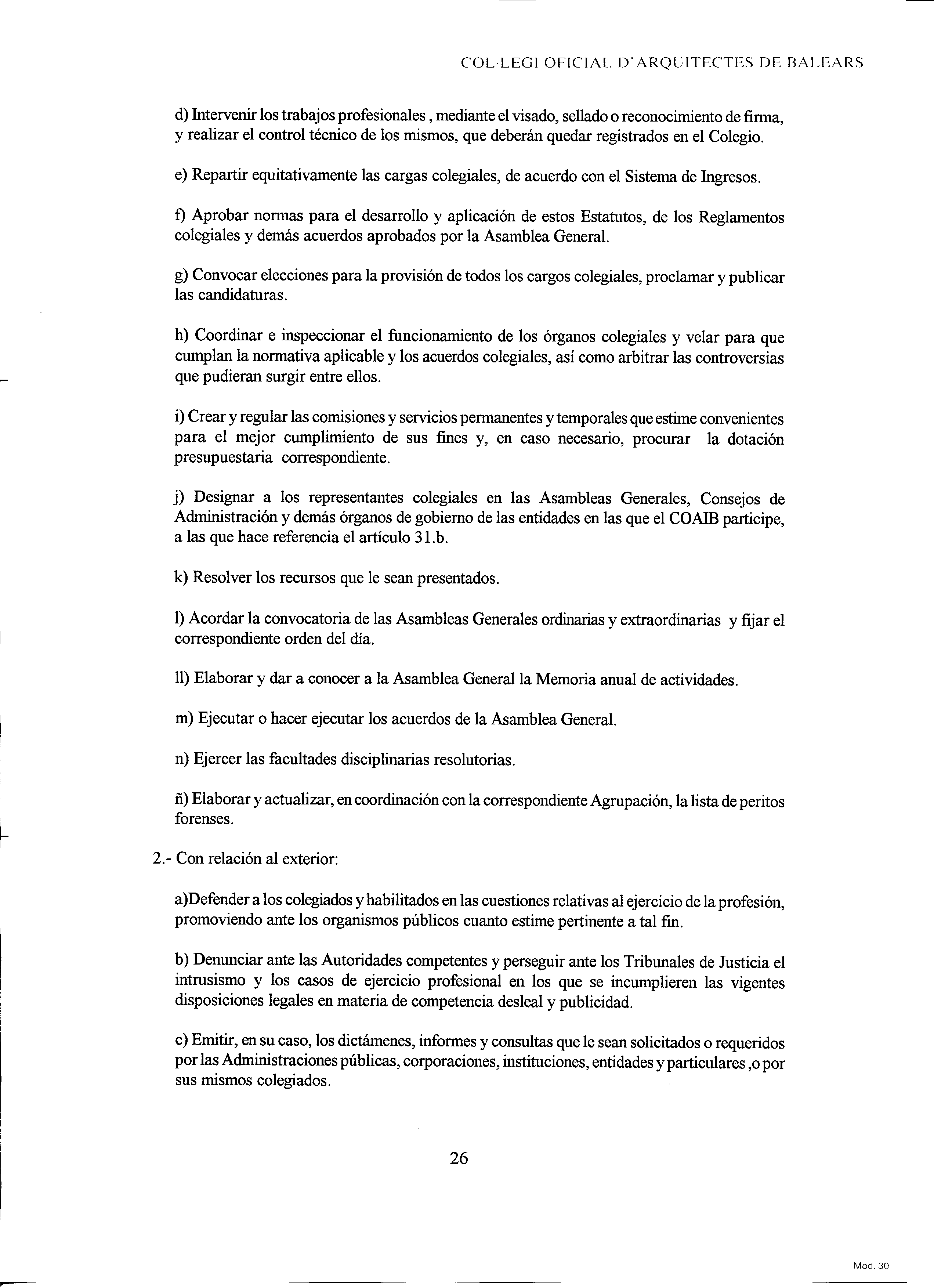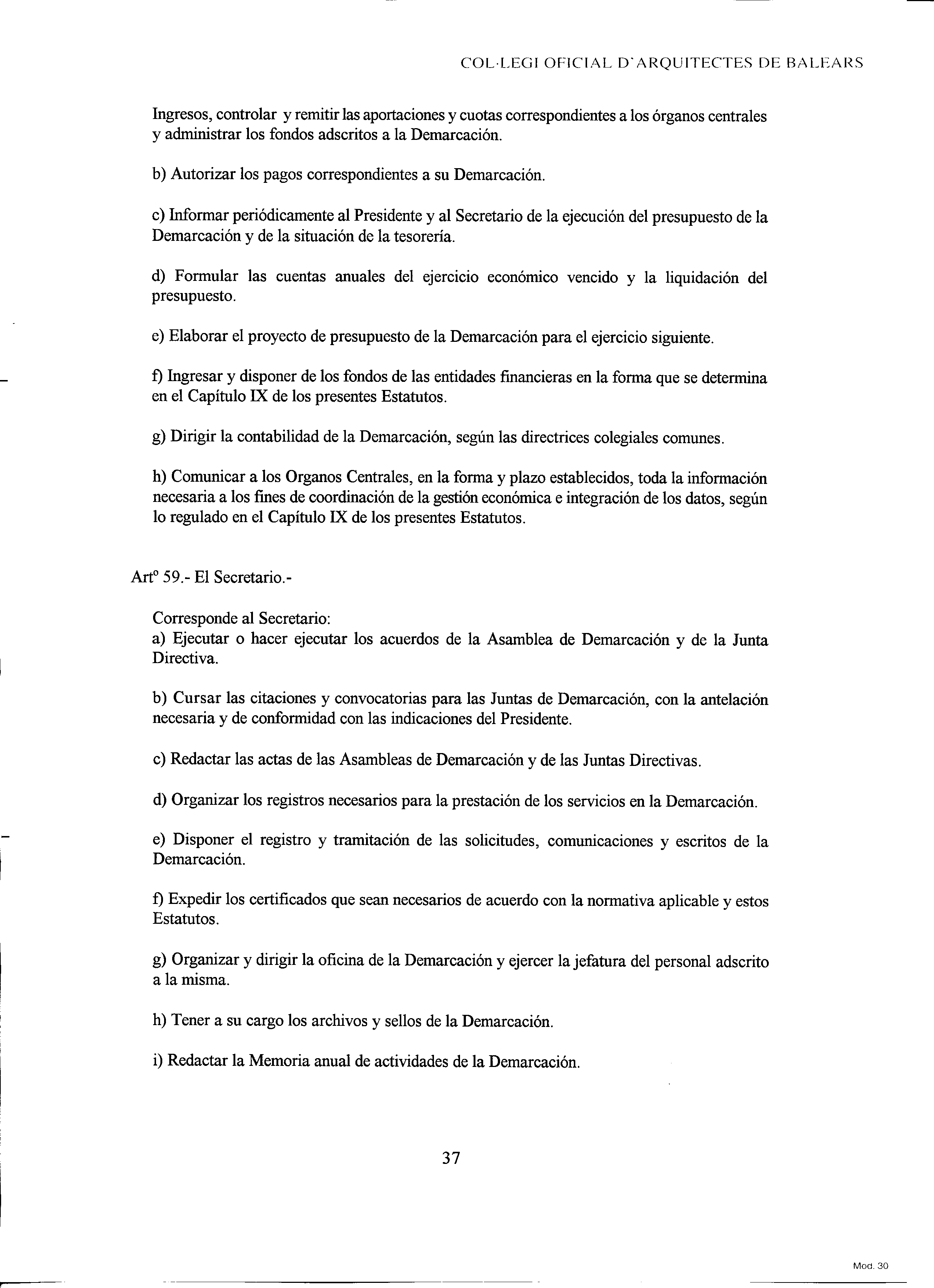 Estatuts del Col·legi Oficial d'Arquitectes de Balears.
