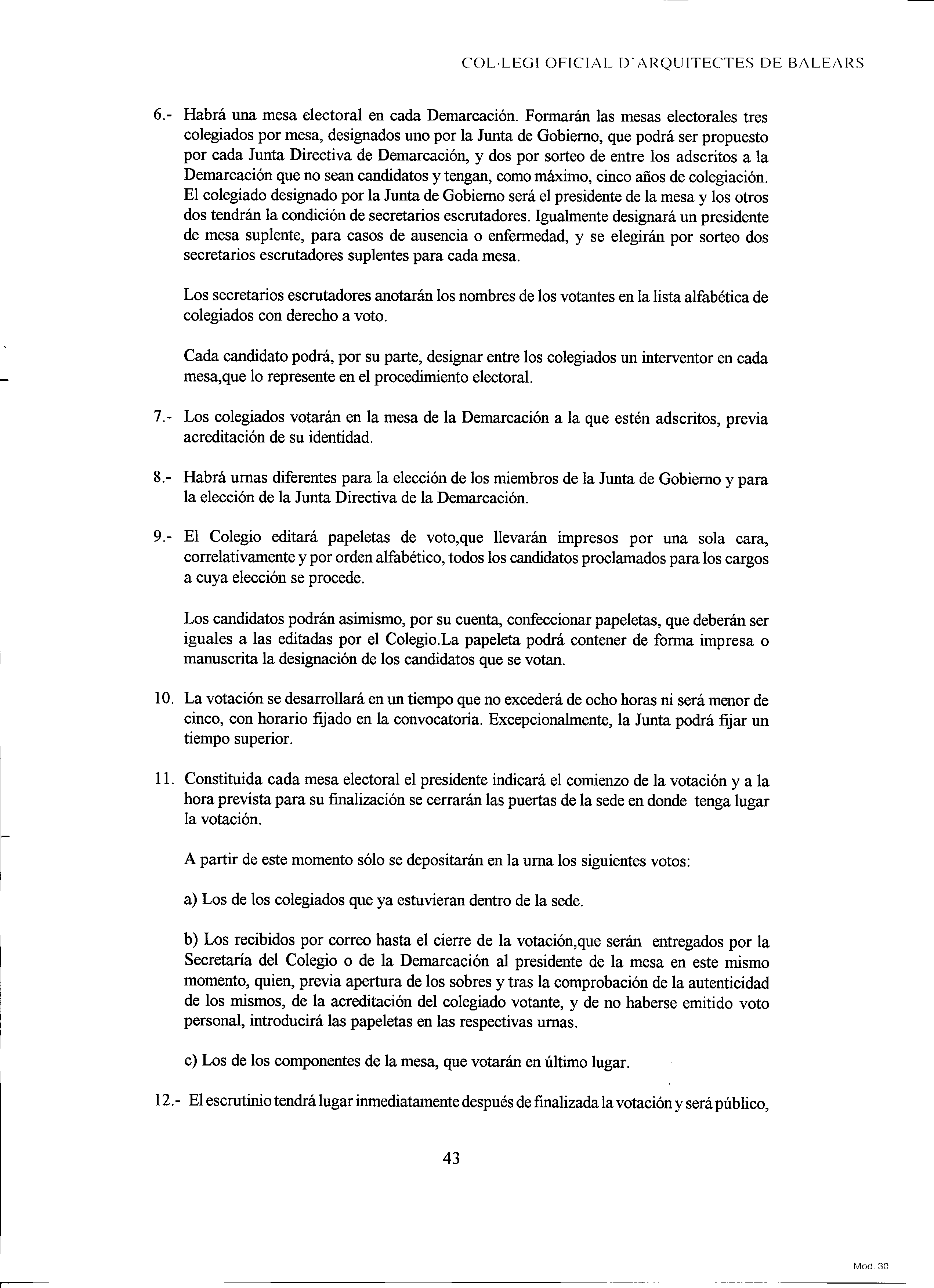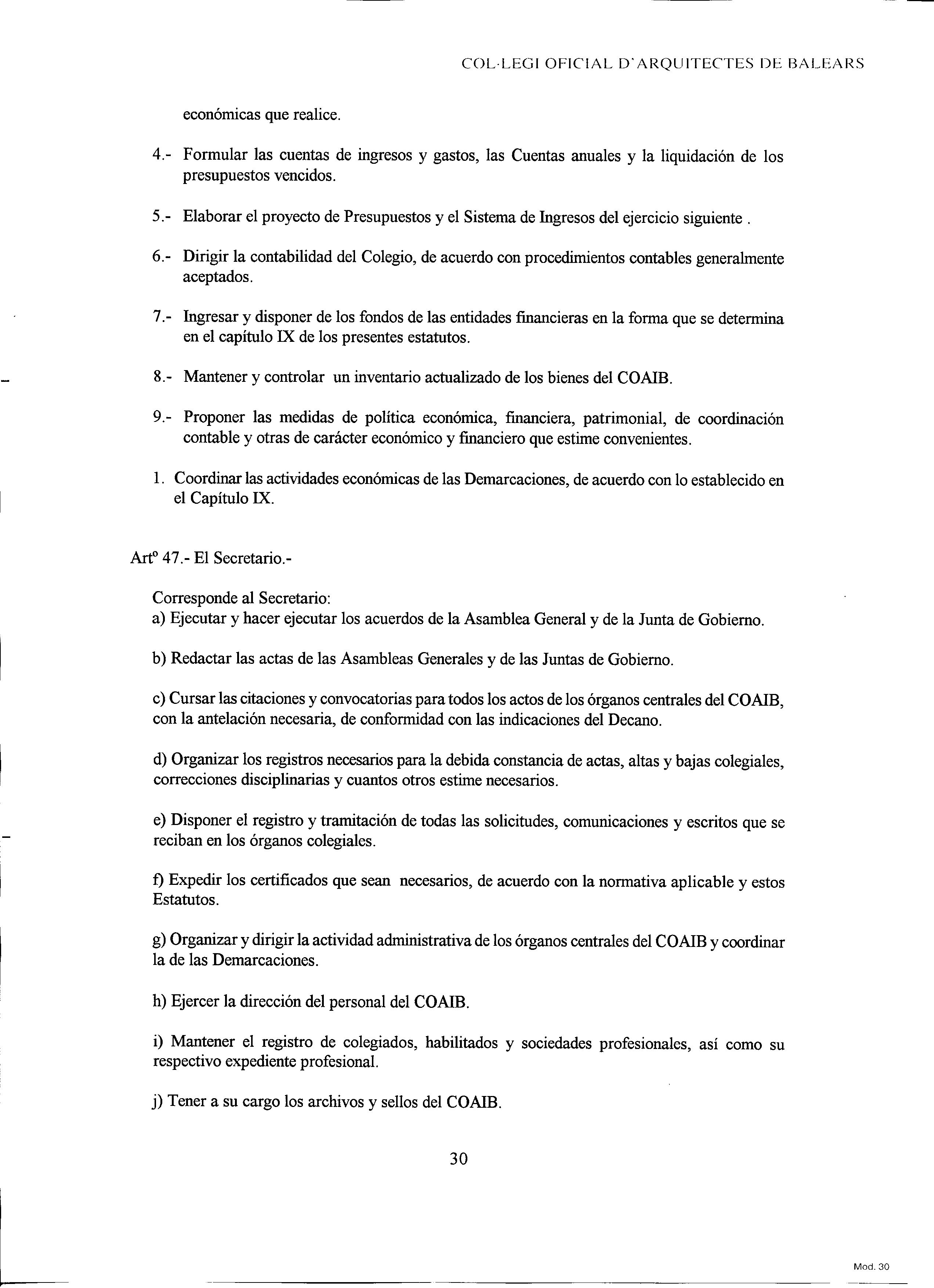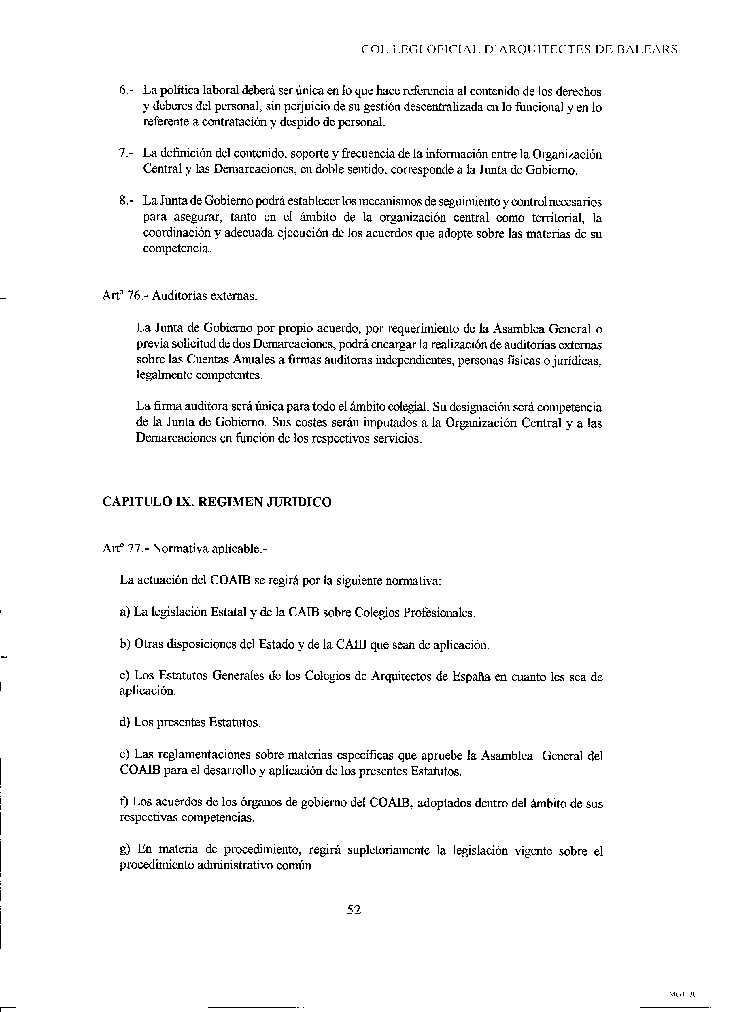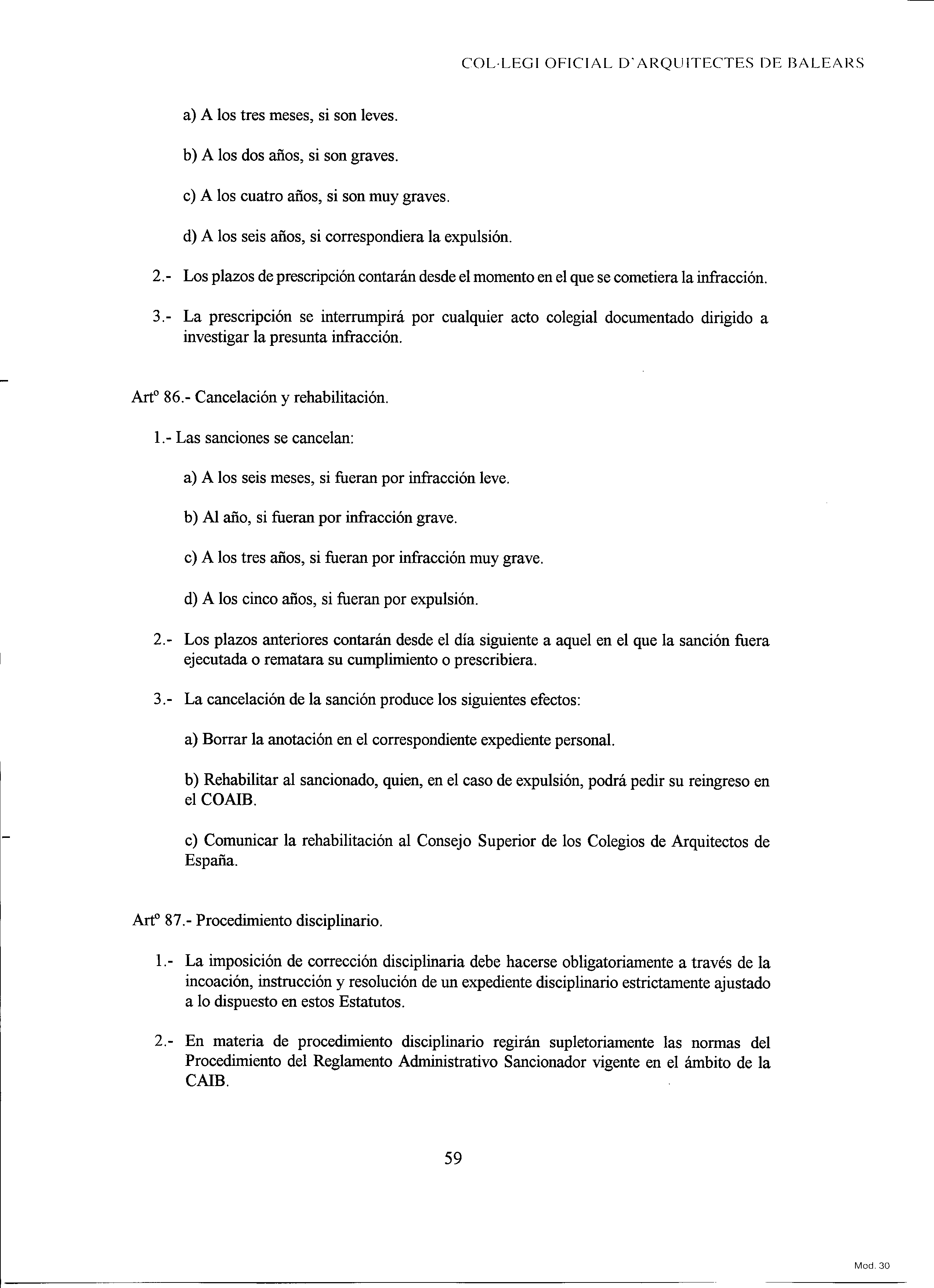 Estatuts del Col·legi Oficial d'Arquitectes de Balears.