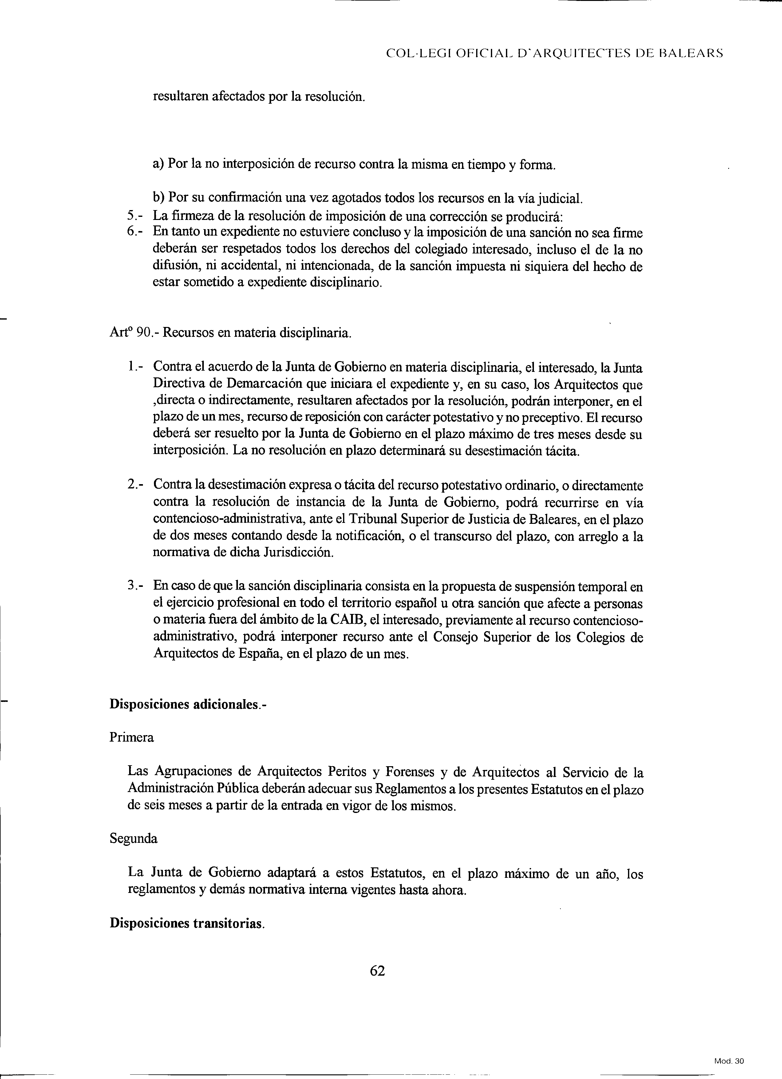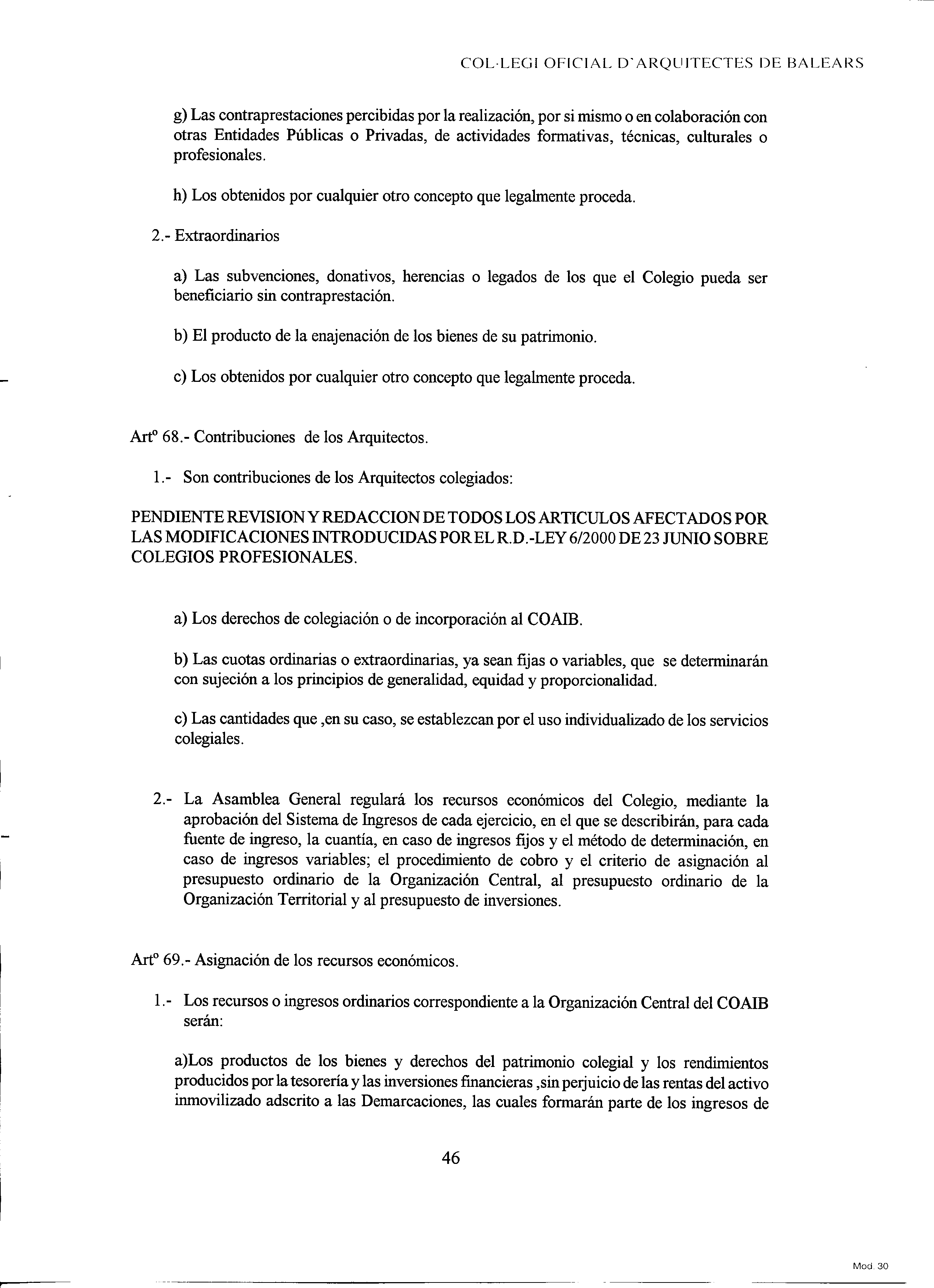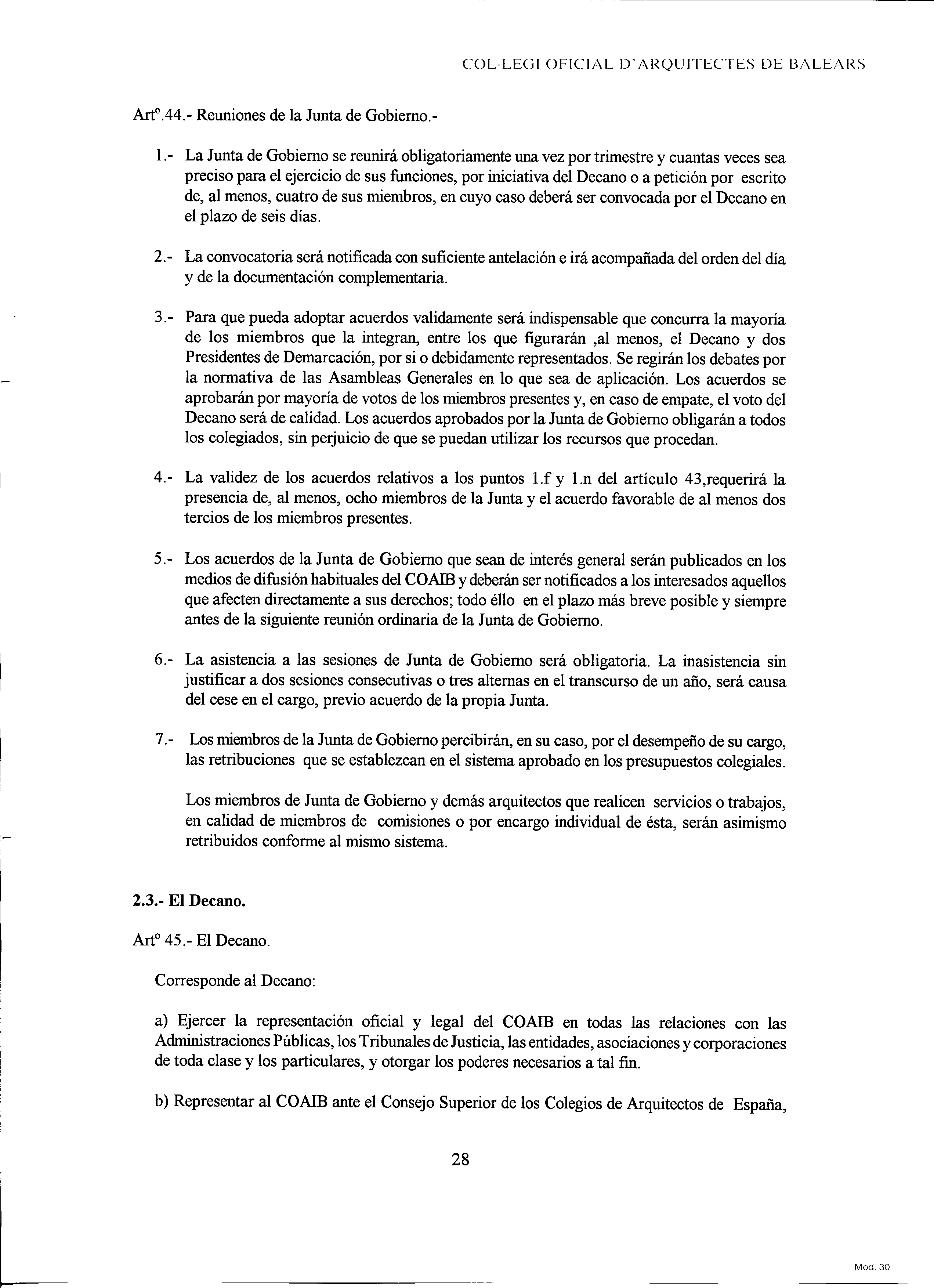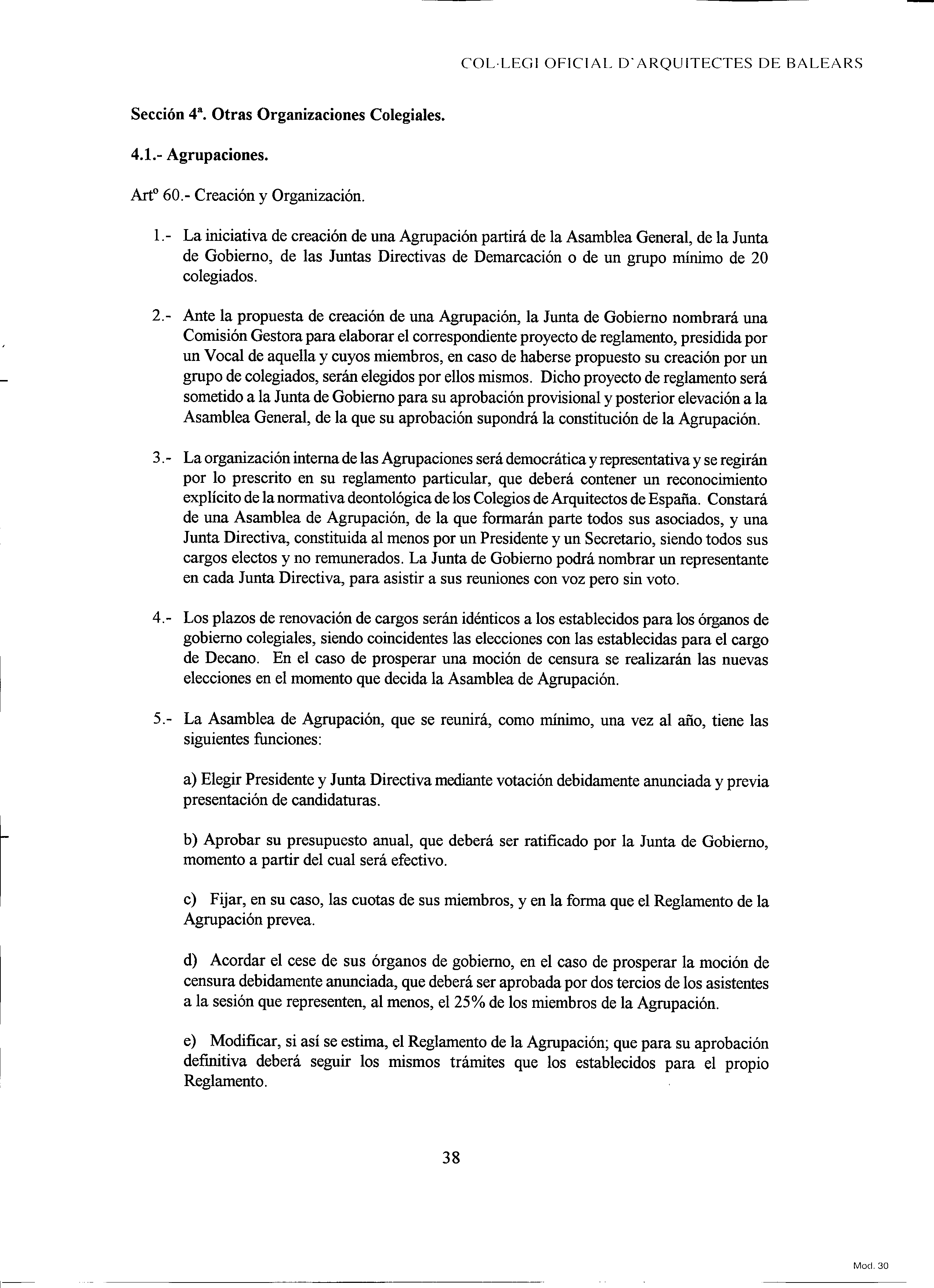 Estatuts del Col·legi Oficial d'Arquitectes de Balears.