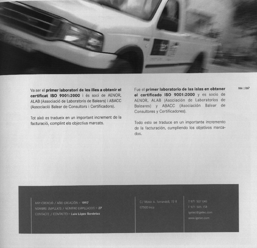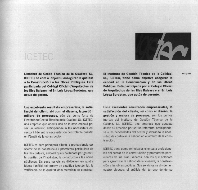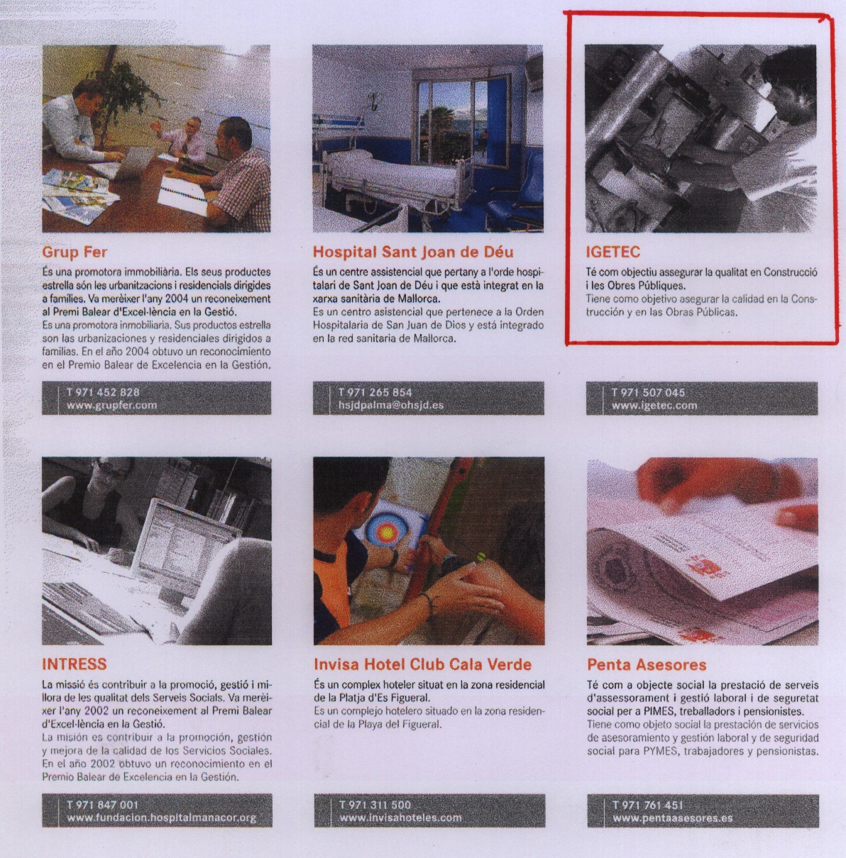 El Instituto de Gestión Técnica de Calidad, S.L. (IGETEC S.L.) , empresa participada por el COAIB, con sede en Inca, ha sido calificada por el Institut d'Innovació Empresarial, IDI, de la Conselleria de Comerç, Indústria i Energia del Govern de les Illes Balears, como "Empresa Excelente" y ha sido incluida en el Catálogo de "Empresas Excelentes 2005/2006" junto con otras 20 empresas y entidades de las Illes Balears.