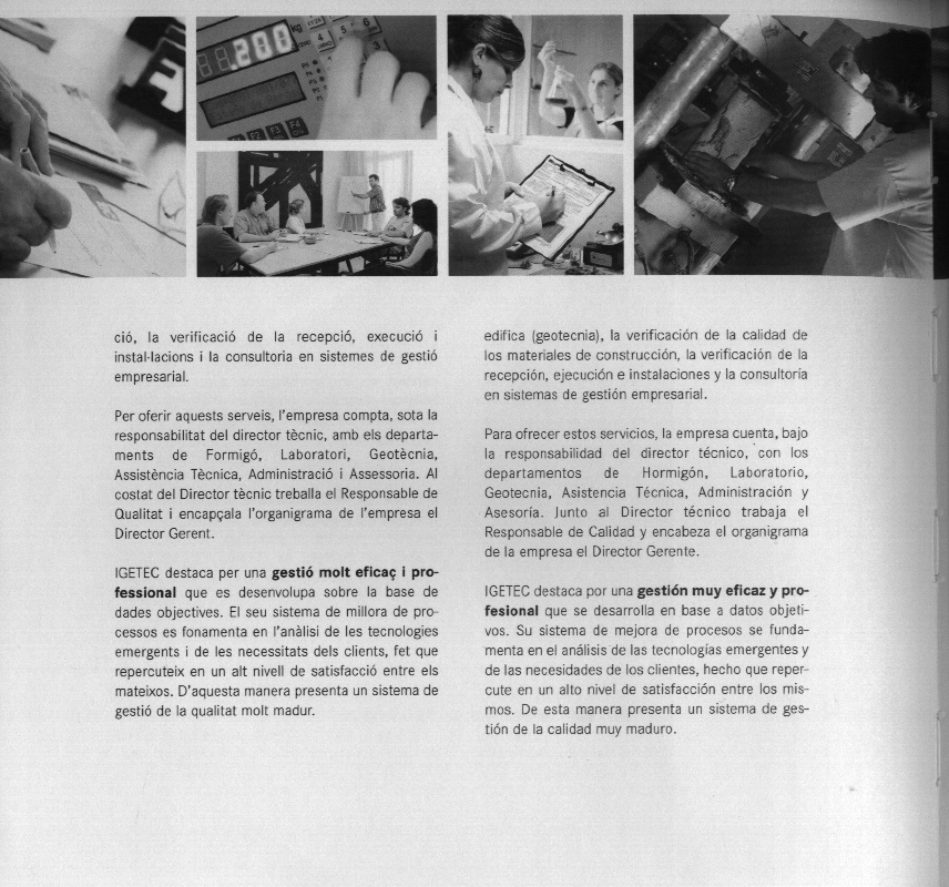 IGETEC desarrolla cuatro líneas de actividad: geotecnia, laboratorio de ensayos de materiales de construcción, asistencia técnica para el control de obras y asesoría para la implantación de sistemas de gestión de calidad.