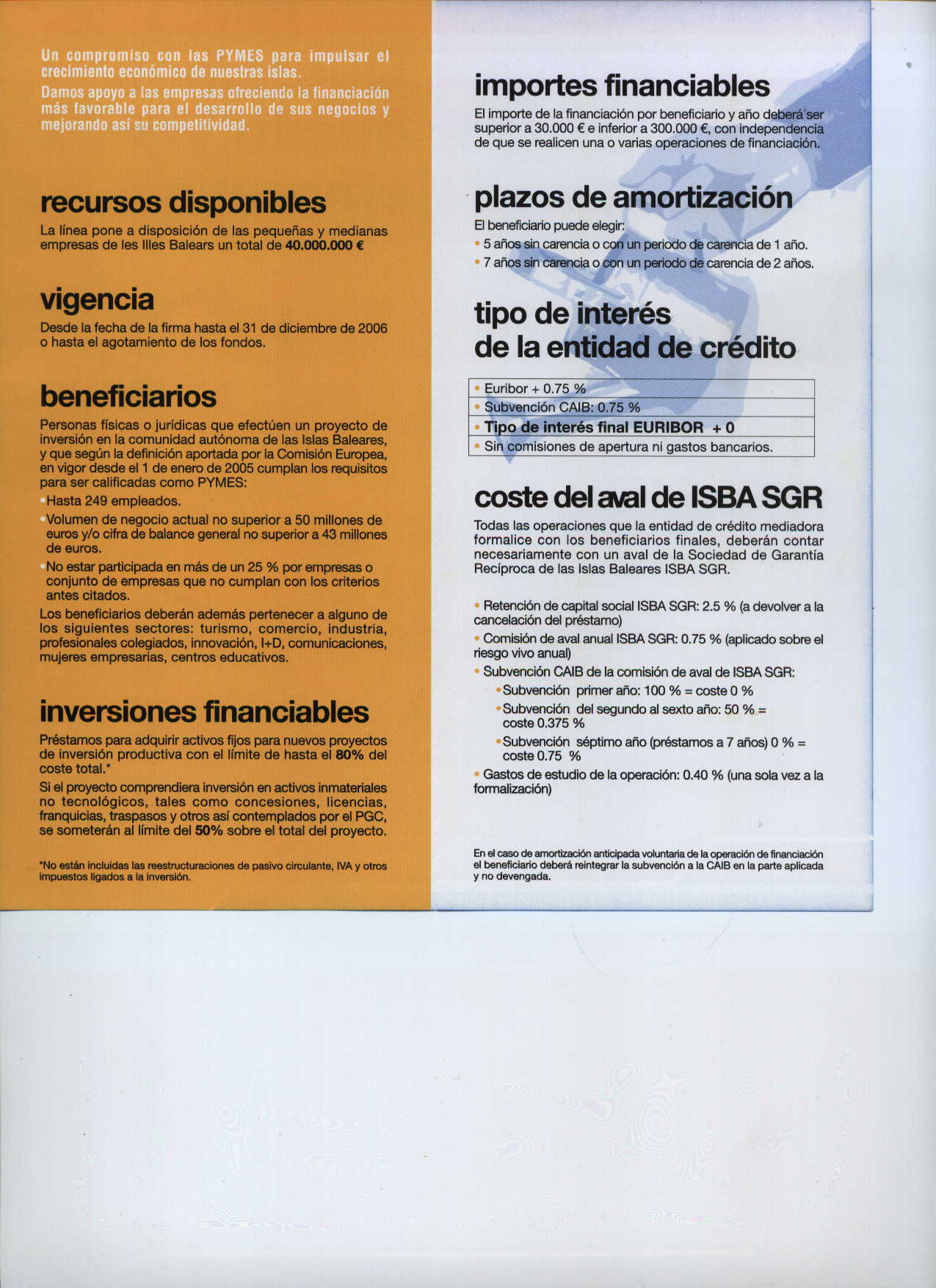 "CAIB- ICO (Instituto de Crédito Oficial) 2006" cuenta con la subvención del Gobierno de las Islas Baleares y permite que las pymes sólo paguen el euribor (eliminando el 0,75% del margen del tipo de interés).
