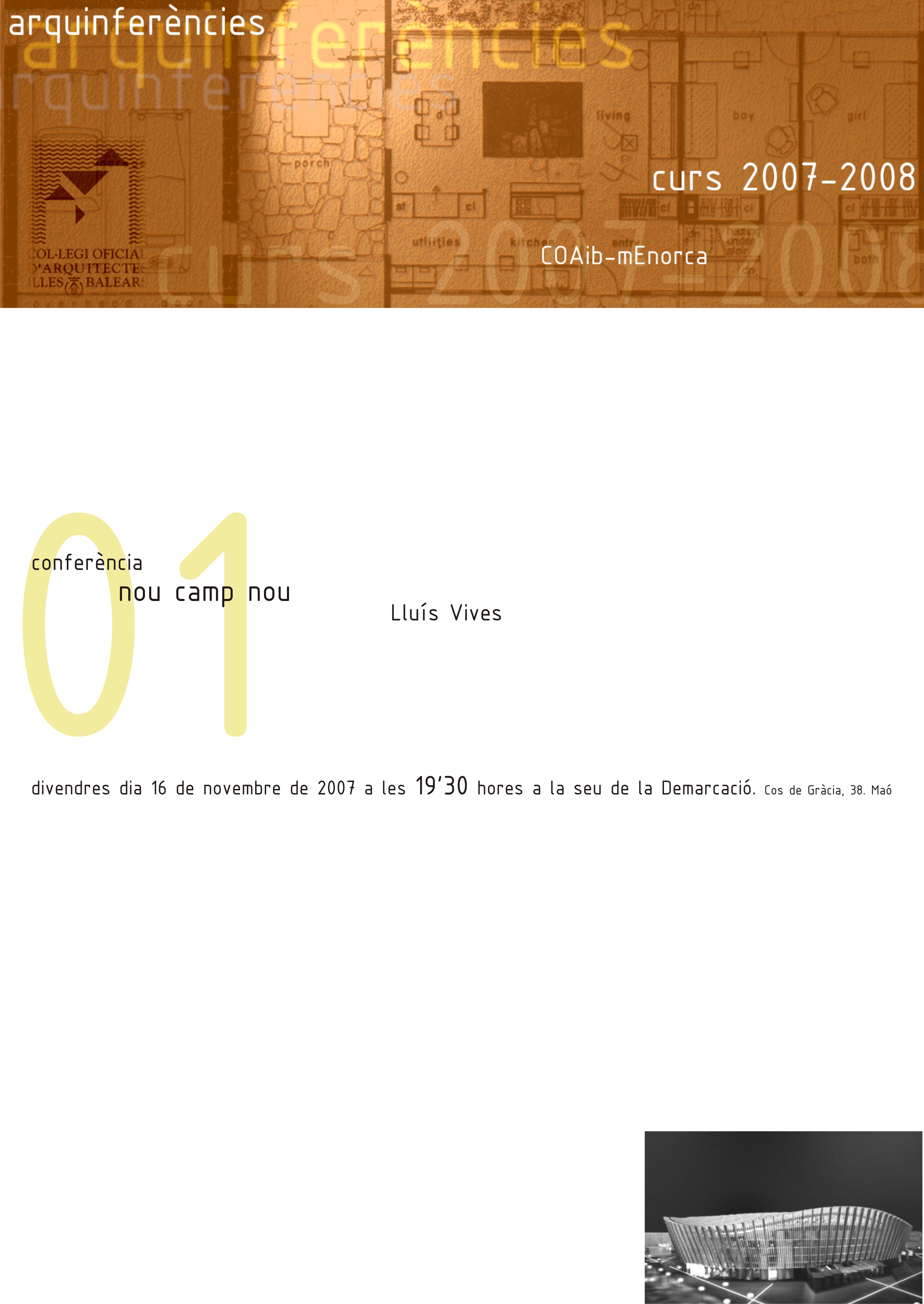 La Demarcación de Menorca del COAIB organiza, en el marco del nuevo ciclo de Arquinferències, una conferencia a cargo del arquitecto Lluís Vives, bajo el título "Nuevo Camp Nou".