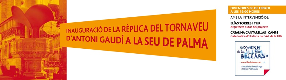 La Conselleria d’Habitatge i Obres Públiques del Govern de les Illes Balears inaugura, este viernes 26 de febrero de 2010, la réplica del Tornavoz que diseñó Antonio Gaudí, y que existió desde principios de siglo hasta el año 1972 en la Catedral de Palma. La maqueta ha sido proyectada por el arquitecto Elias Torres.