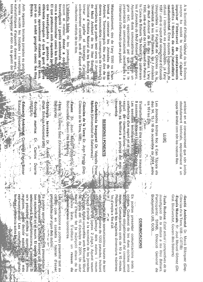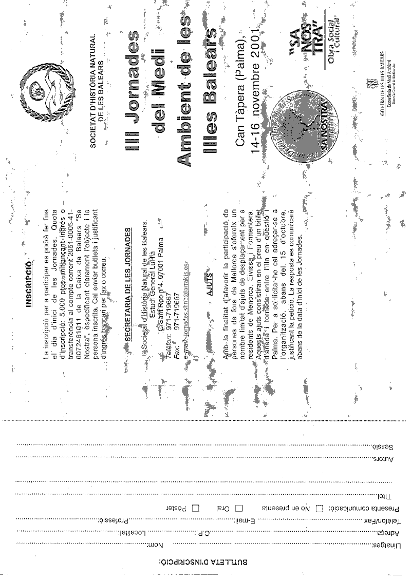 Organizadas por la Societat d'Història Natural de les Illes Balears, con la colaboración de "Sa Nostra, Obra social i Cultural" y la Conselleria de Medi Ambient de les Illes Balears, se celebrarán del 14 al 16 de noviembre de 2001, en Can Tapera (Palma)