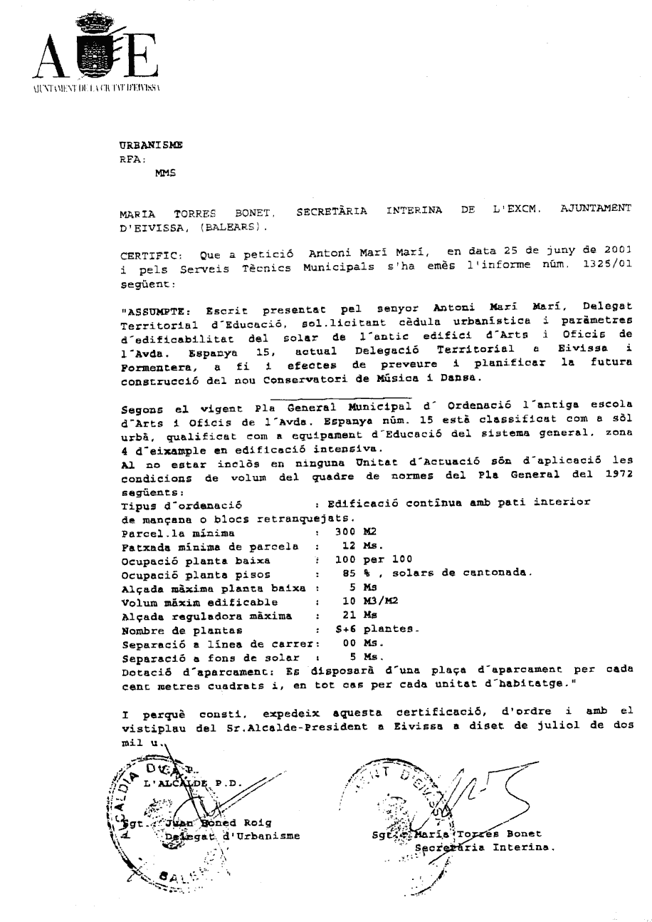 Concurso de anteproyectos arquitectónicos para el edificio del Conservatorio de Música y Danza de Eivissa y Formentera - Conselleria d'Educació i Cultura del Govern de les Illes Balears.