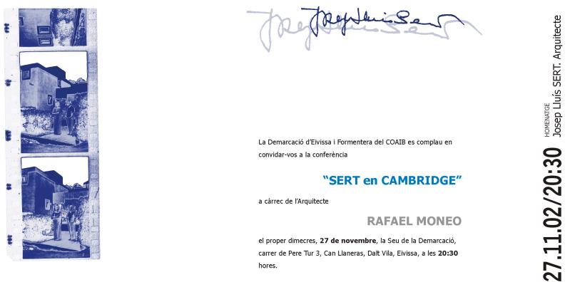 La Demarcación Eivissa i Formentera del COAIB, se complace en invitarles a la conferencia "Sert en Cambridge" a cargo del arquitecto D. Rafael Moneo, dentro de las actividades del Homenaje a Josep Lluís SERT.