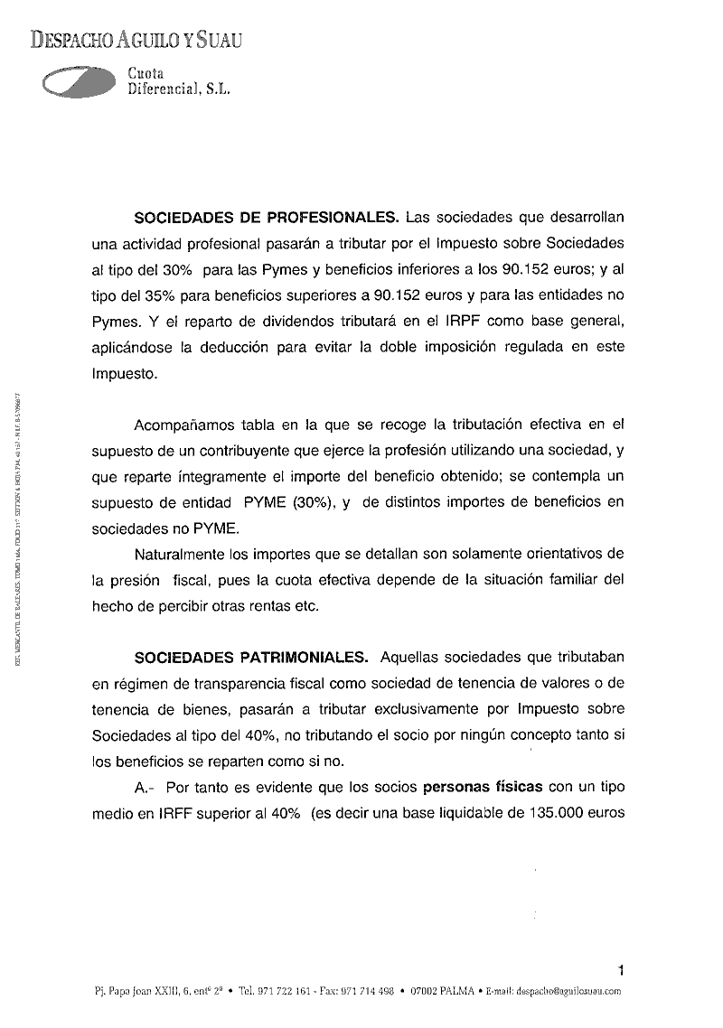 En www.coaib.es puede consultarse un informe, elaborado por los Asesores Fiscales del COAIB, en el que se resumen los cambios más significativos y se ponen algunos ejemplos de las repercusiones del nuevo tratamiento fiscal.