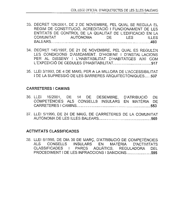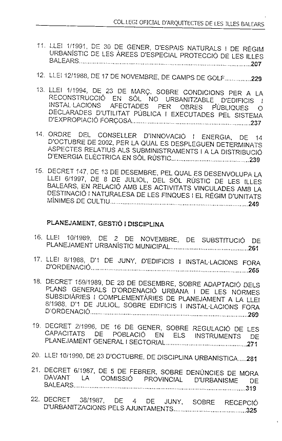 Este libro es una reedición, actualizada, ampliada y modificada de la anterior recopilación publicada en mayo de 2001. Su índice puede consultarse en www.coaib.es.