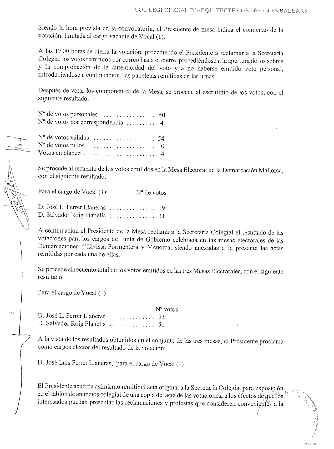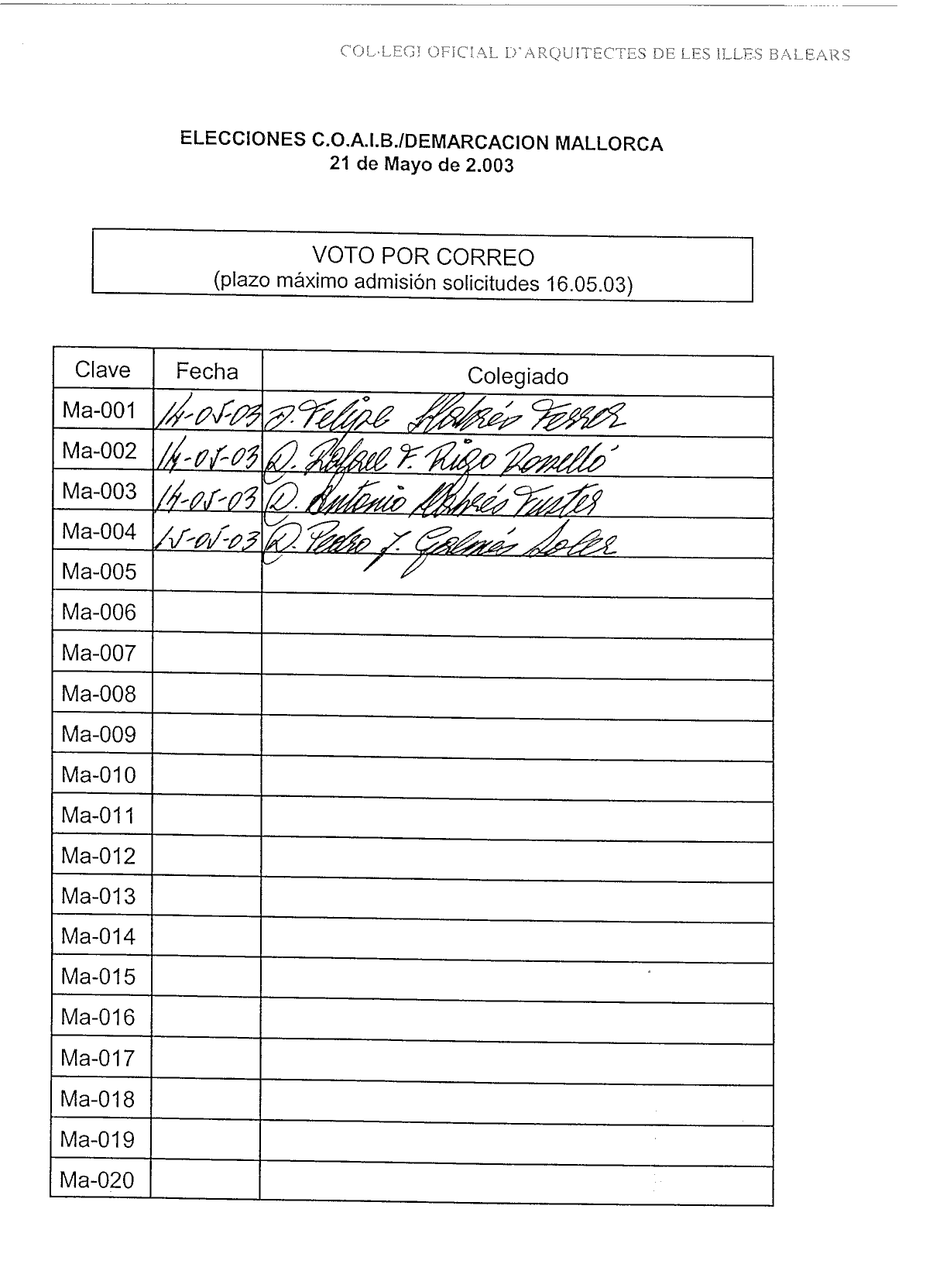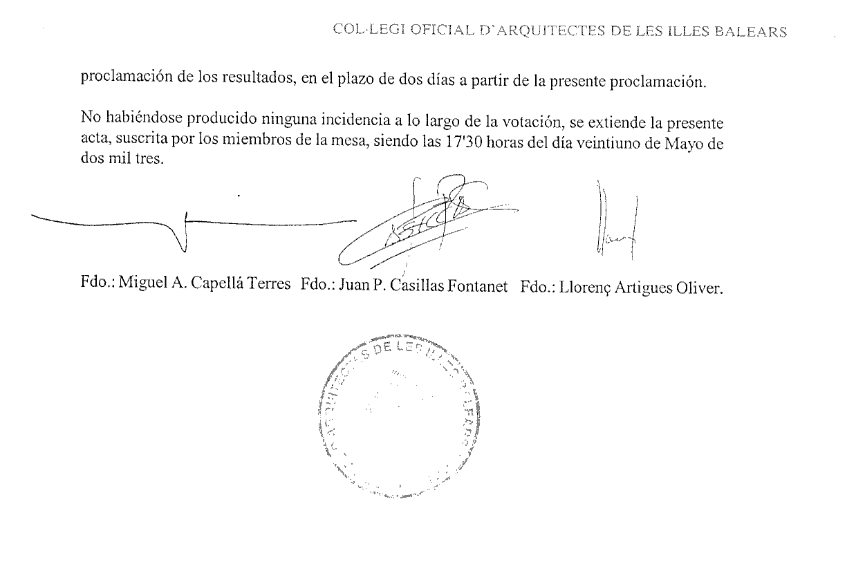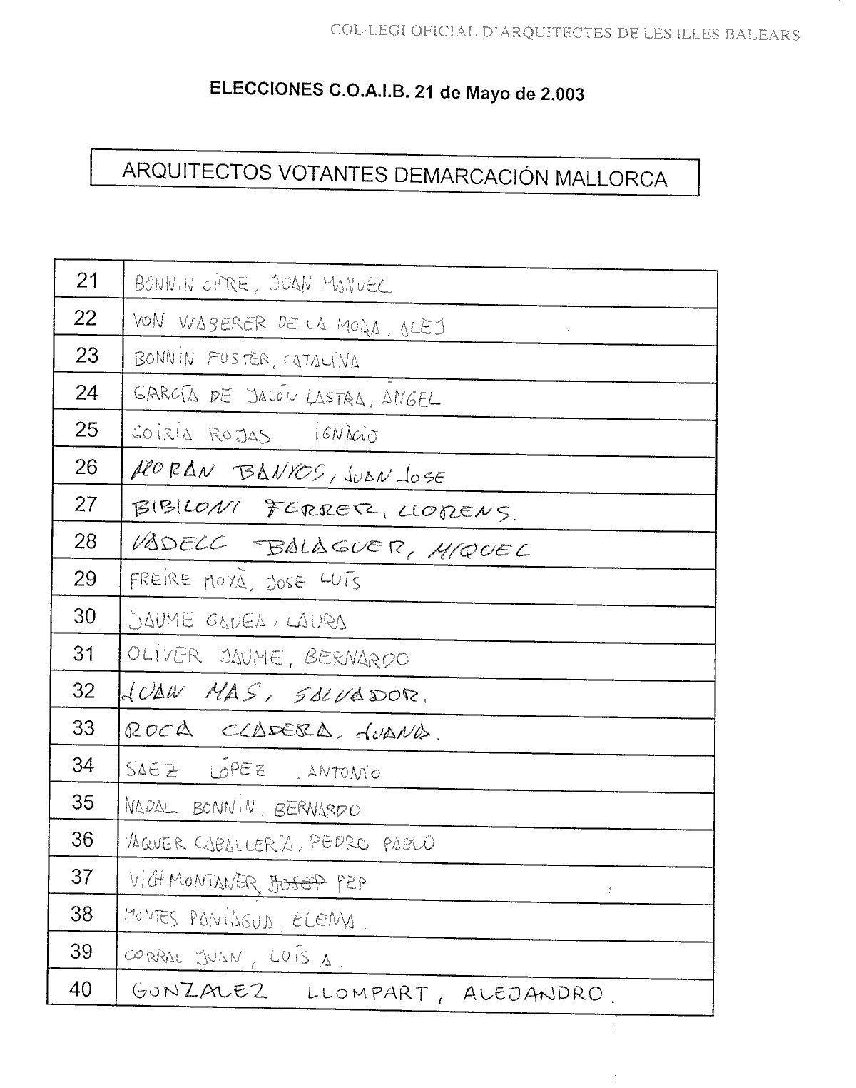 Después de las Elecciones celebradas el pasado 21 de mayo de 2003, las Juntas de Gobierno del Col·legi y las Demarcaciones, han quedado constituidas según consta en el anexo que se adjunta.