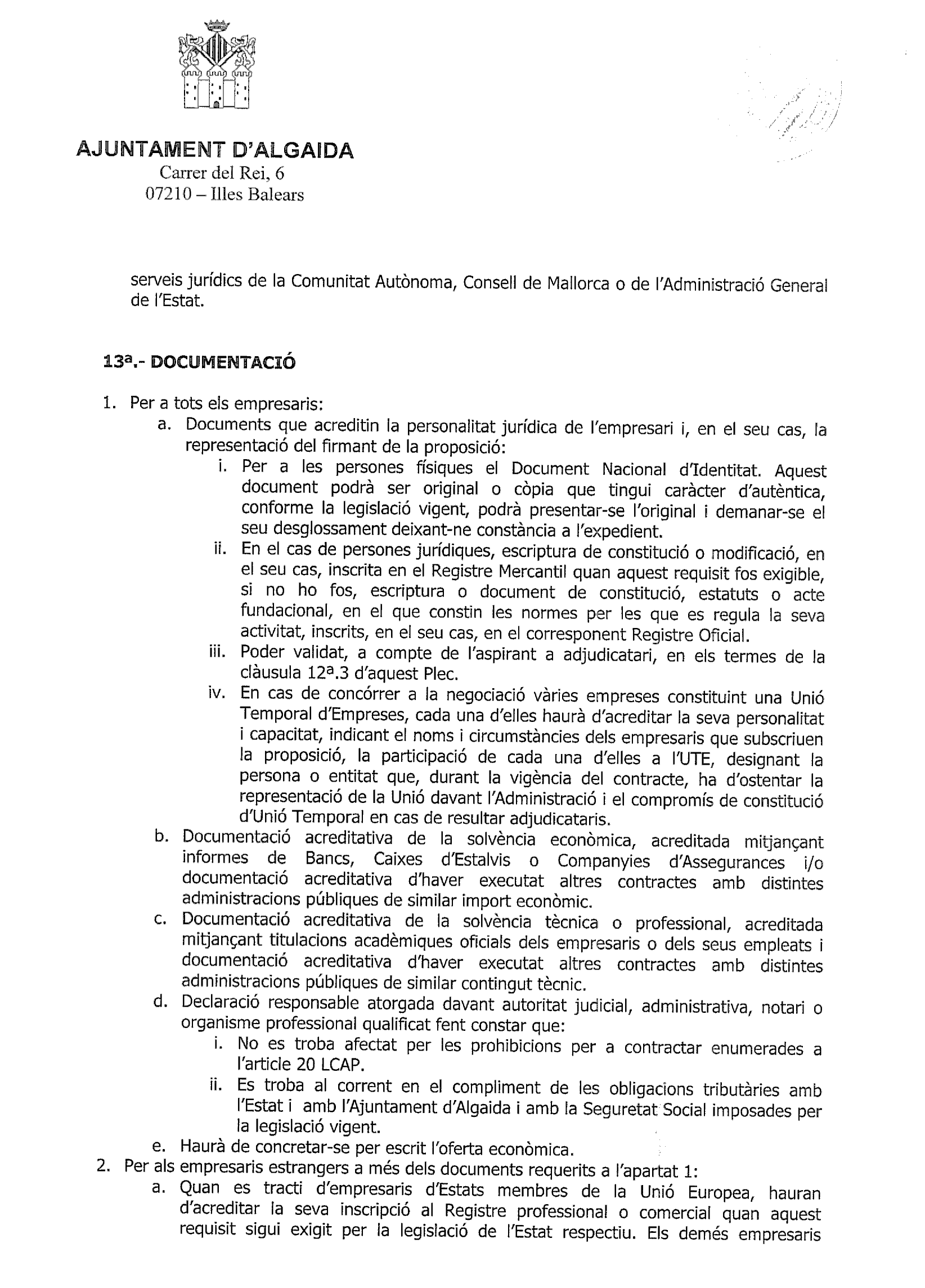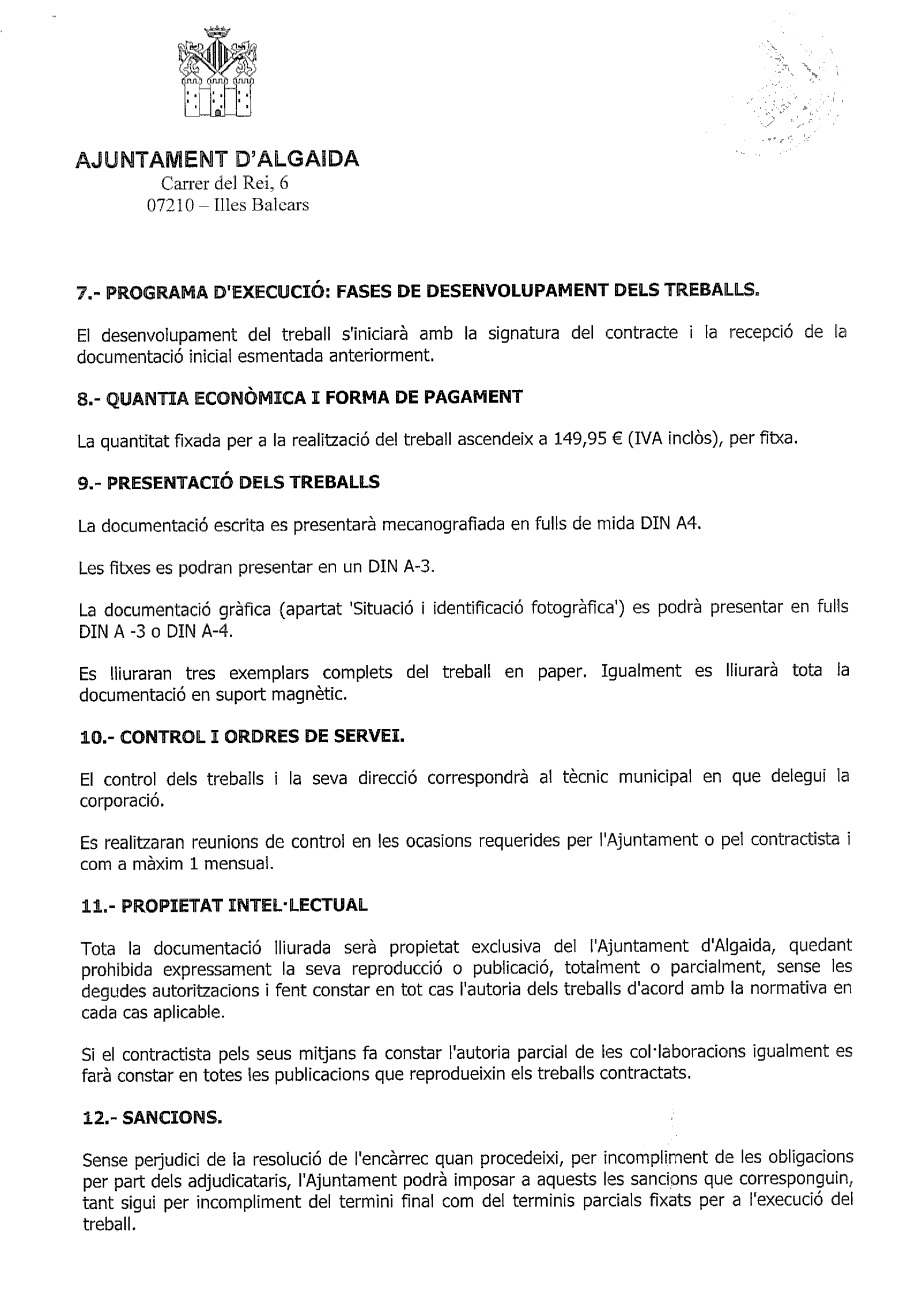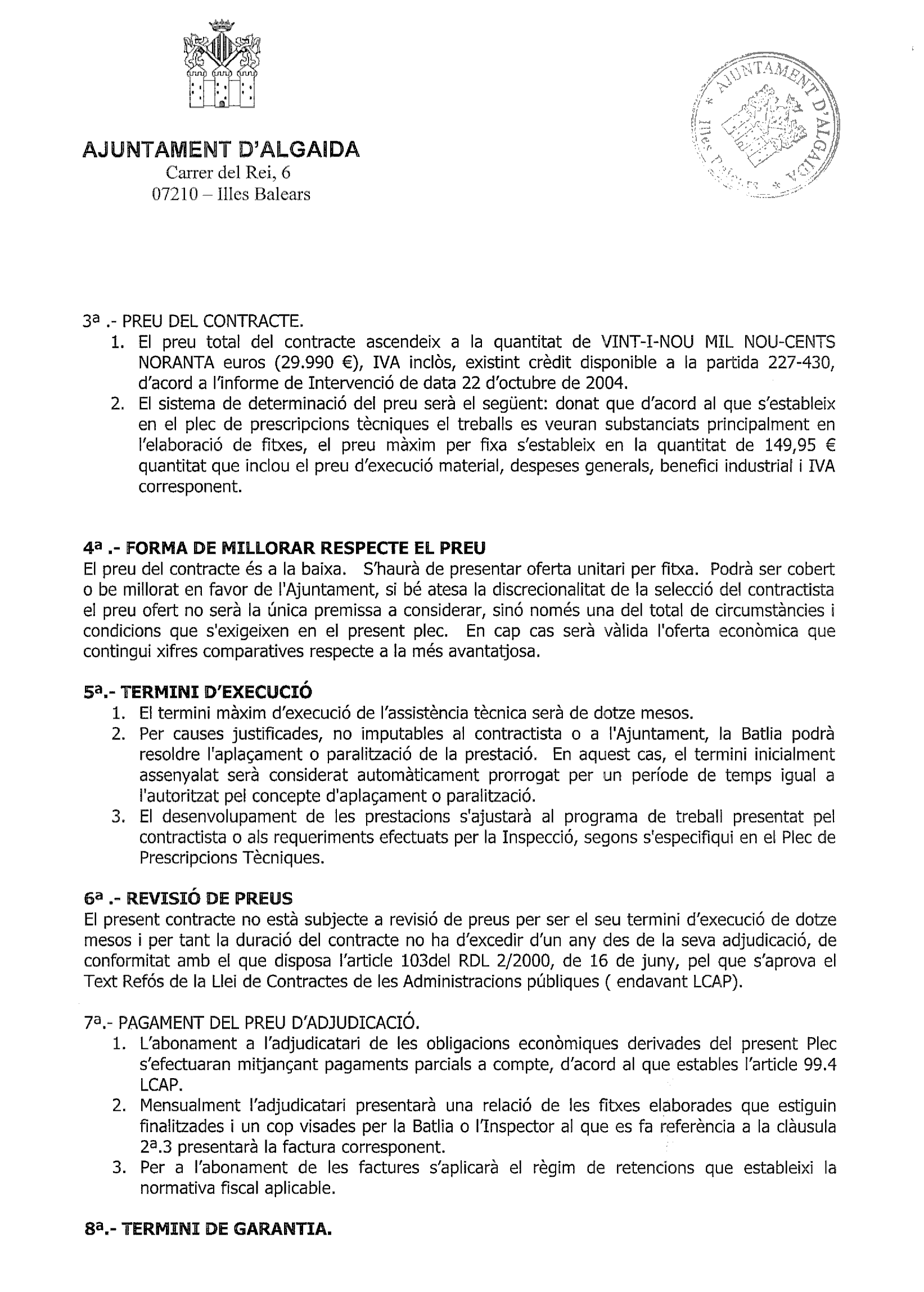 El Ayuntamiento de Algaida solicita, mediante escrito de fecha 14.01.05 (Reg.Entrada Demarcación Mallorca nº 22 de 19.01.05) la difusión de la aprobación del pliego de cláusulas administrativas particulares que deben regir las condiciones del contrato de consultoría y asistencia técnica mediante procedimiento negociado sin publicidad y el pliego de prescripciones técnicas a efectos de realizar el estudio de conservación y ordenación de la protección de edificios y elementos de interés histórico, arquitectónico y paisajístico del municipio de Algaida.