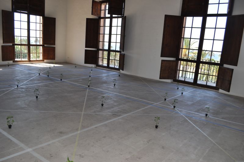 Después de marcar las diversas categorías, en la sala de exposiciones del Colegio, se han situado 33 planteles de pimiento, de aproximadamente el mismo tamaño, en varias zonas, similares en cuanto a sol, situadas unos en lugares bastante alterados geobiològicament, otros en lugares menos alterados y finalmente en posiciones más neutras, como testigo, para así poder observar su desarrollo en las próximas semanas"