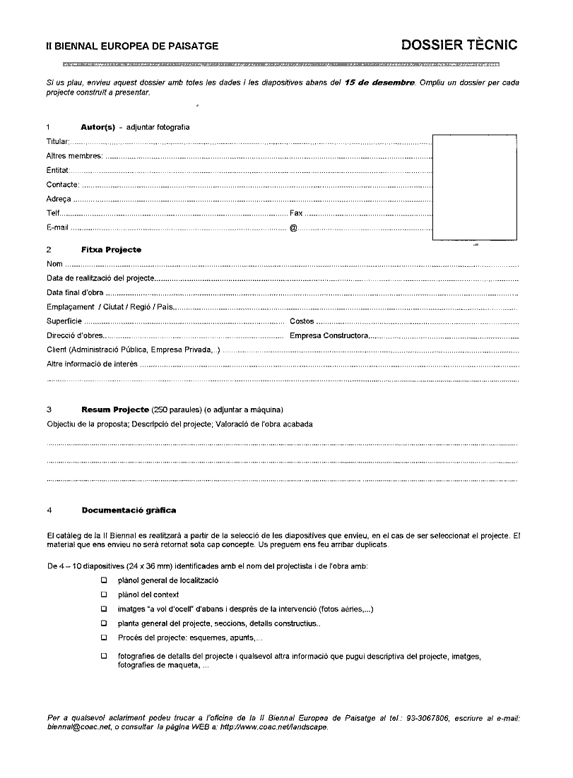 Per a rebre més informació sobre la Biennal és necessari omplir el formulari que s'adjunta, abans del 15 de febrer de 2001.