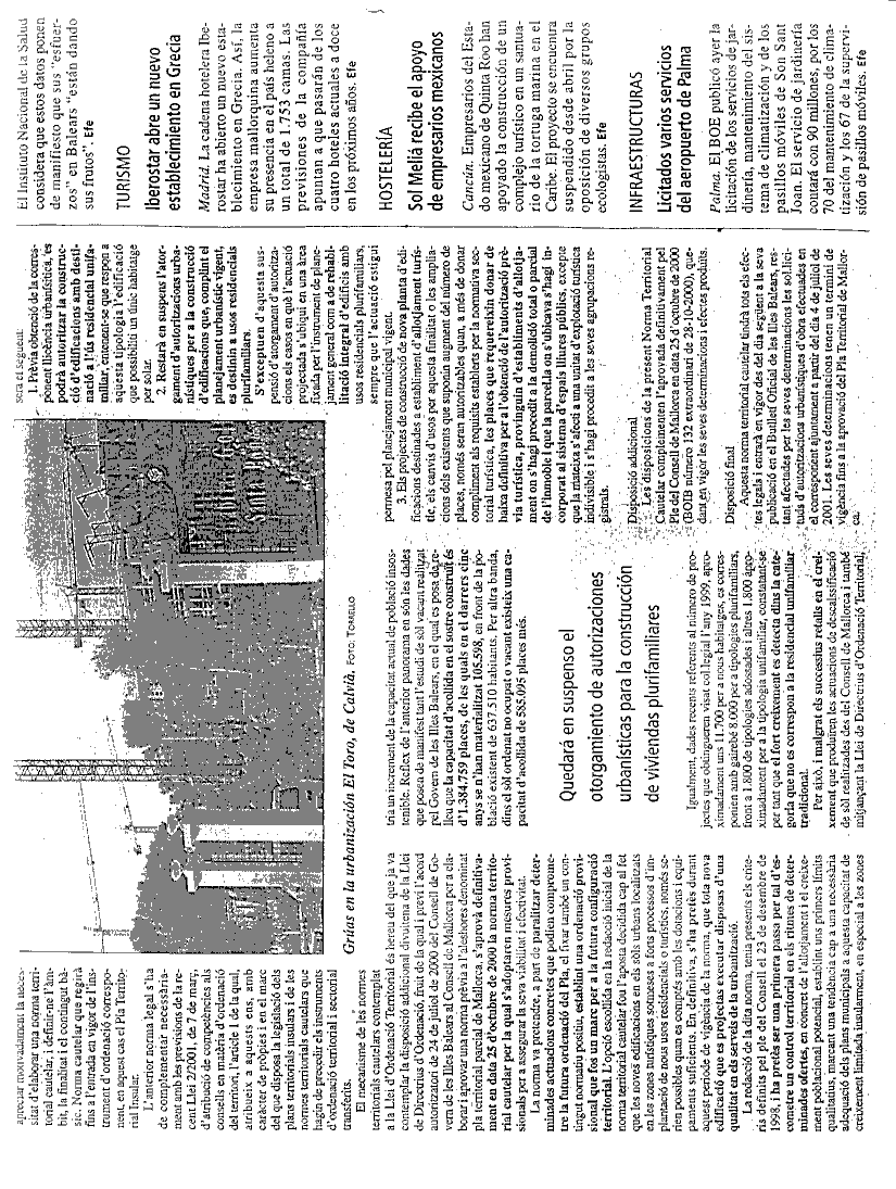 La premsa local d'avui , dijous 05.07.01, reprodueix l'esborrany de la norma territorial cautelar per la qual se suspenen llicències urbanístiques a Mallorca.