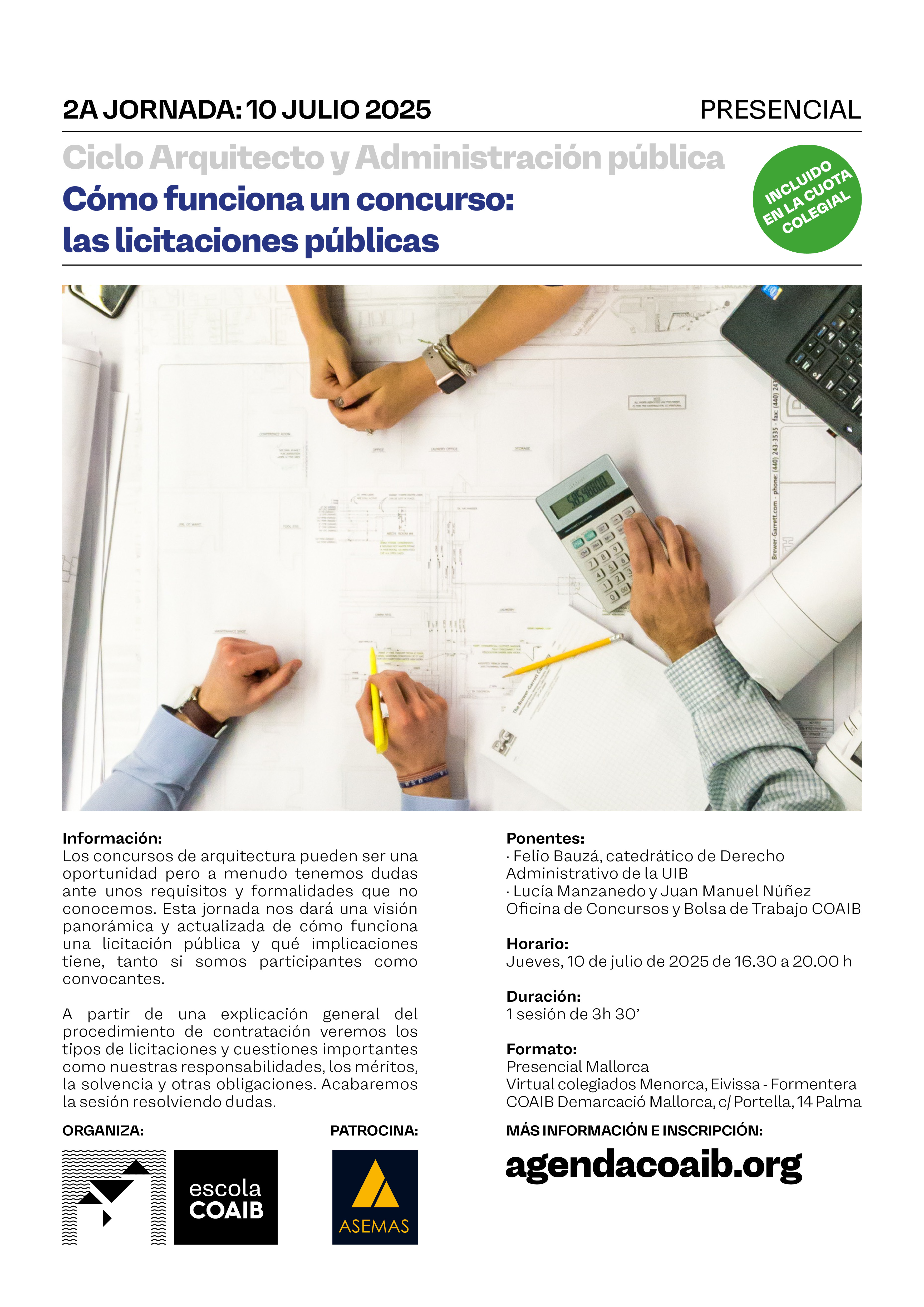 Presencial: seu del COAIB Mallorca (carrer Portella, 14, Palma)