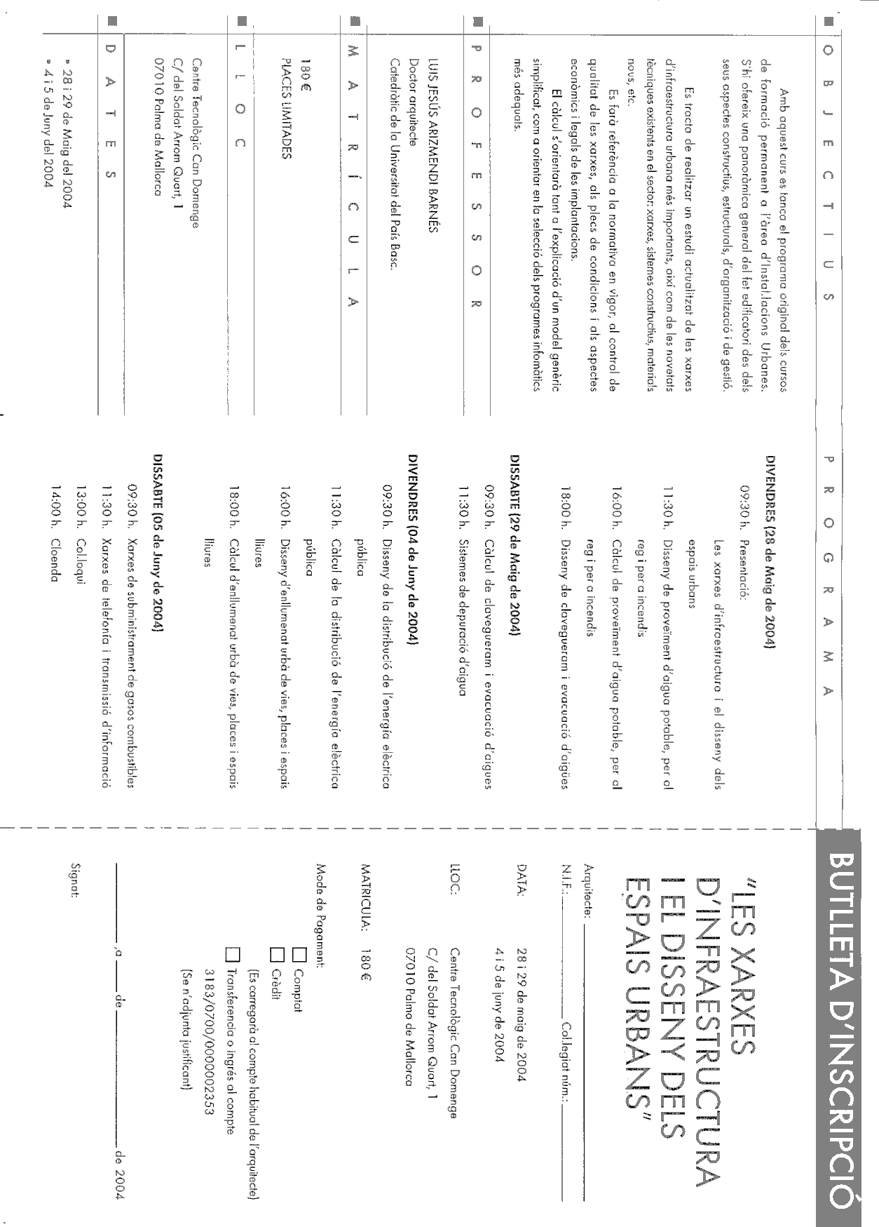 Per a més informació i inscripcions se poden dirigir a la Secretaria d'Activitats Tècniques i Culturals de la Demarcació Mallorca del COAIB (3ª Planta), Tel.: 971.228658, Fax: 971.720463, e-mail: culturapalma@coaib.es