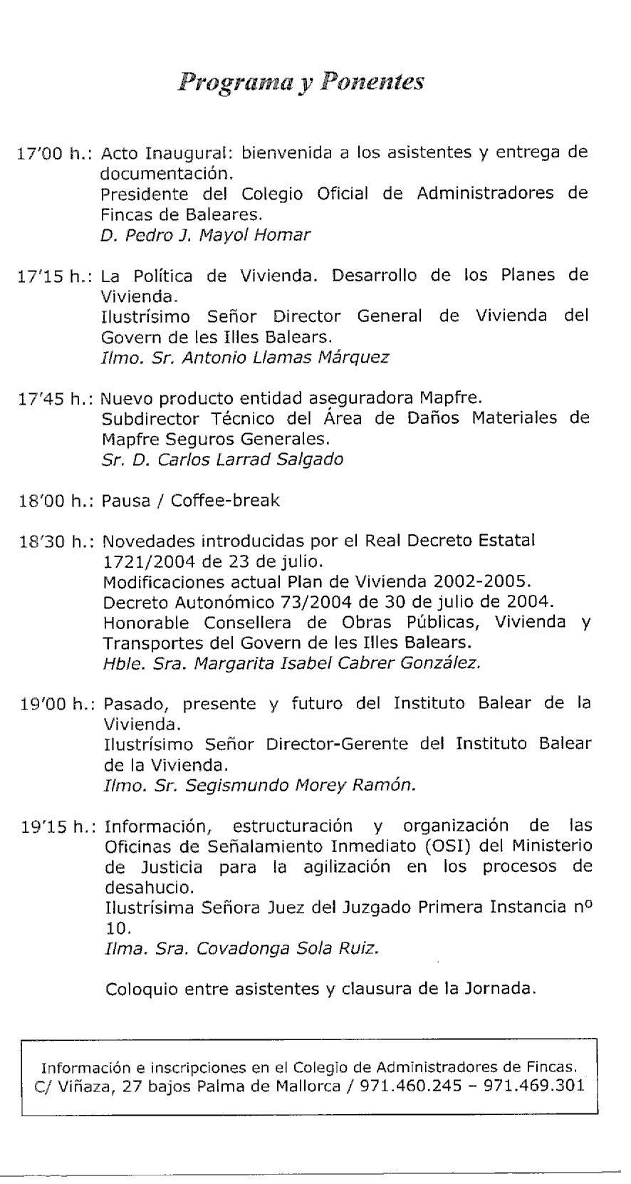 Jornada de Vivienda - Colegio de Administradores de Fincas de Baleares.