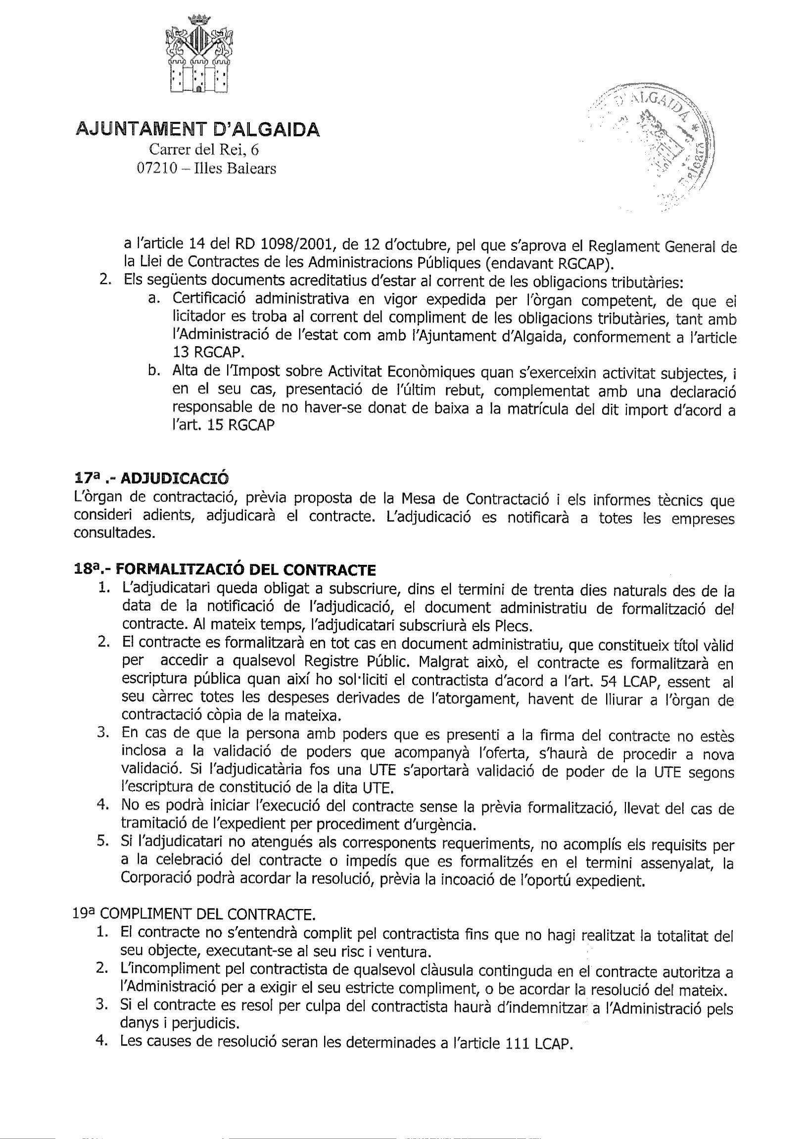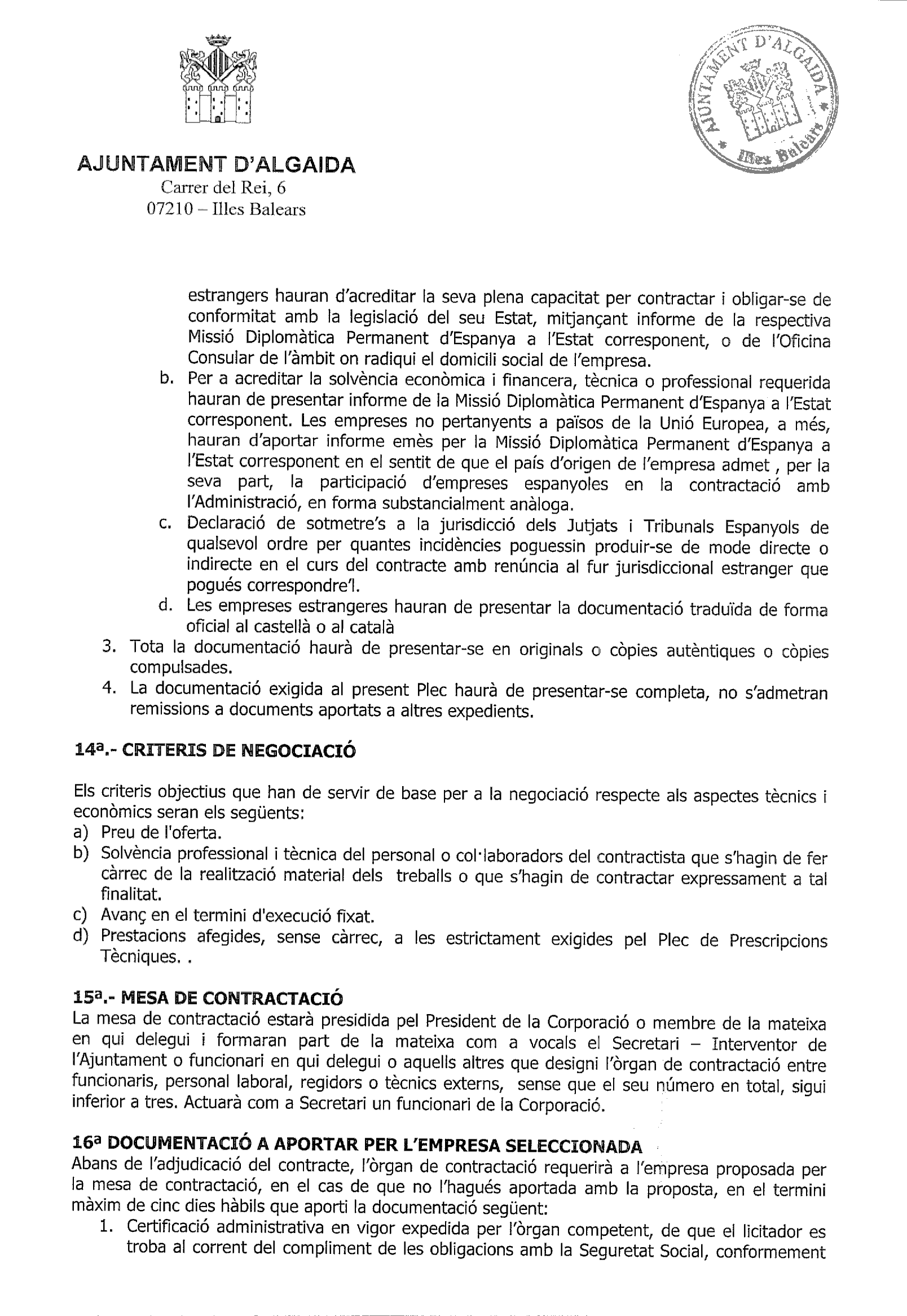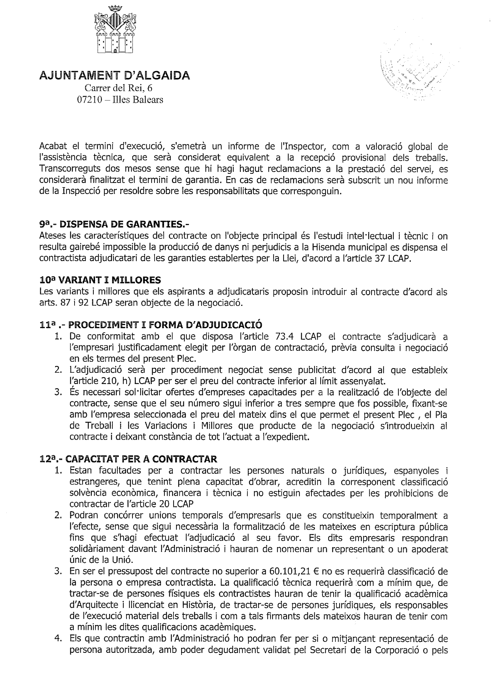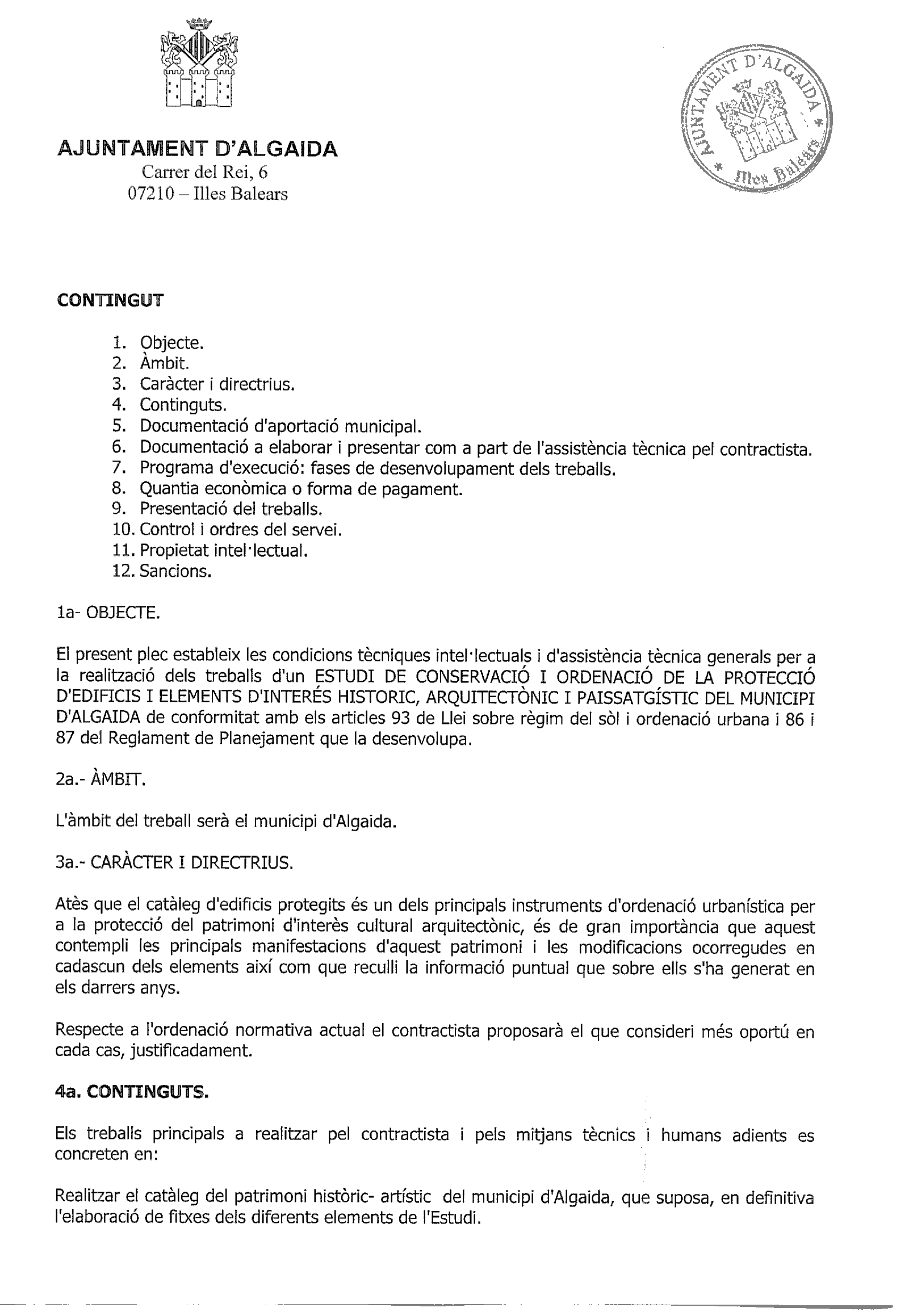 L'Ajuntament d'Algaida sol·licita, mitjançant escrit de data 14.01.05 (Reg.Entrada Demarcació Mallorca nº 22 de 19.01.05) la difusió de l'aprovació del plec de clàusules administratives particulars que han de regir les condicions del contracte de consultoria i assistència tècnica mitjançant procediment negociat sense publicitat i el plec de prescripcions tècniques a l'efecte de realitzar l'estudi de conservació i ordenació de la protecció d'edificis i elements d'interès històric, arquitectònic i paisatgístic del municipi d'Algaida.