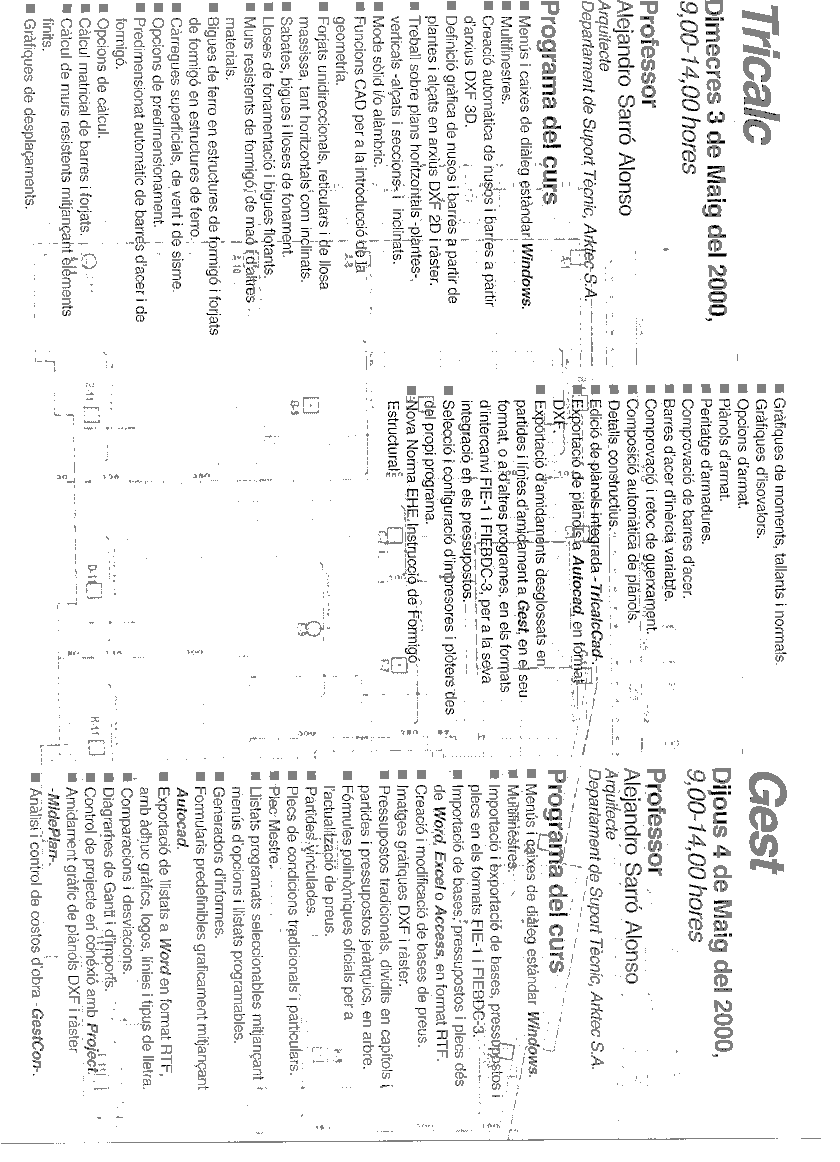 L'empresa ARKTEC celebrarà els dies 3 i 4 de maig de 2000, en el Saló d'Actes de la Delegació Mallorca del C.O.A.B., uns cursos gratuïts dels programes TRICALC, de càlcul d'estructures, i GEST, medicions, pressupostos i control d'obra, impartits pel Sr. Alejandro Sarró, Arquitecte del Departament de Suport Tècnic d' Arktec S.A.
