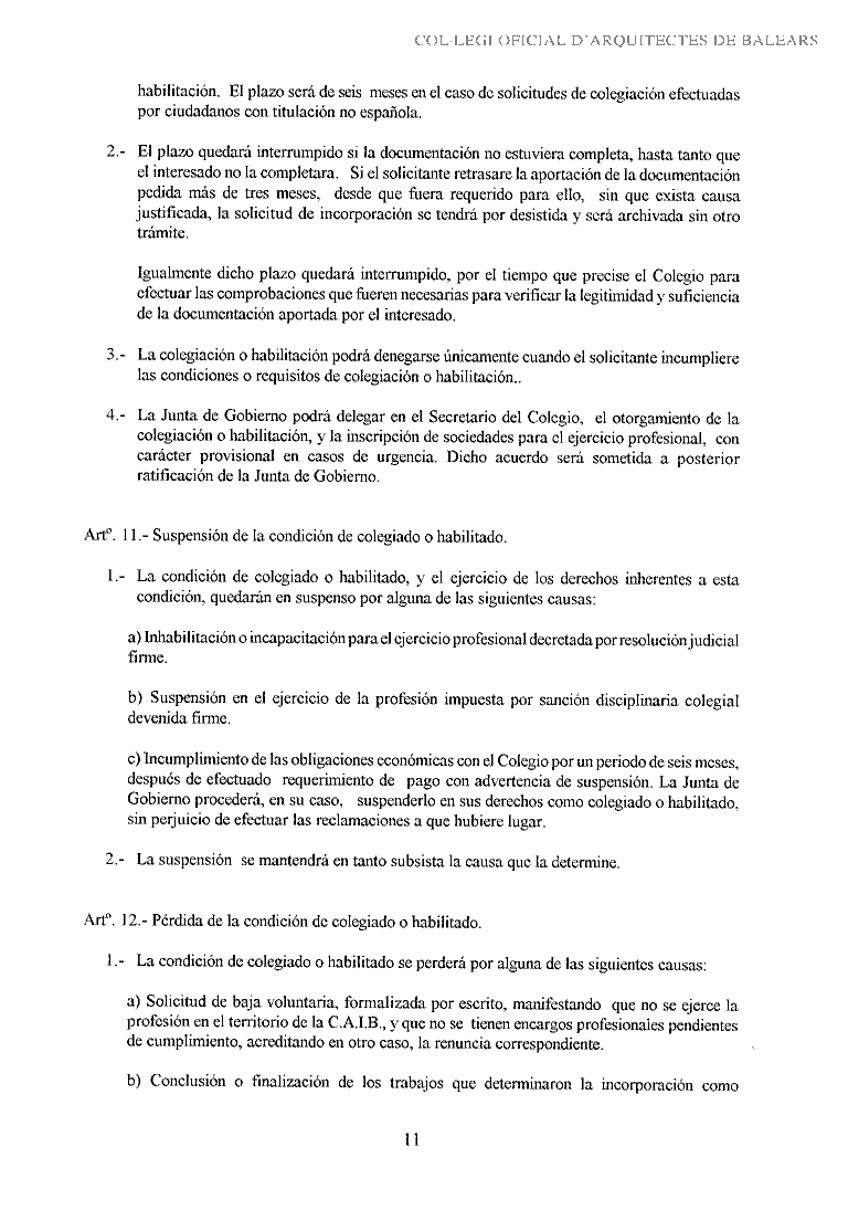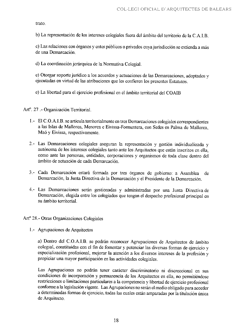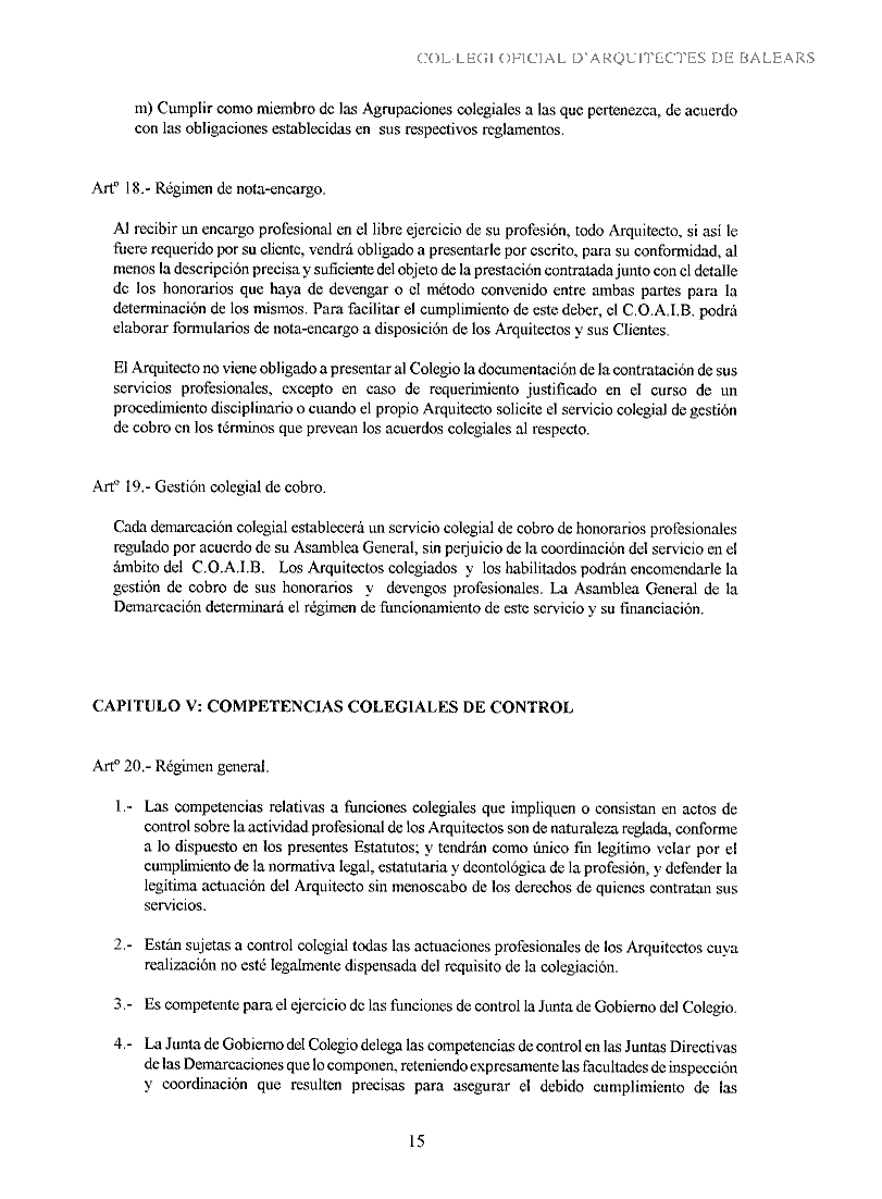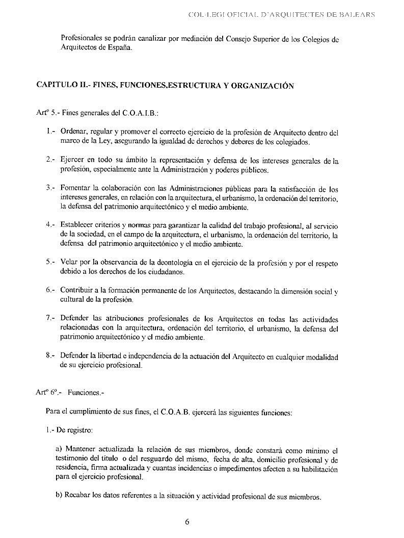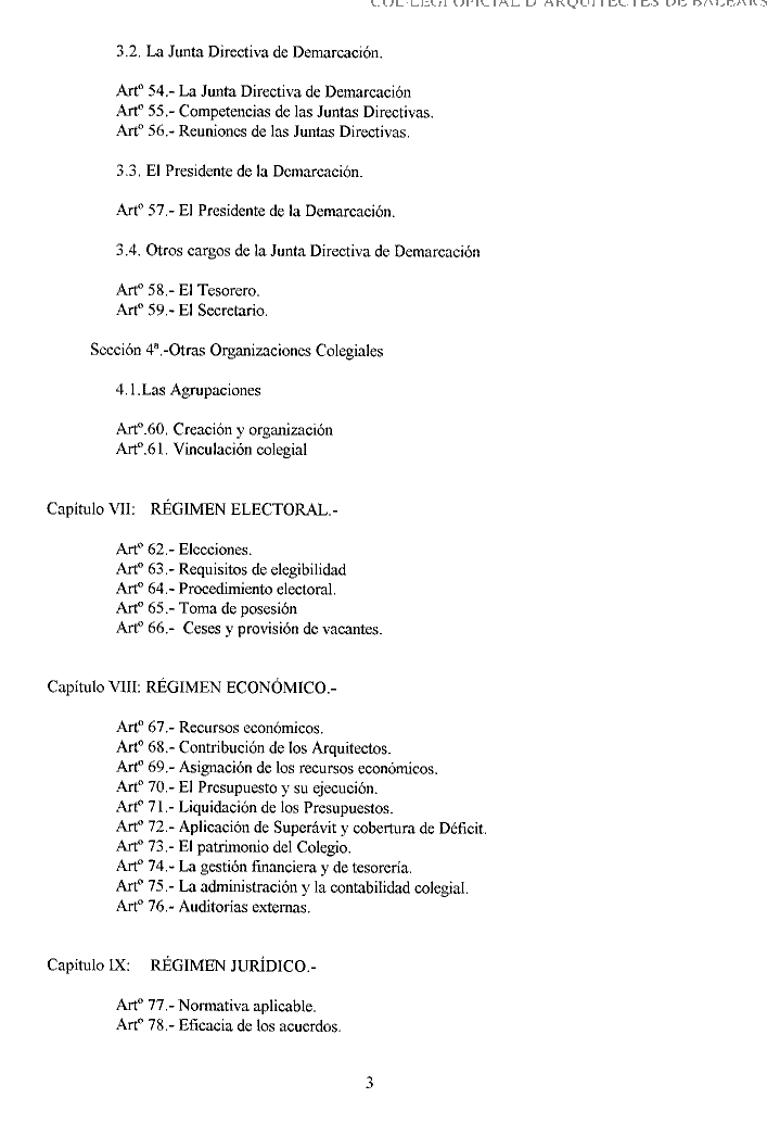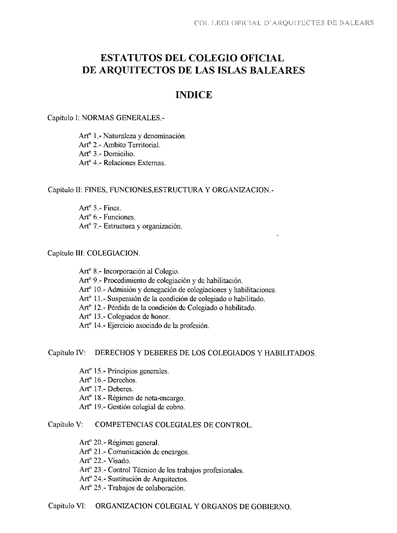 Estatuts del Col·legi Oficial d'Arquitectes de Balears.