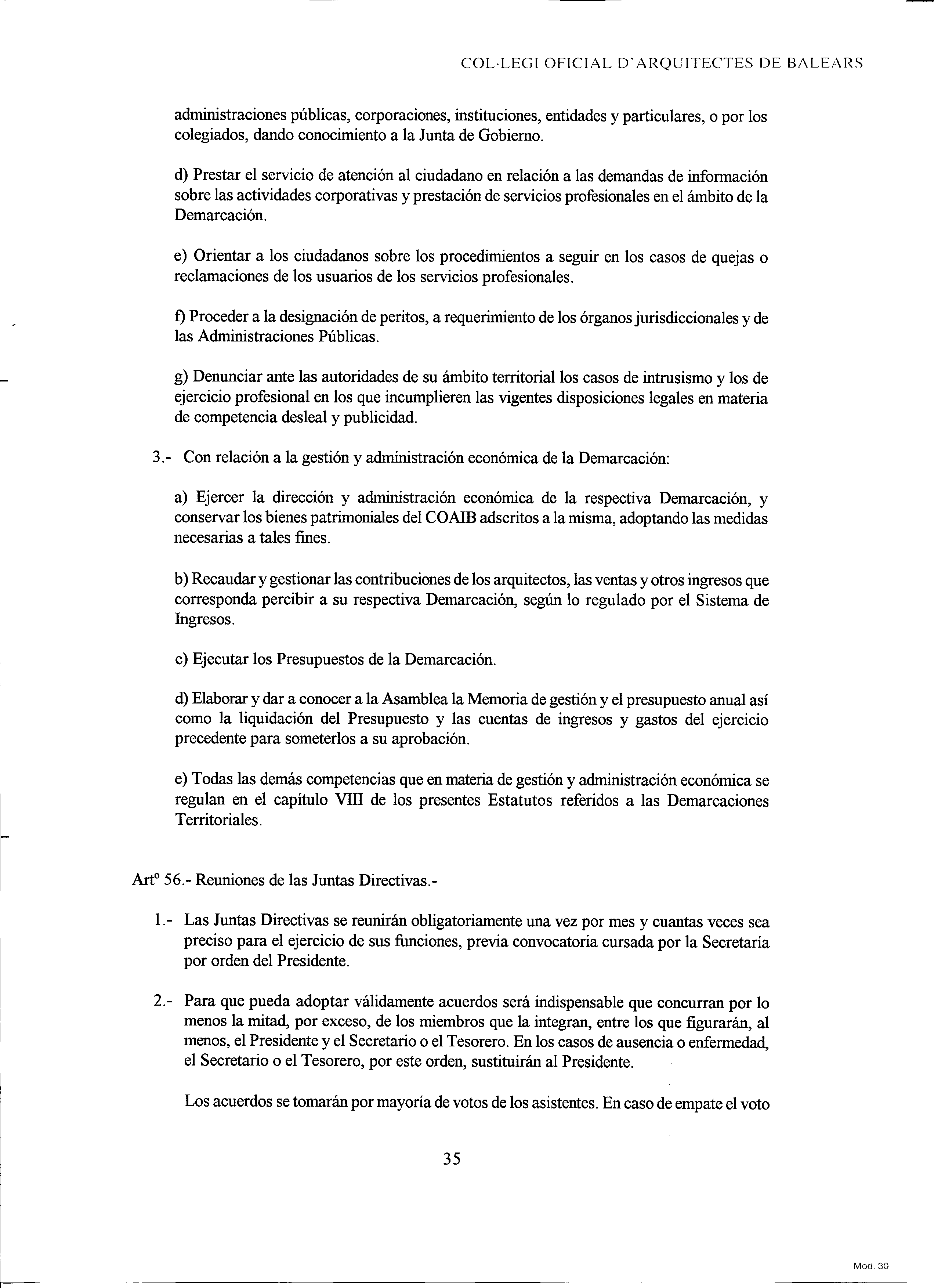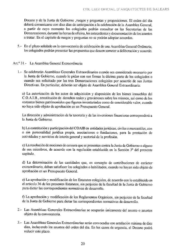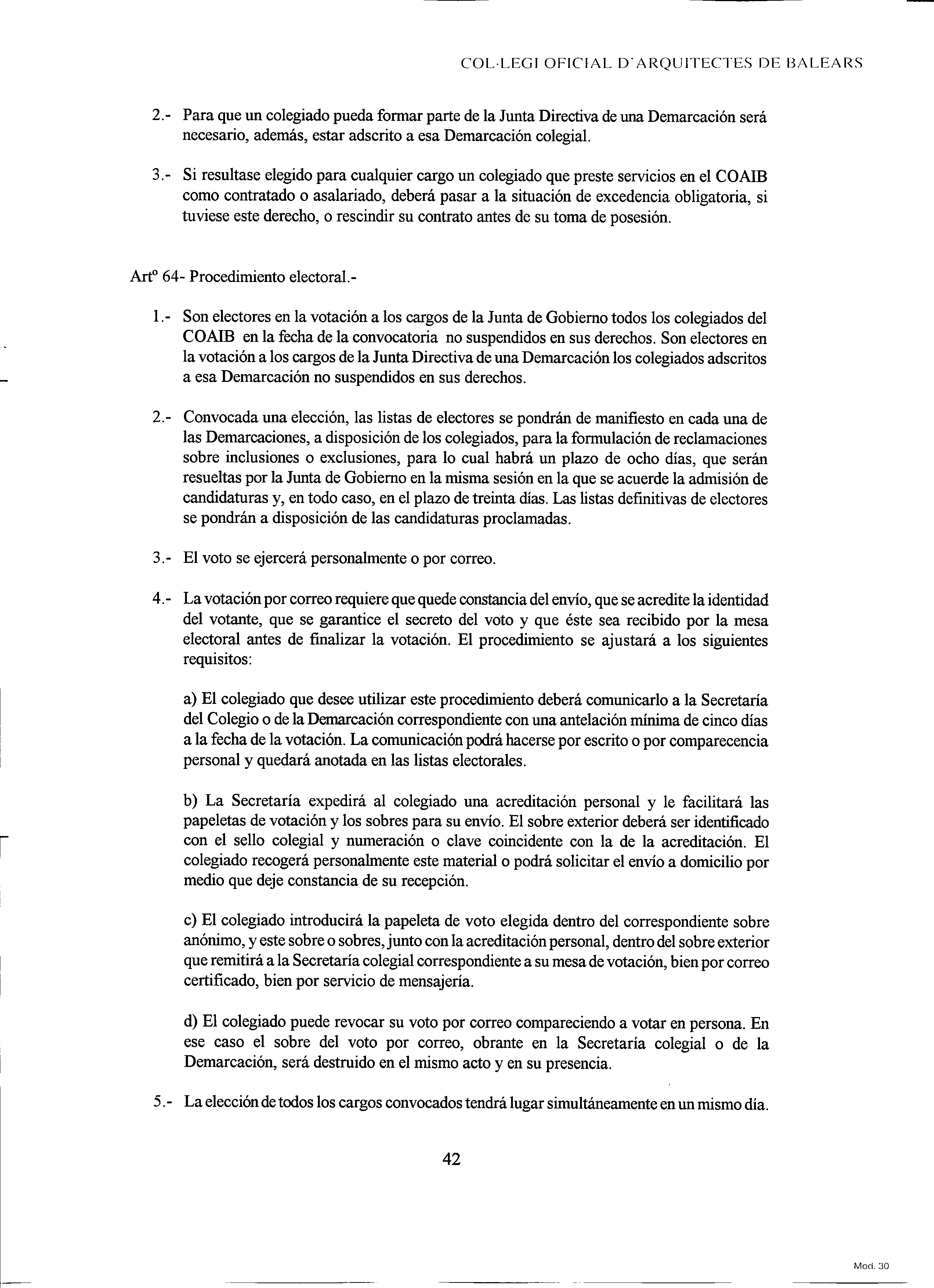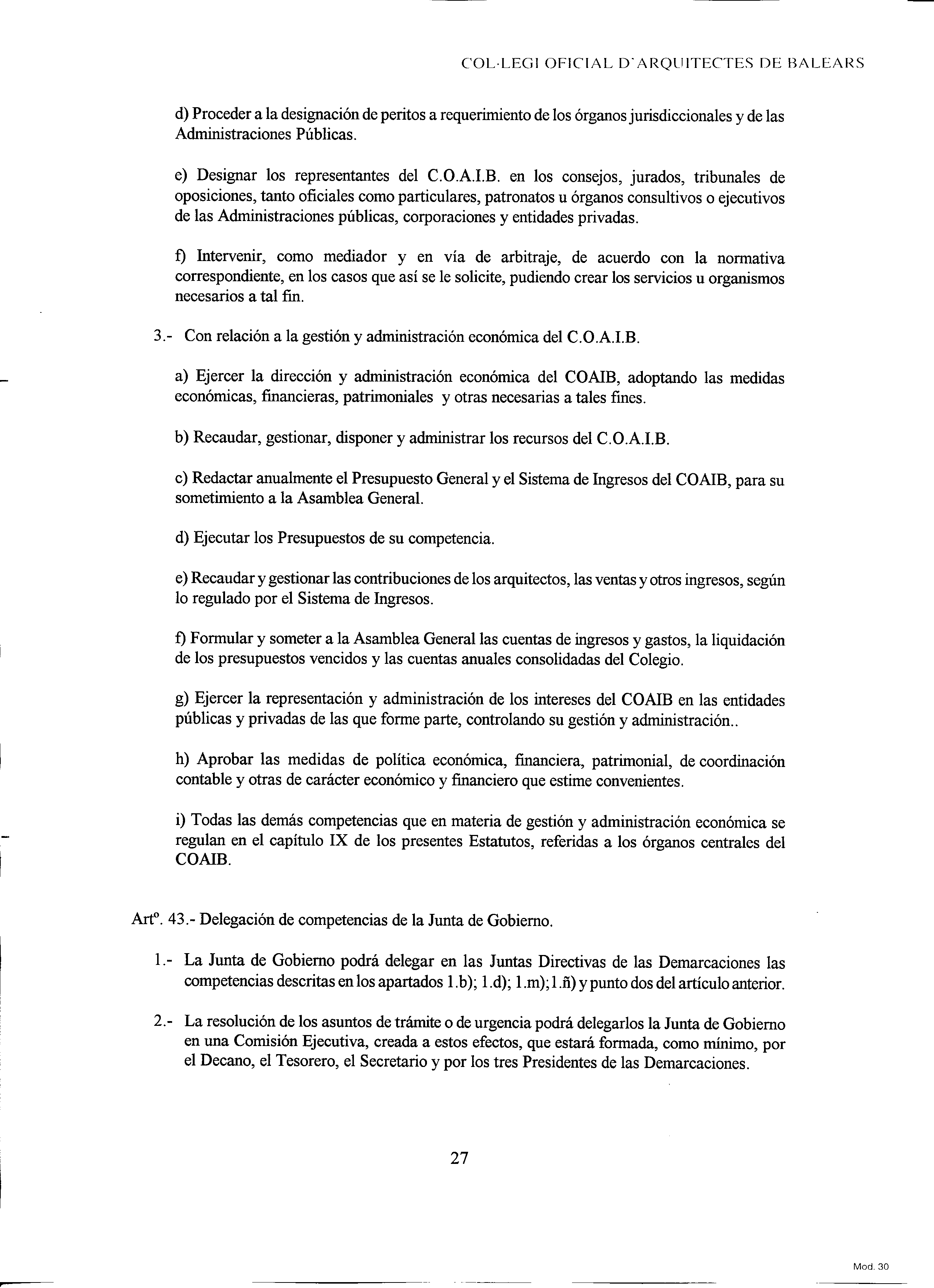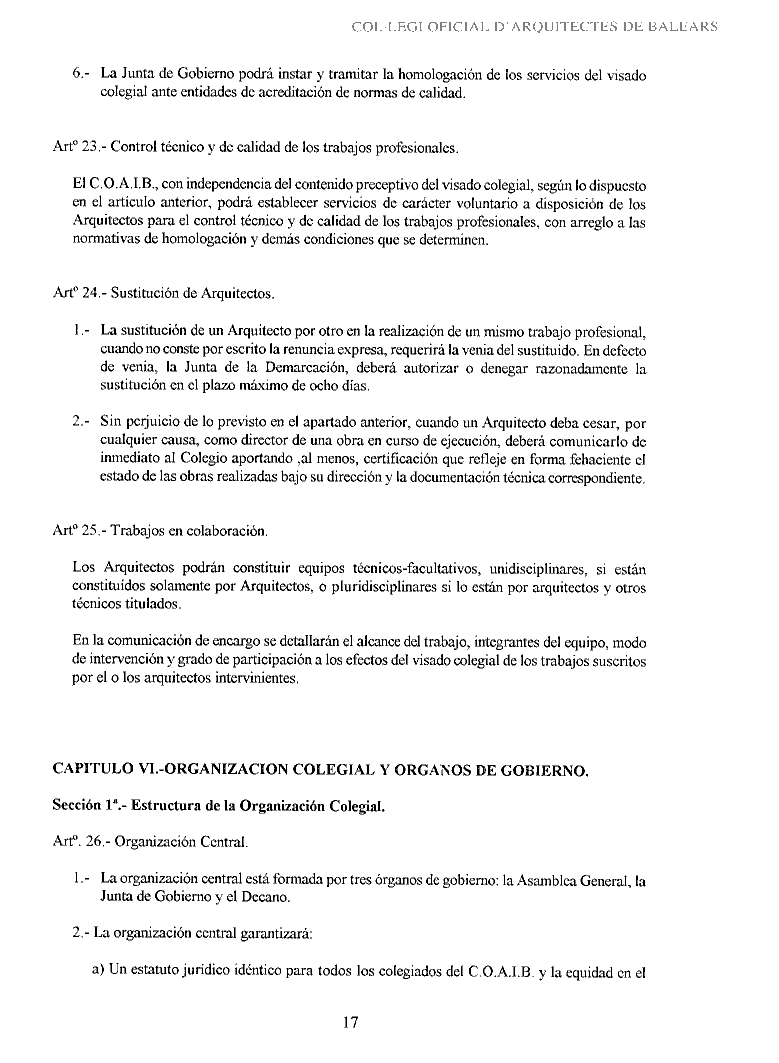 Estatuts del Col·legi Oficial d'Arquitectes de Balears.