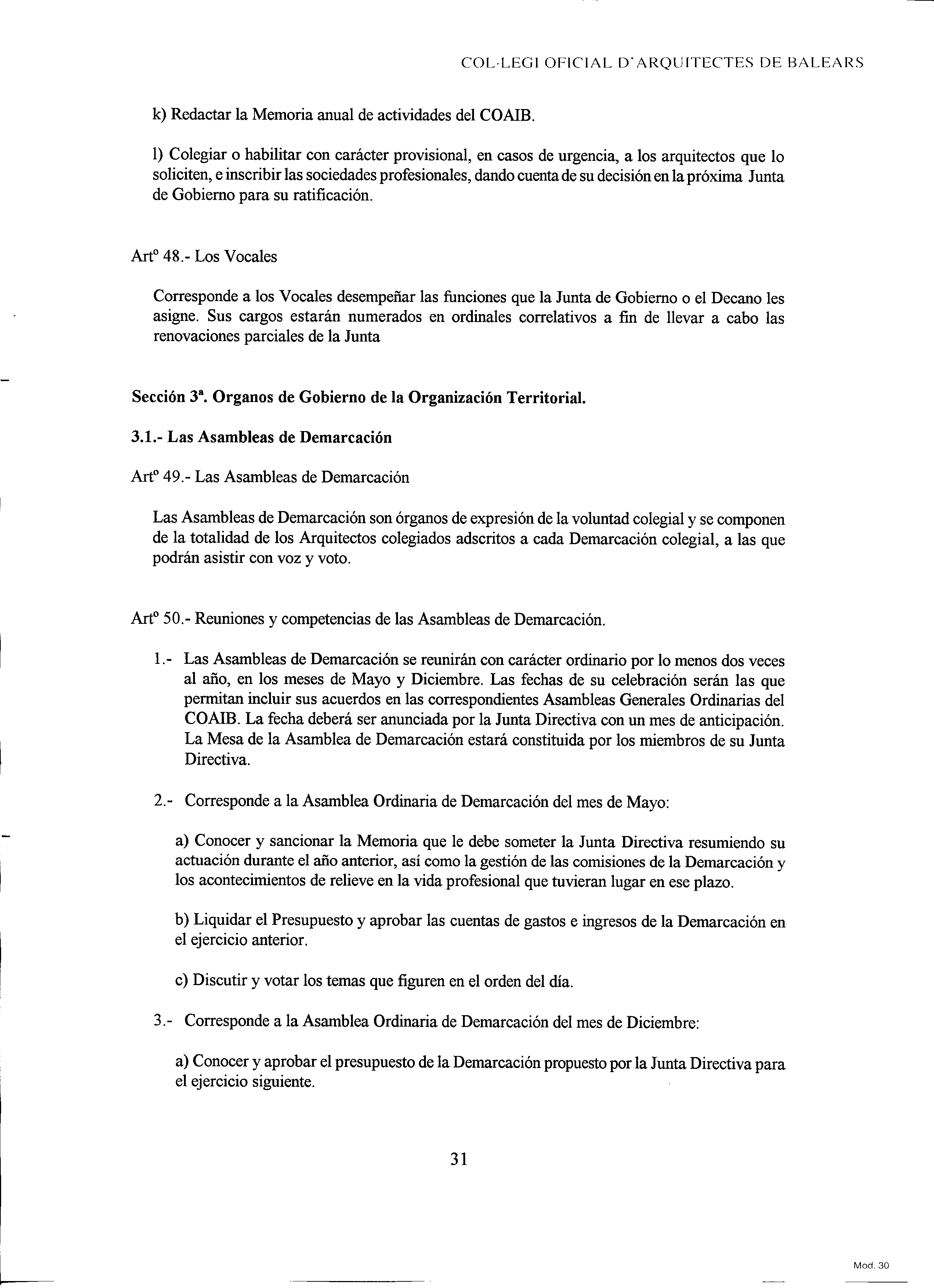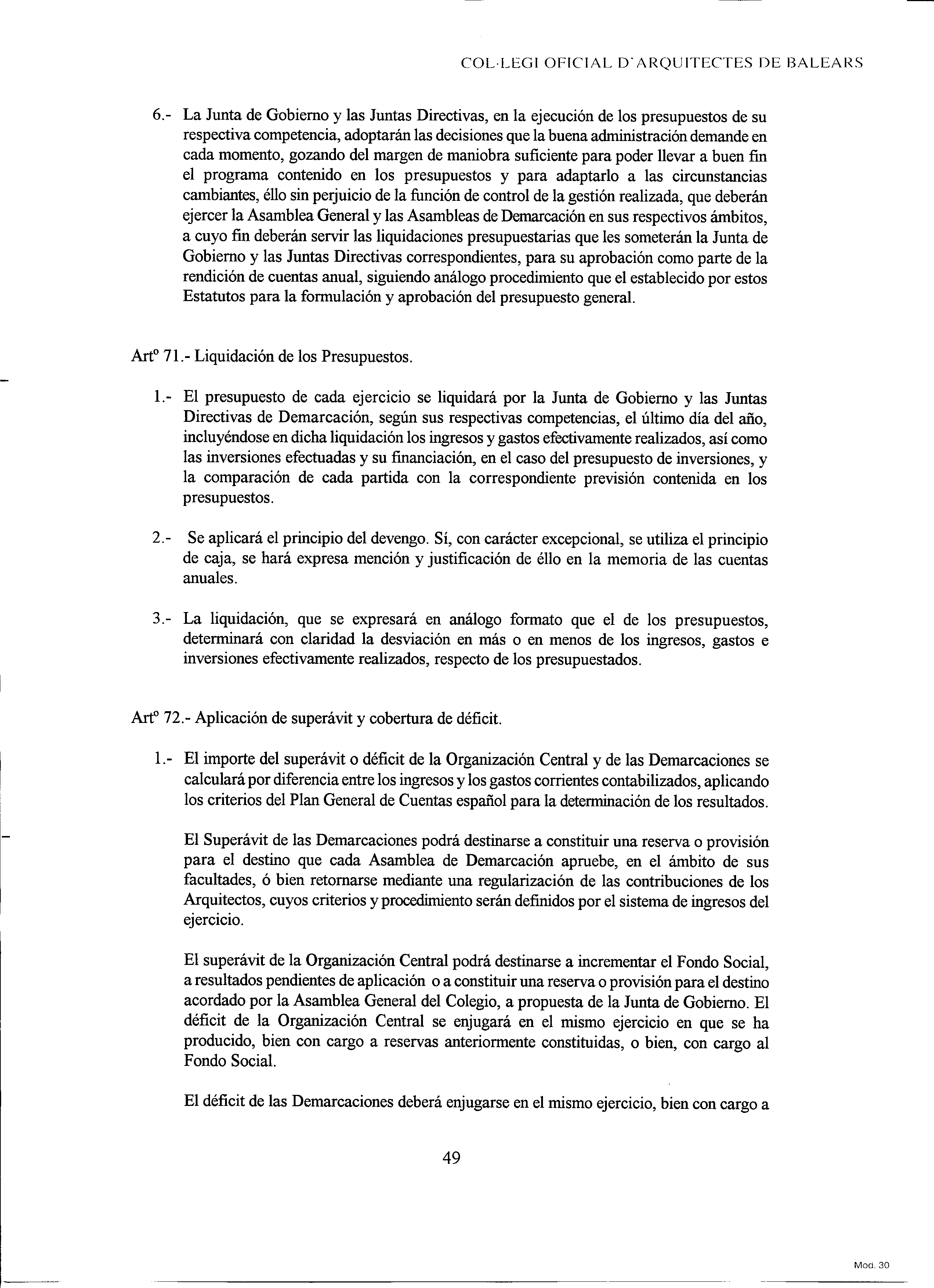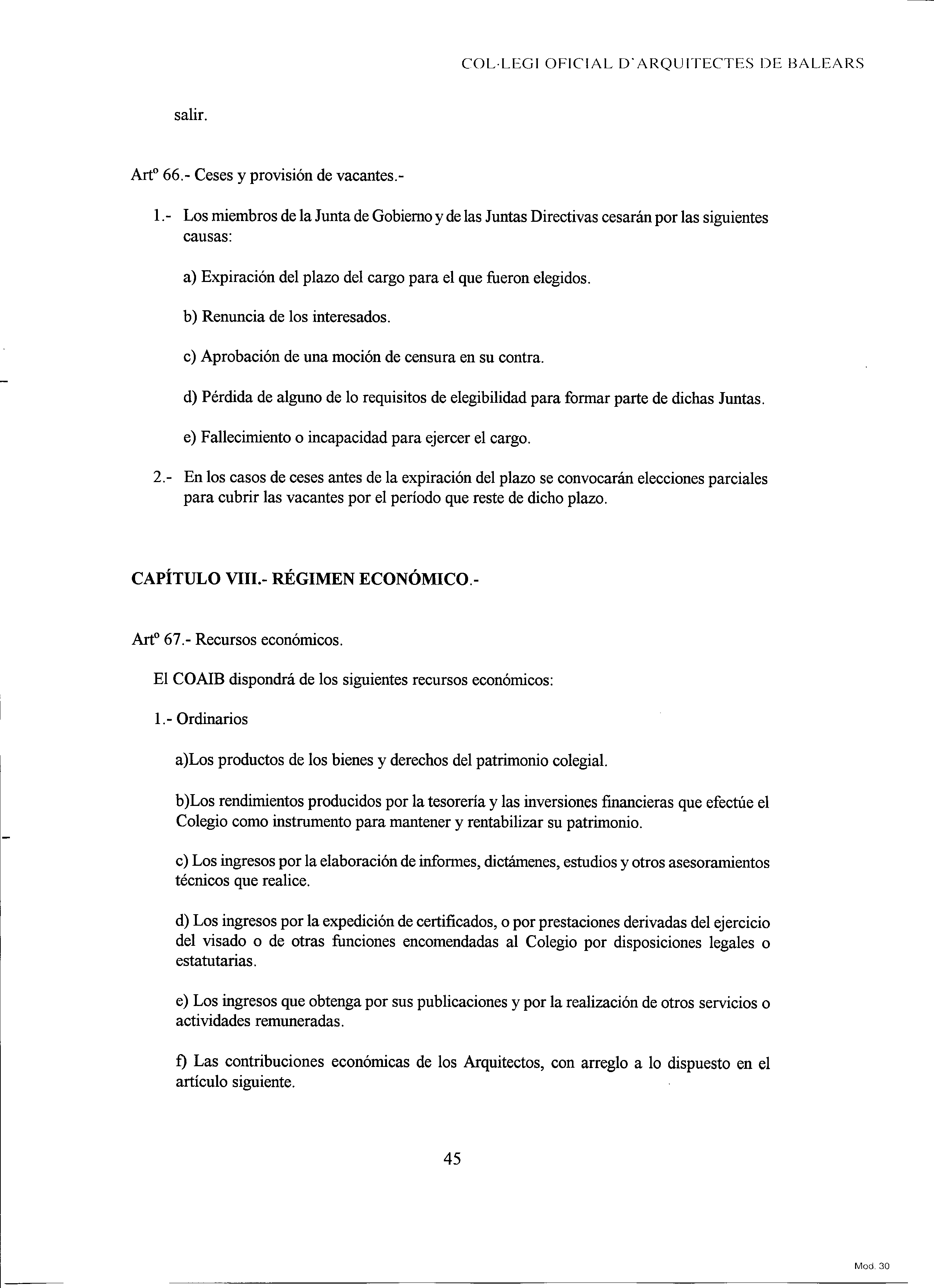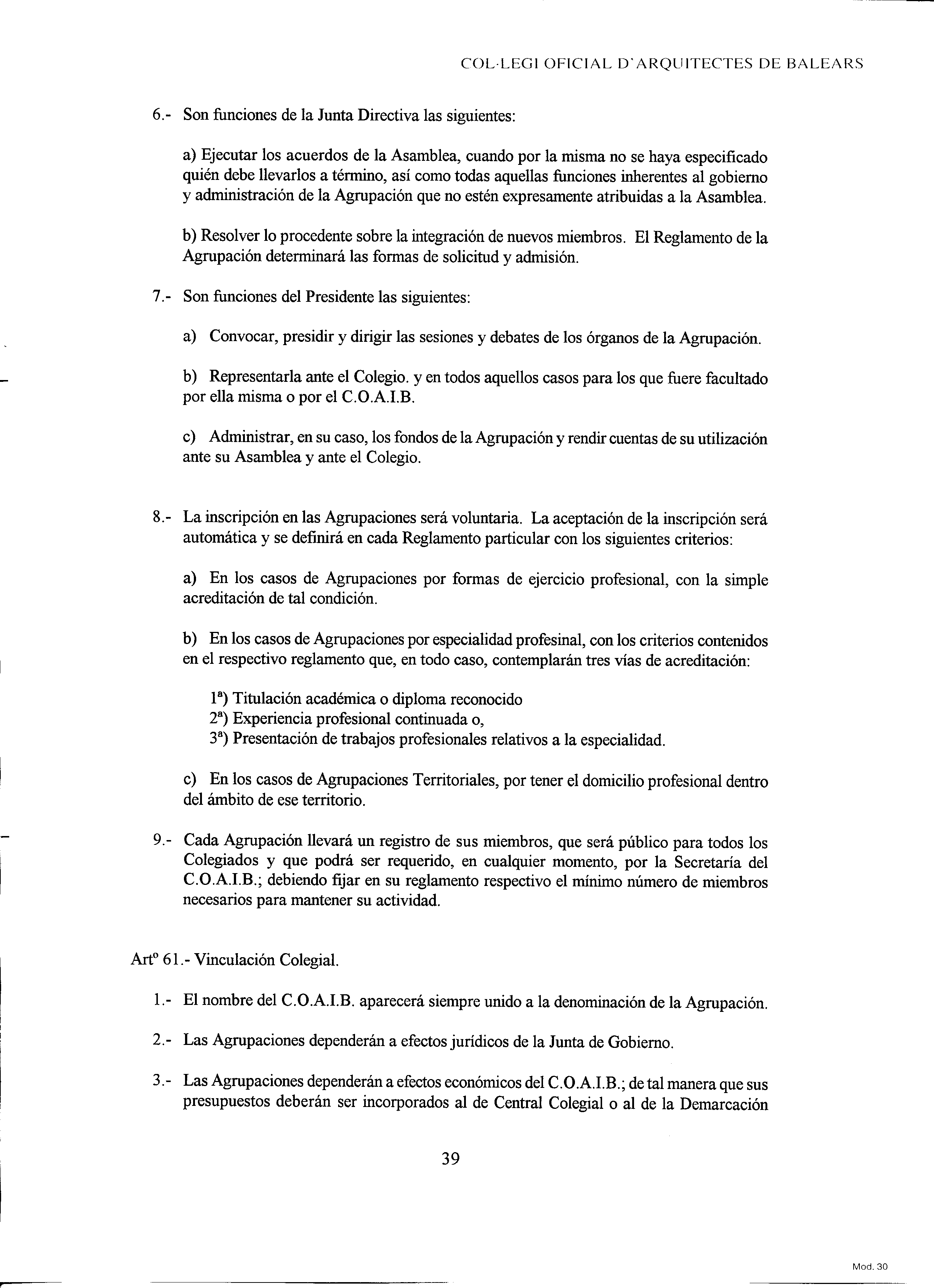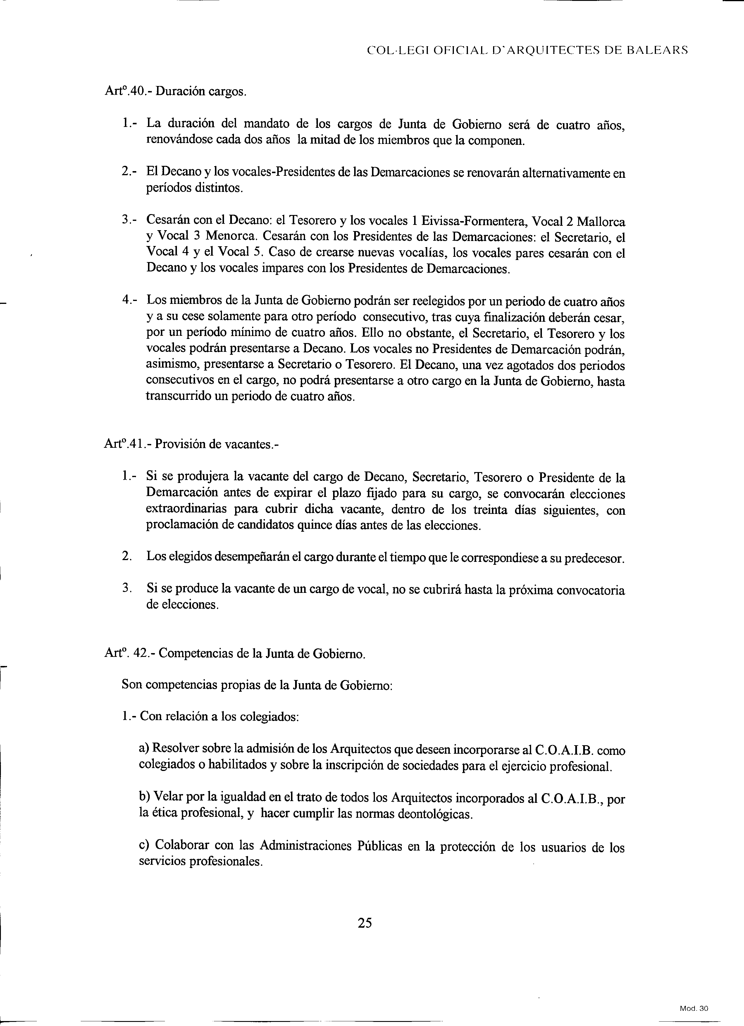 Estatuts del Col·legi Oficial d'Arquitectes de Balears.
