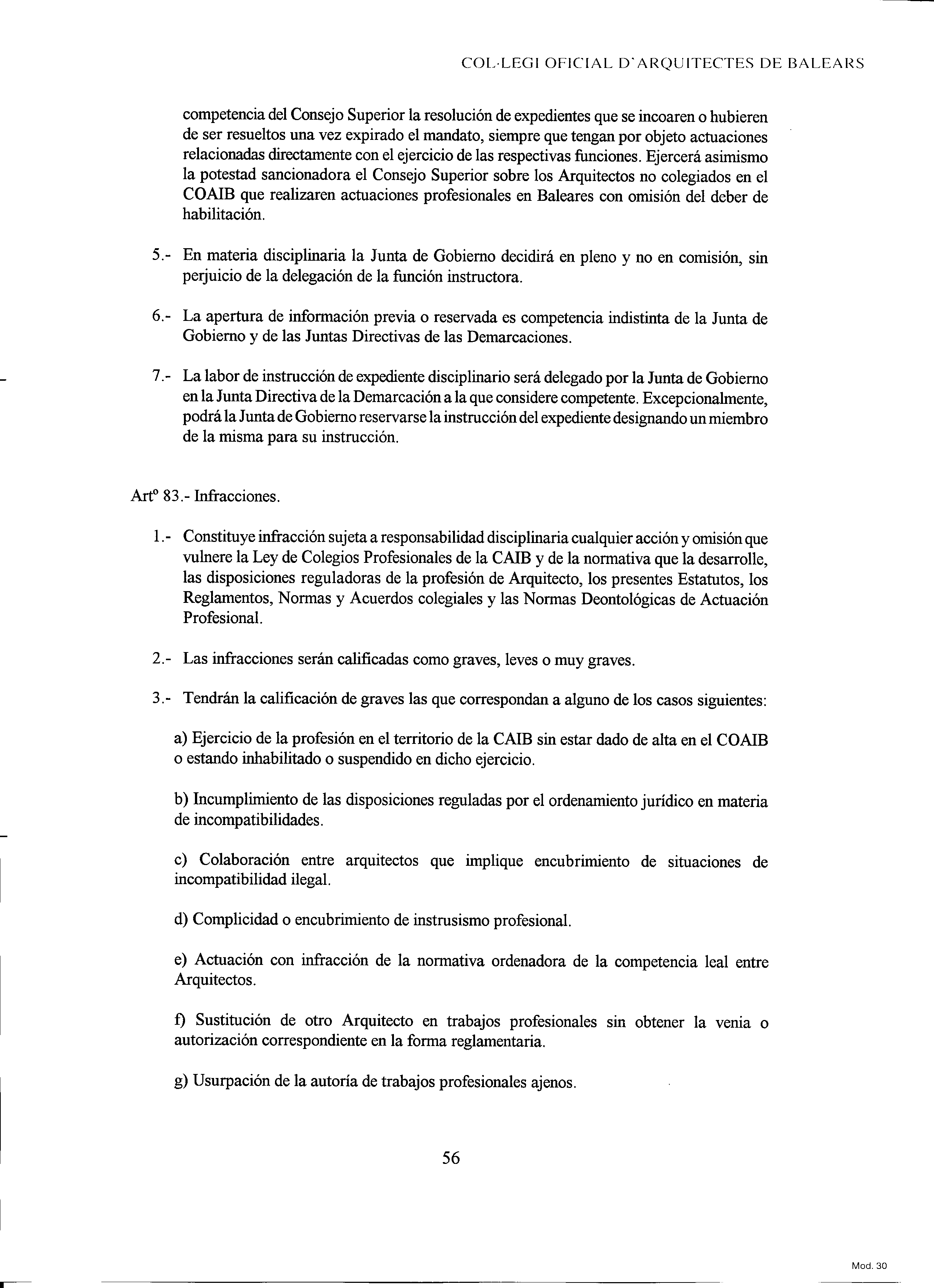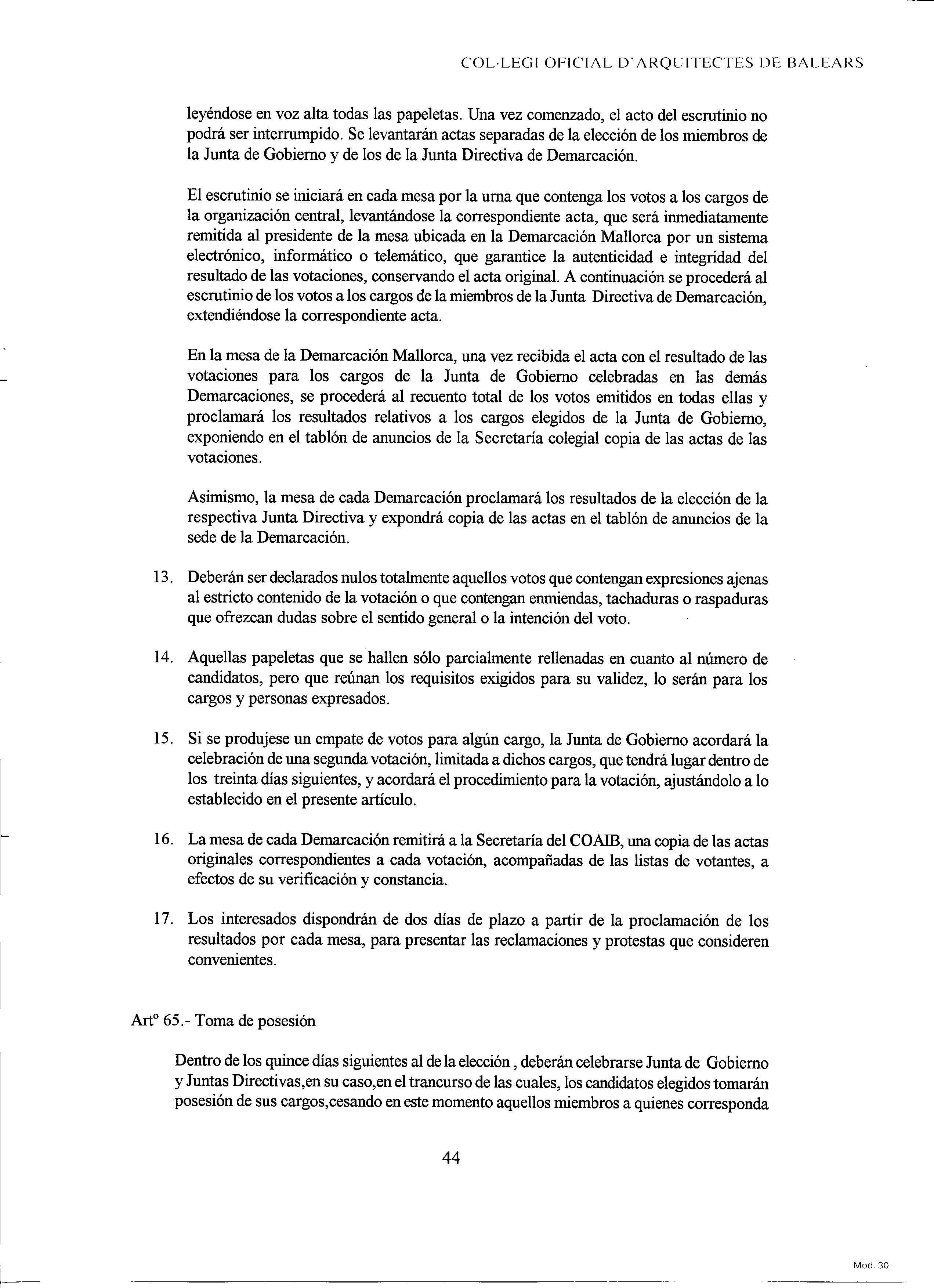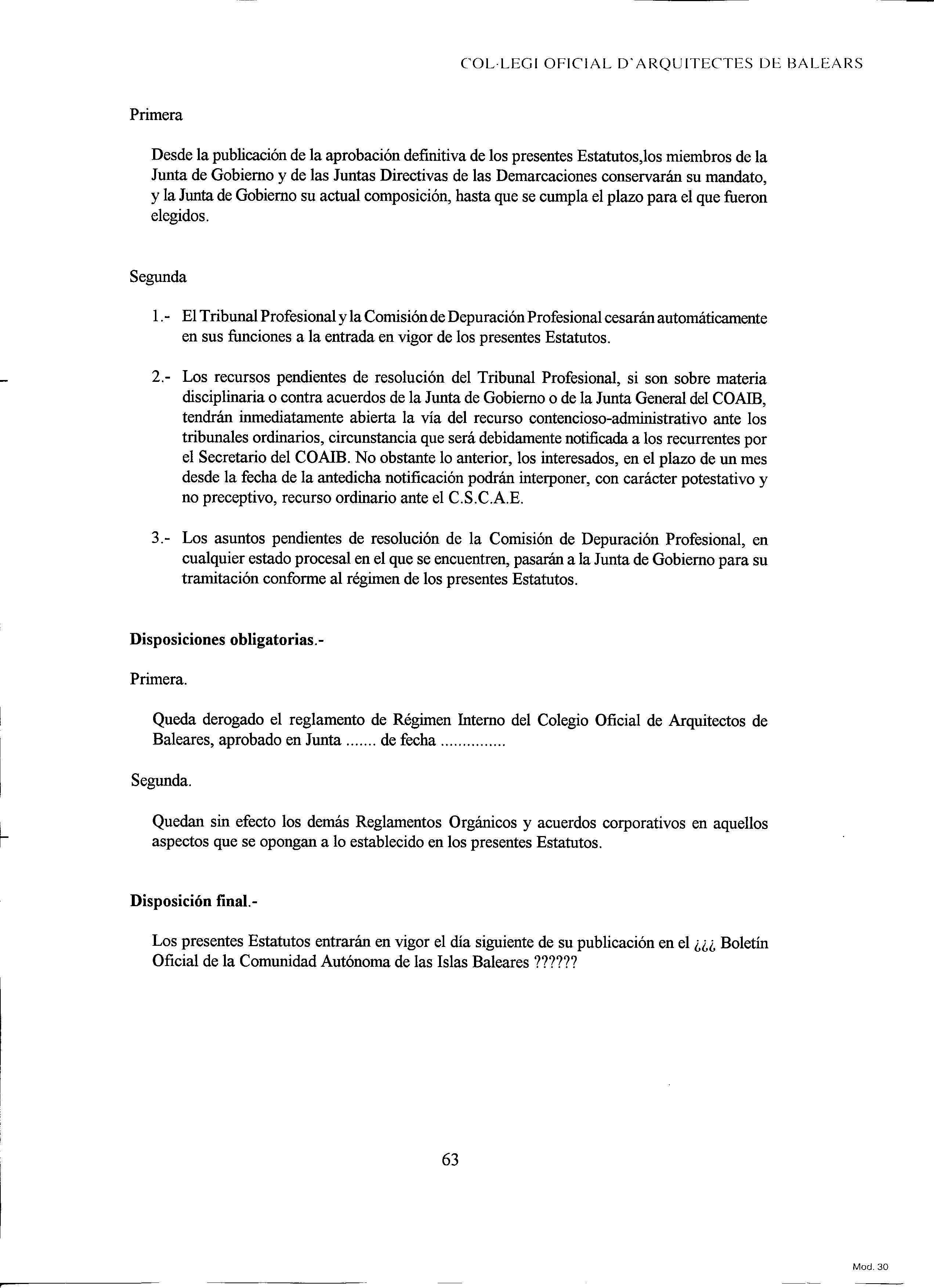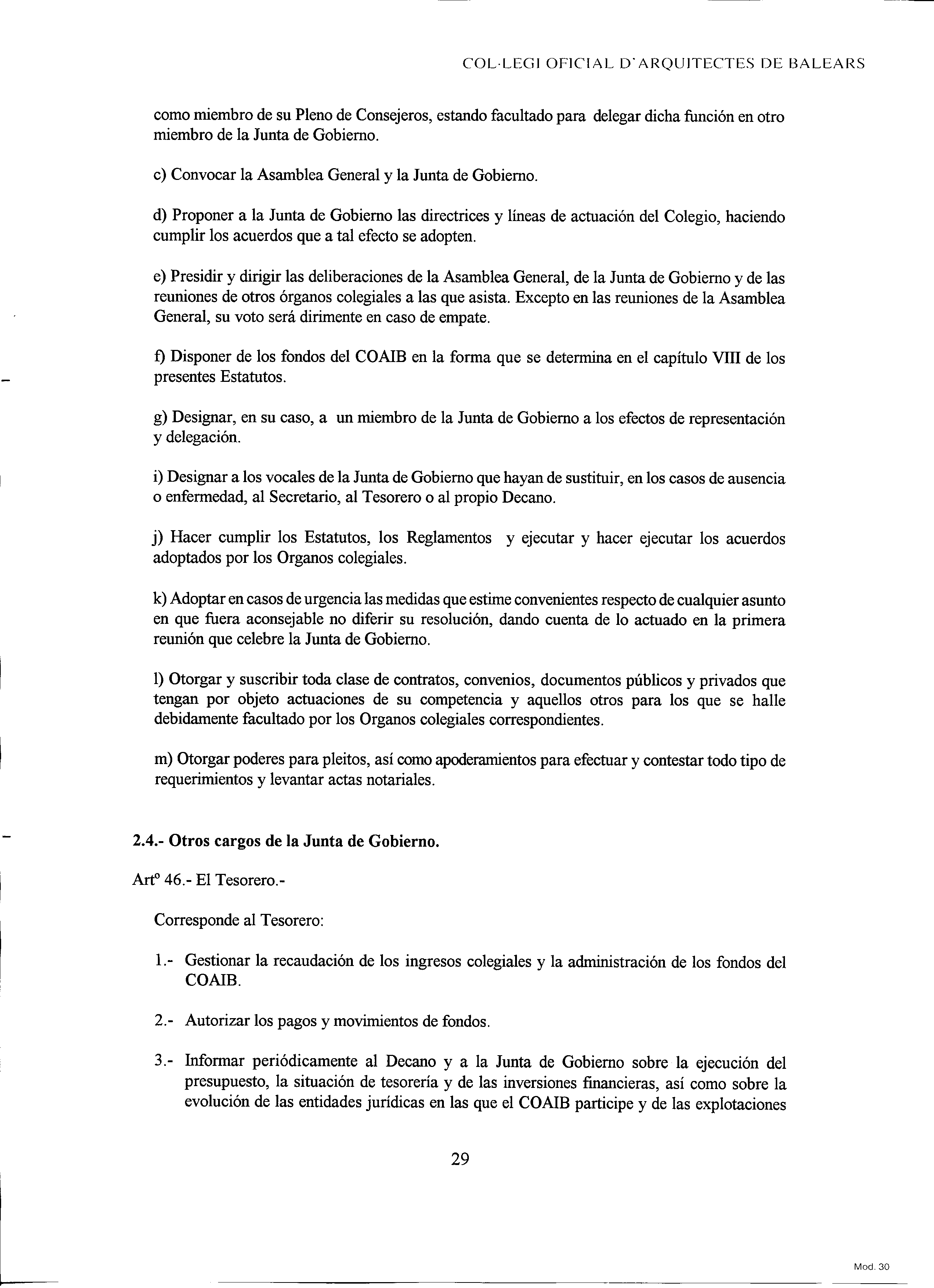 Estatuts del Col·legi Oficial d'Arquitectes de Balears.