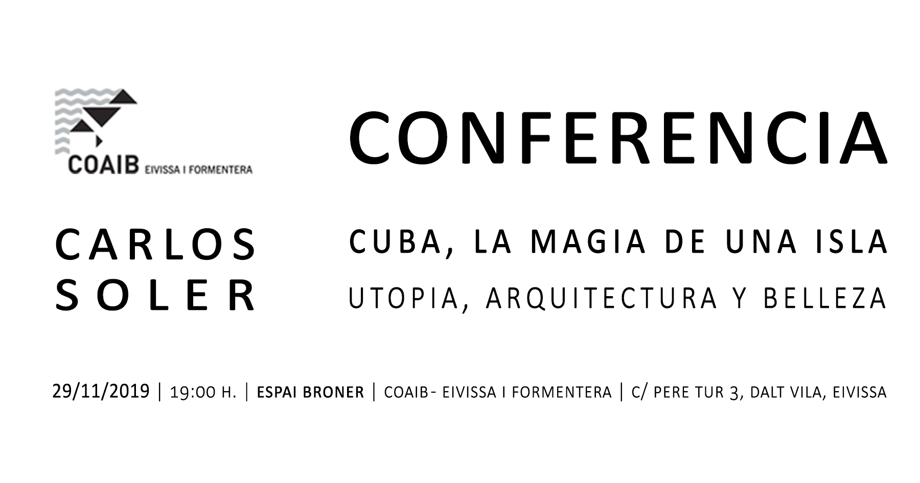 Conferència Carlos Soler "Cuba, la màgia d'una illa. Utopia, arquitectura i bellesa". Eivissa, 29 de novembre de 2019.