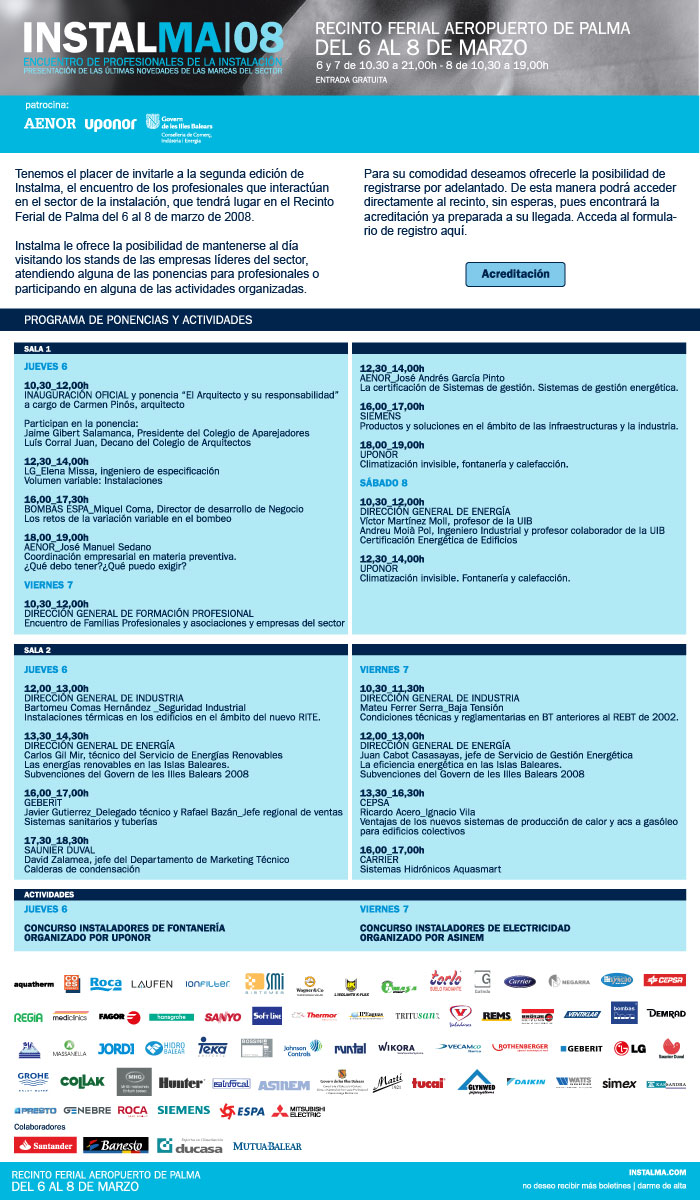 Fira INSTALMA 08 "Trobada de professionals de la instal·lació". Palma, del 6 al 8 de març de 2008