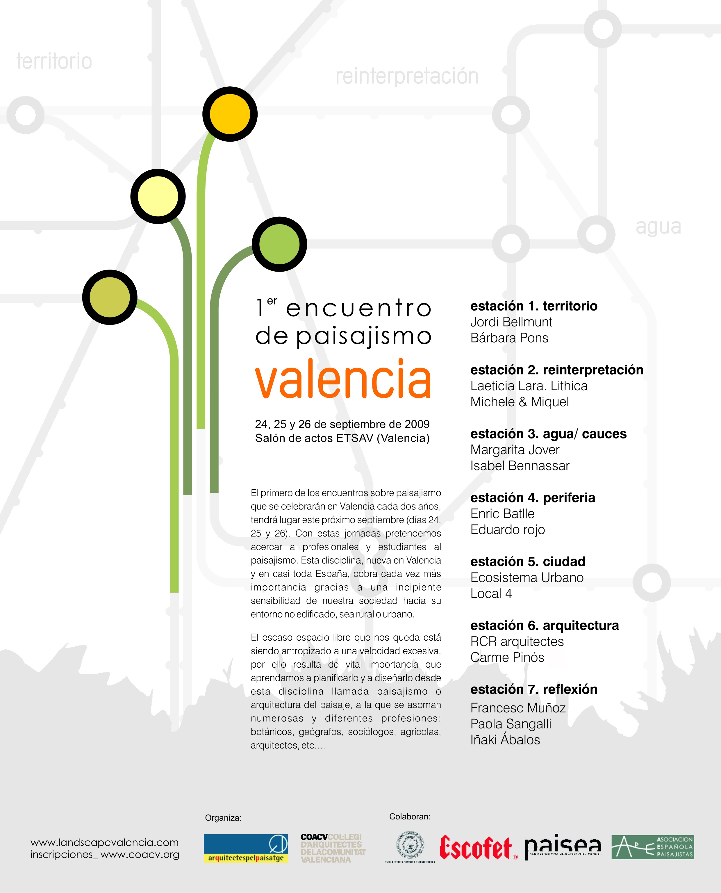 Organitzat per Arquitectes del Paisatge i el COA Comunitat Valenciana, es realitzarà en la ciutat de València els dies 24, 25 i 26 de setembre de 2009.