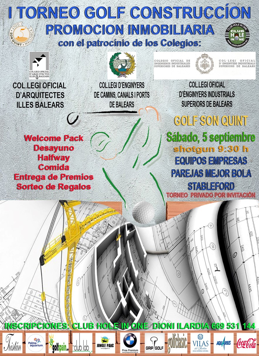 Els informem que el dia 5 de desembre tindrà lloc en el camp de golf de Son Quint – Arabella Golf, l'I Torneig de Golf de la Construcció i Promoció Immobiliària. El torneig compta amb el suport institucional del Col·legi i està organitzat per Club Hole In One.