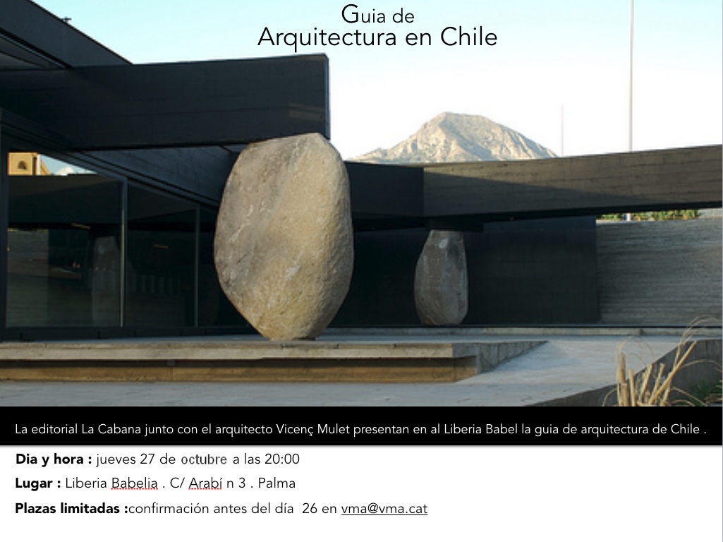 L'Editorial Cabana, juntament amb l'arquitecte Vicenç Mulet, presenten en la Llibreria Babel, la guia d'arquitectura de Xile.