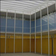 Situada en una “parcel·lació rústica”, aquesta vivenda pateix l'inconvenient de la proximitat de la carretera Pollença-Port i d'altres amb motiu a edificacions properes, pel que s'opta, envers la consecució de la privacitat desitjada, per una àrea quasi tancada pels murs perimetrals de façana i els de tancament del pati, que s'obriran discrecionalment. Així, ambdós cossos (en què la configuració dels plànols inclinats de coberta obeeixen a imposicions de la Normativa Urbanística) més els murs de tancament del pati conformaran l'àrea contenidora de la piscina, terrassa coberta i descoberta contigües a les parts totalment vidriades i constituiran referents propers de totes les dependències.