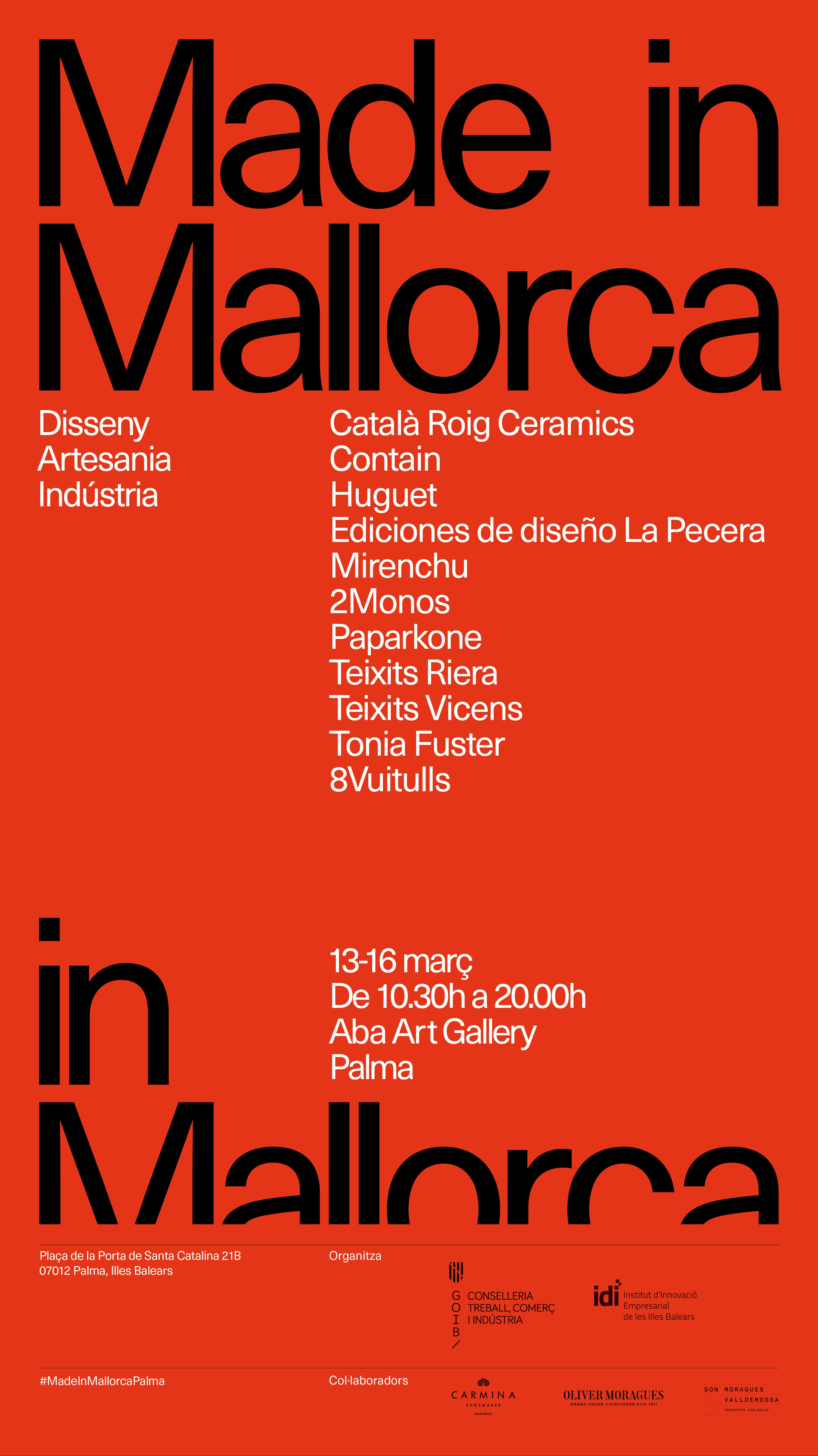 Con el objetivo de continuar con la promoción de los diseñadores y productores de las Islas a un público local e internacional, se realiza esta exposición y conjunto de actividades bajo el título "Made in Mallorca"