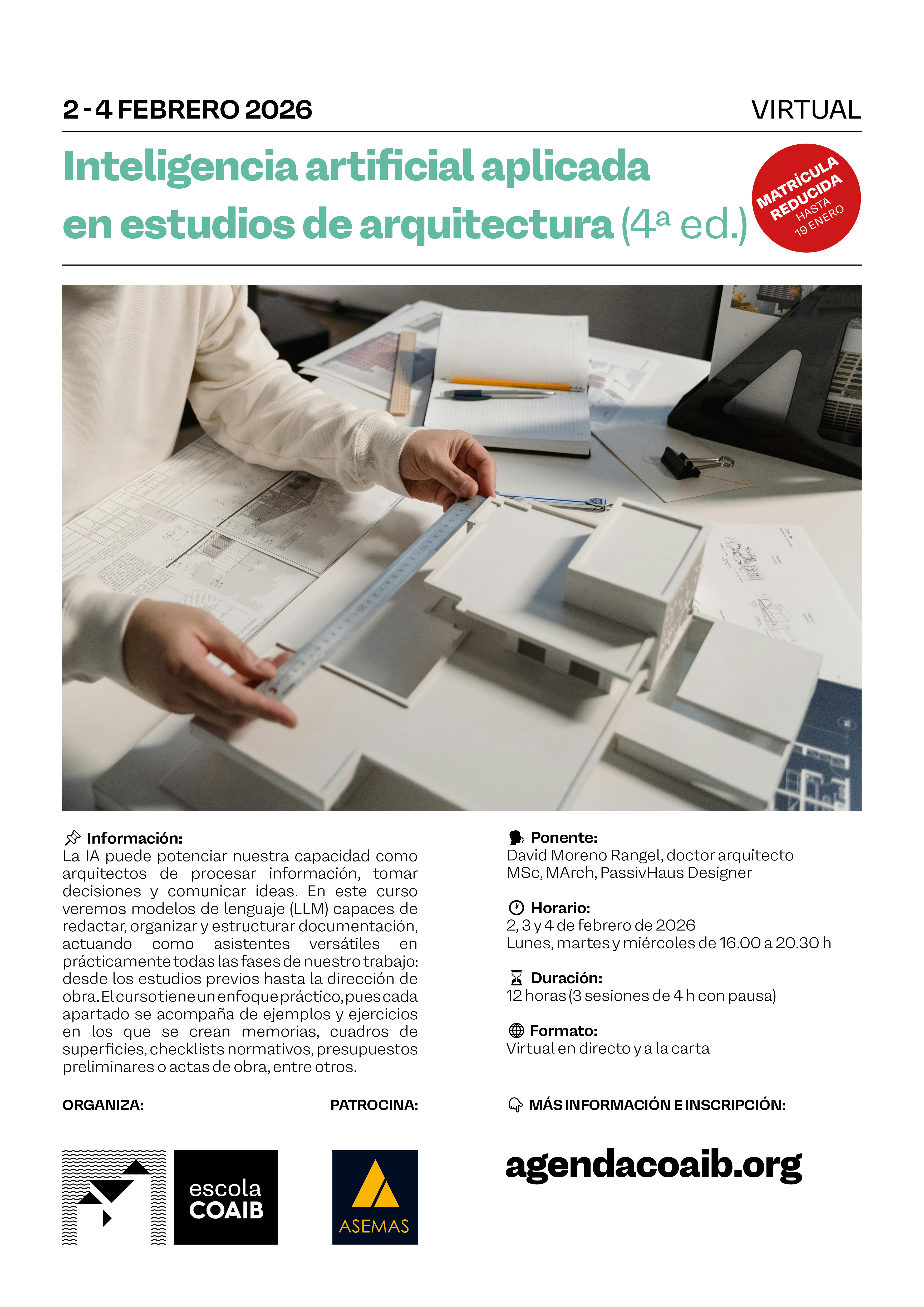 4ª edición – Curso Inteligencia artificial aplicada en estudios de arquitectura: 2, 3 y 4 de febrero de 2026.