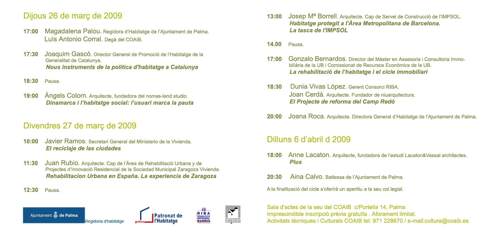 Lugar: Salón de Actos de la sede central del COAIB (Portella, 14 - Palma)