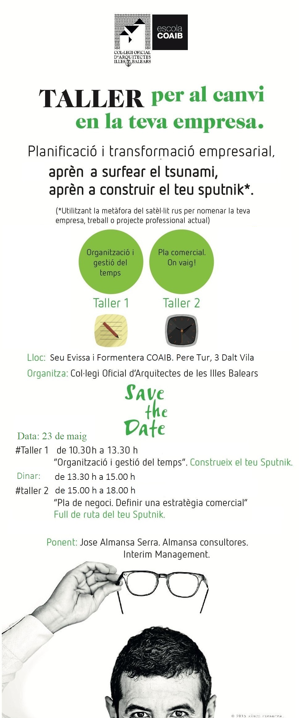 Curs Perfil Empresarial. Taller per al canvi a la teva empresa. Planificació i transformació empresarial. Aprèn a surfejar el tsunami i a construir el teu sputnik*. COAIB Eivissa, 23 de maig de 2018