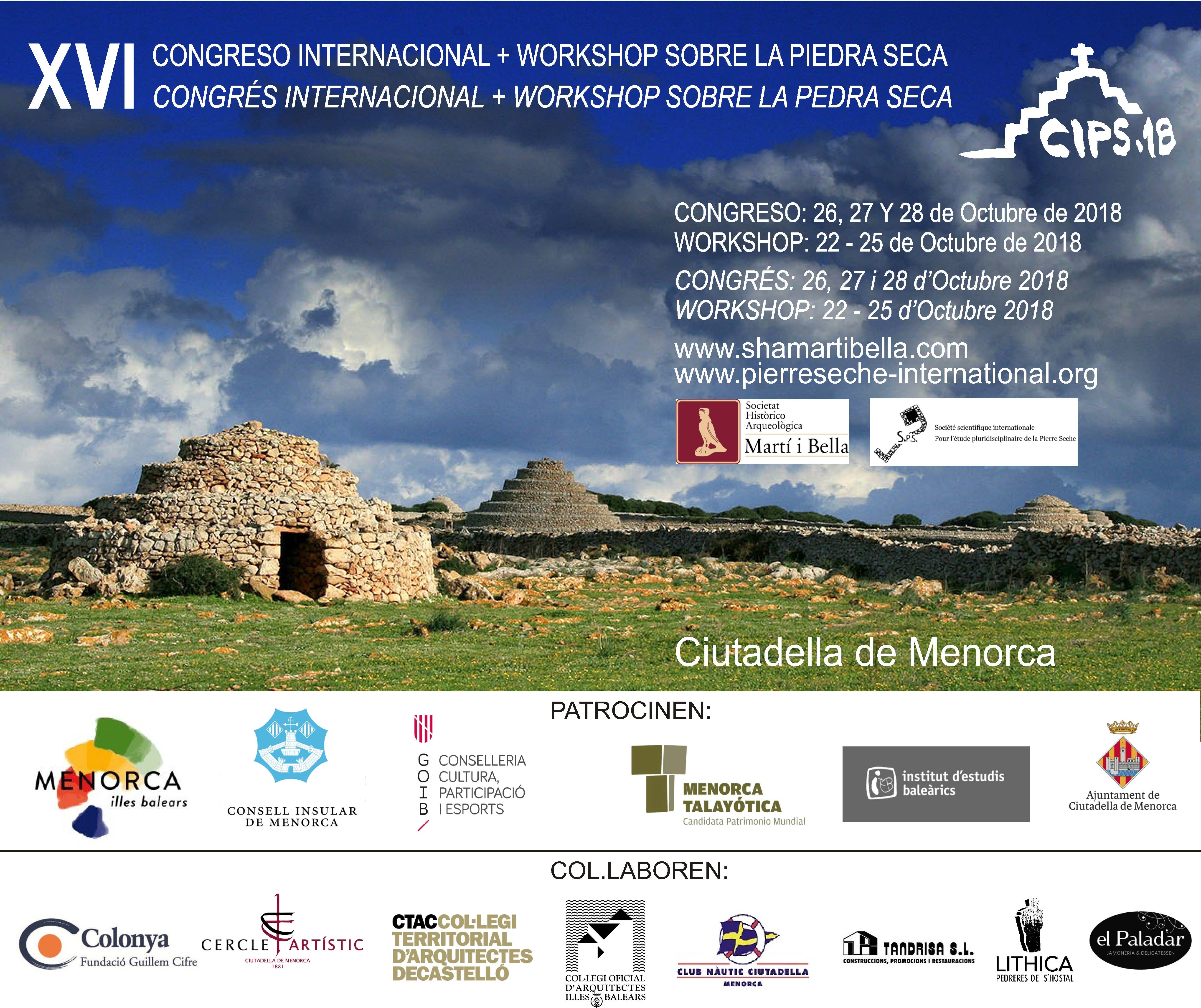 XVI Congrés Internacional sobre la Pedra en Sec. Ciutadella de Menorca, del 26 al 28 d'octubre de 2018.