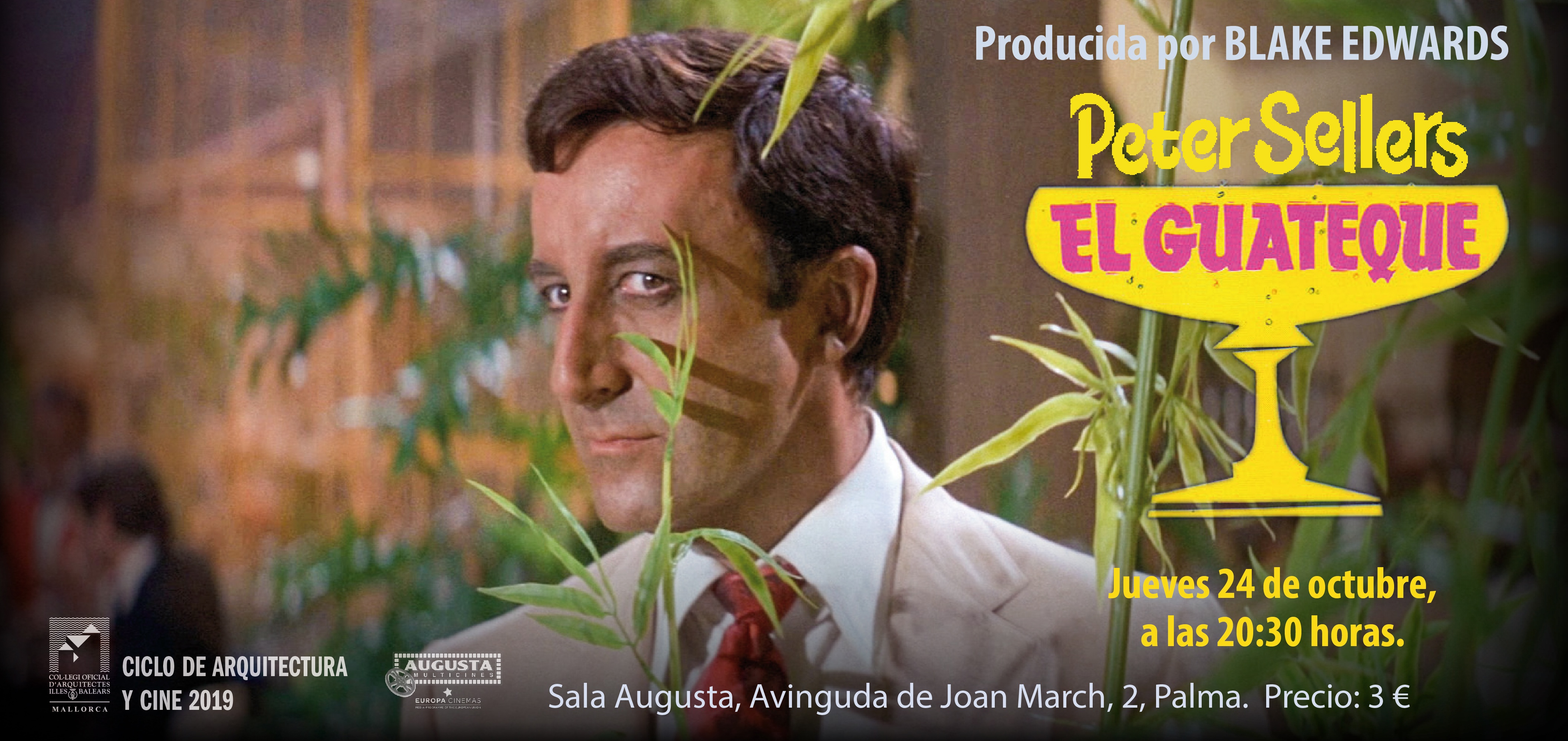 La Demarcació Mallorca del COAIB en col·laboració amb Augusta Multicines, amb motiu del Cicle 2019 d’arquitectura i cinema, organitza la projecció de la pel·lícula El guateque de Blake Edwards, que se celebrarà el dijous 24 d’octubre, al cine Augusta de Palma, sala en la qual aquest cicle s'obri a un públic més ampli, per fer arribar l'arquitectura i les nostres activitats més enllà del nostre àmbit.