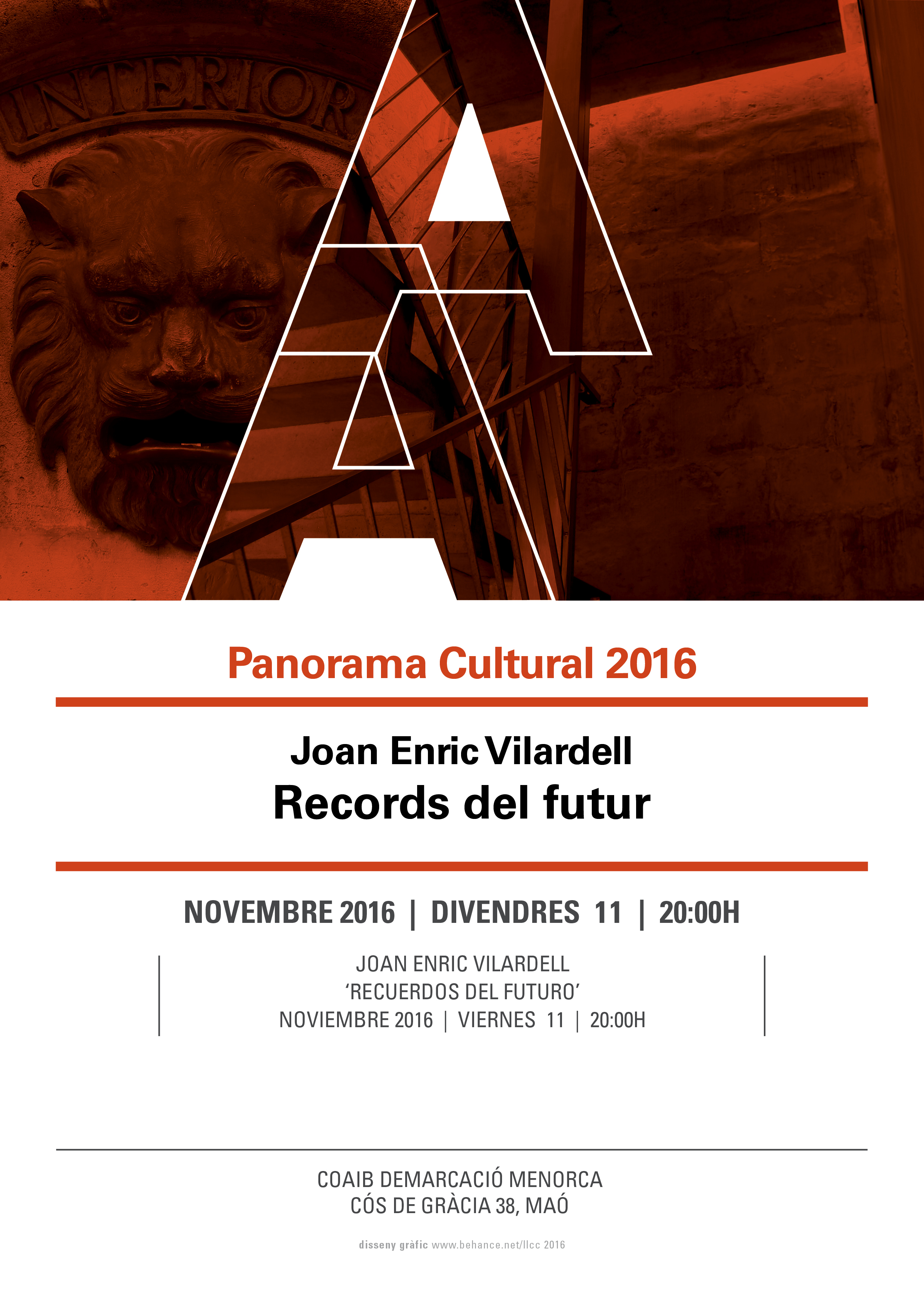 La vocalía de Cultura de la Demarcació de Menorca del COAIB organitza la tercera conferència “Interior” del “Panorama Cultural 2016” a càrrec del Doctor Arquitecte i Arquitecte Tècnic Joan Enric Vilardell Santacana titulada “Records del futur”. Recomanem, escapant del definitiu fred tardorenc, (amb els records estivals -és a dir del passat- ja molt esvaït), concórrer sota l'abric de la nostra volta de canó a escoltar a aquest home d'acció àmpliament premiat del que coneixem la seva altra faceta com polemista però, sobretot, la seva secreta vocació de pedagog que, per ventura, permeti que, finalment, se li recordi també com a Mestre.