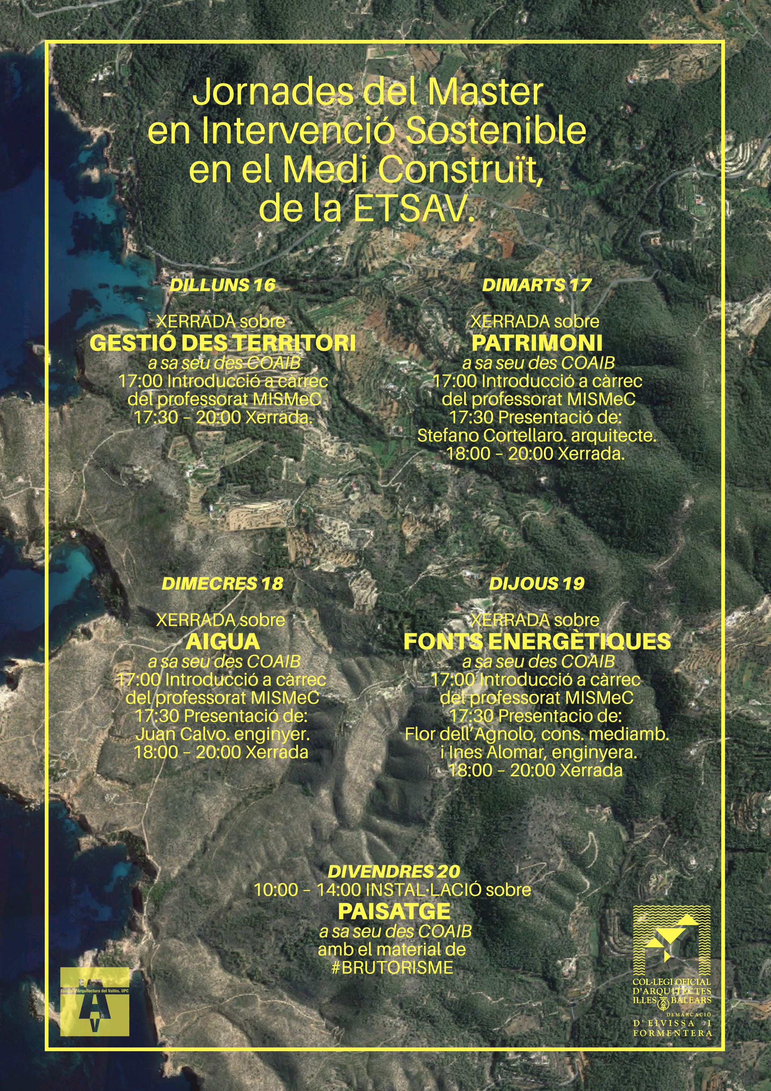 Jornadas del Máster universitario en intervención sostenible en el medio construido. MISMec.Eivissa, 16 al 20 de abril.
