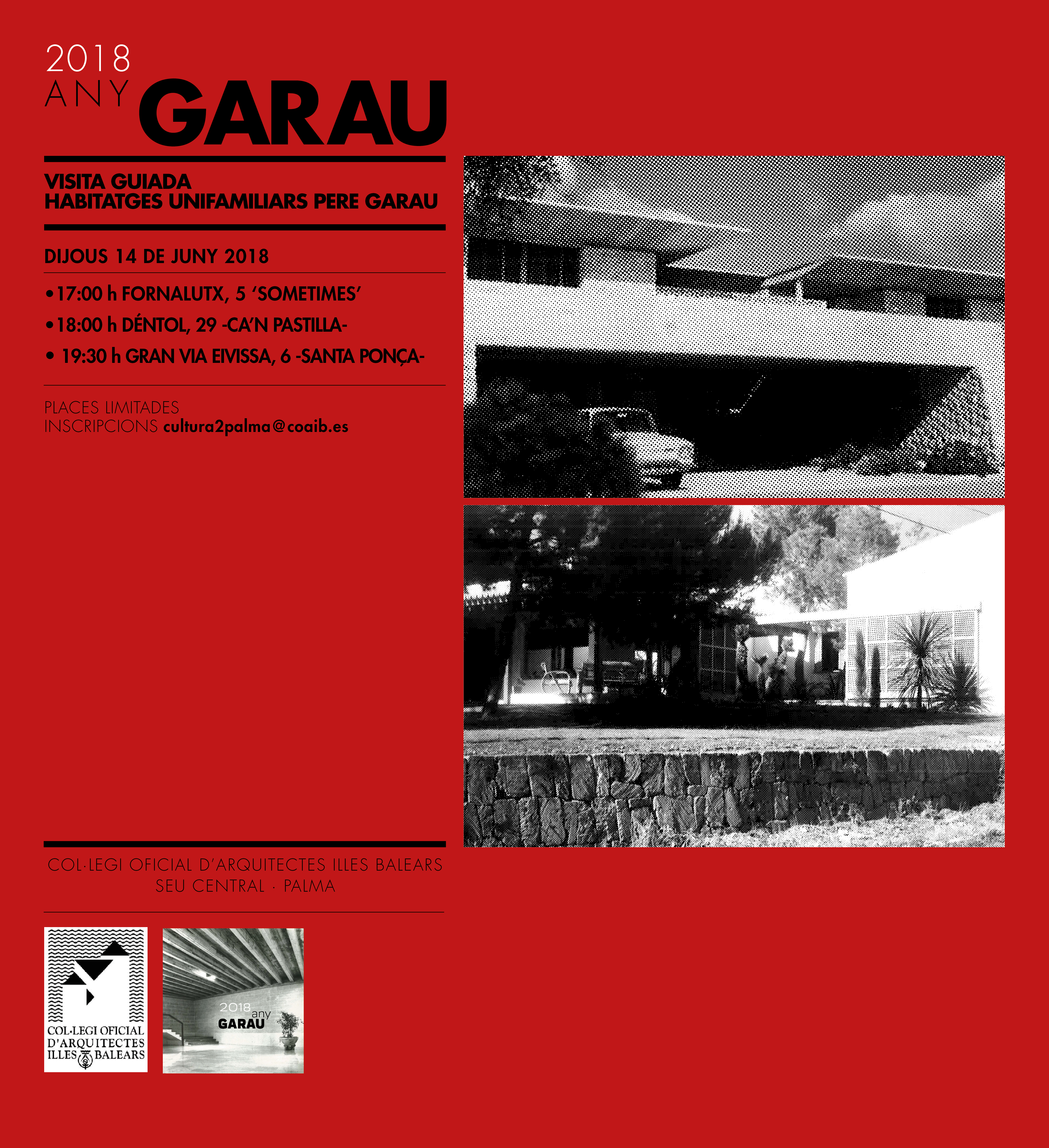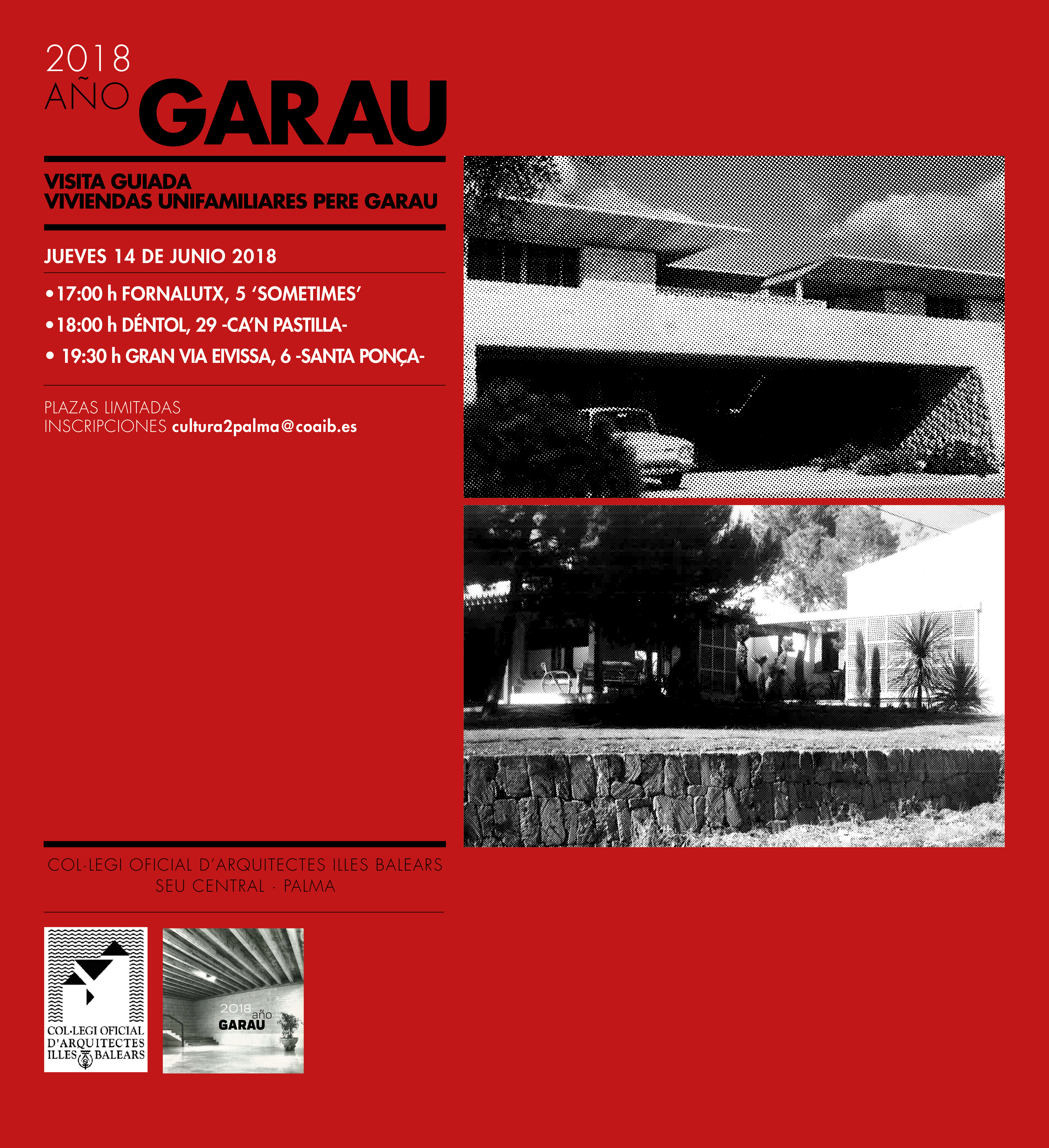 Año Garau: Visita viviendas unifamiliares Pere Garau. 14 junio 2018 17:00- 20:30 horas.