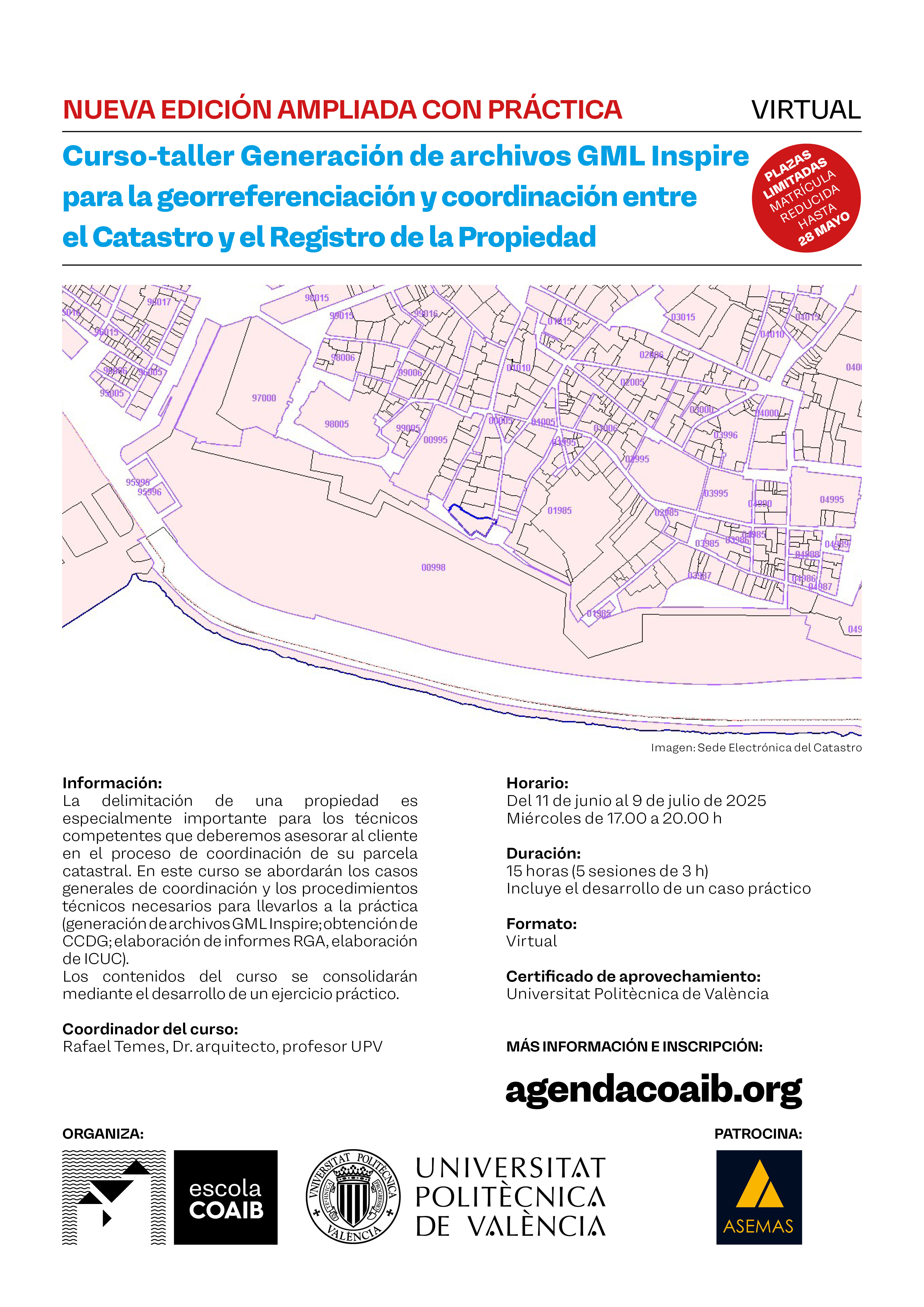 NUEVA EDICION AMPLIADA_Curso Generación de archivos para la georreferenciación y coordinación Catastro - Registro de la Propiedad. Del 11 de junio al 9 de julio de 2025.