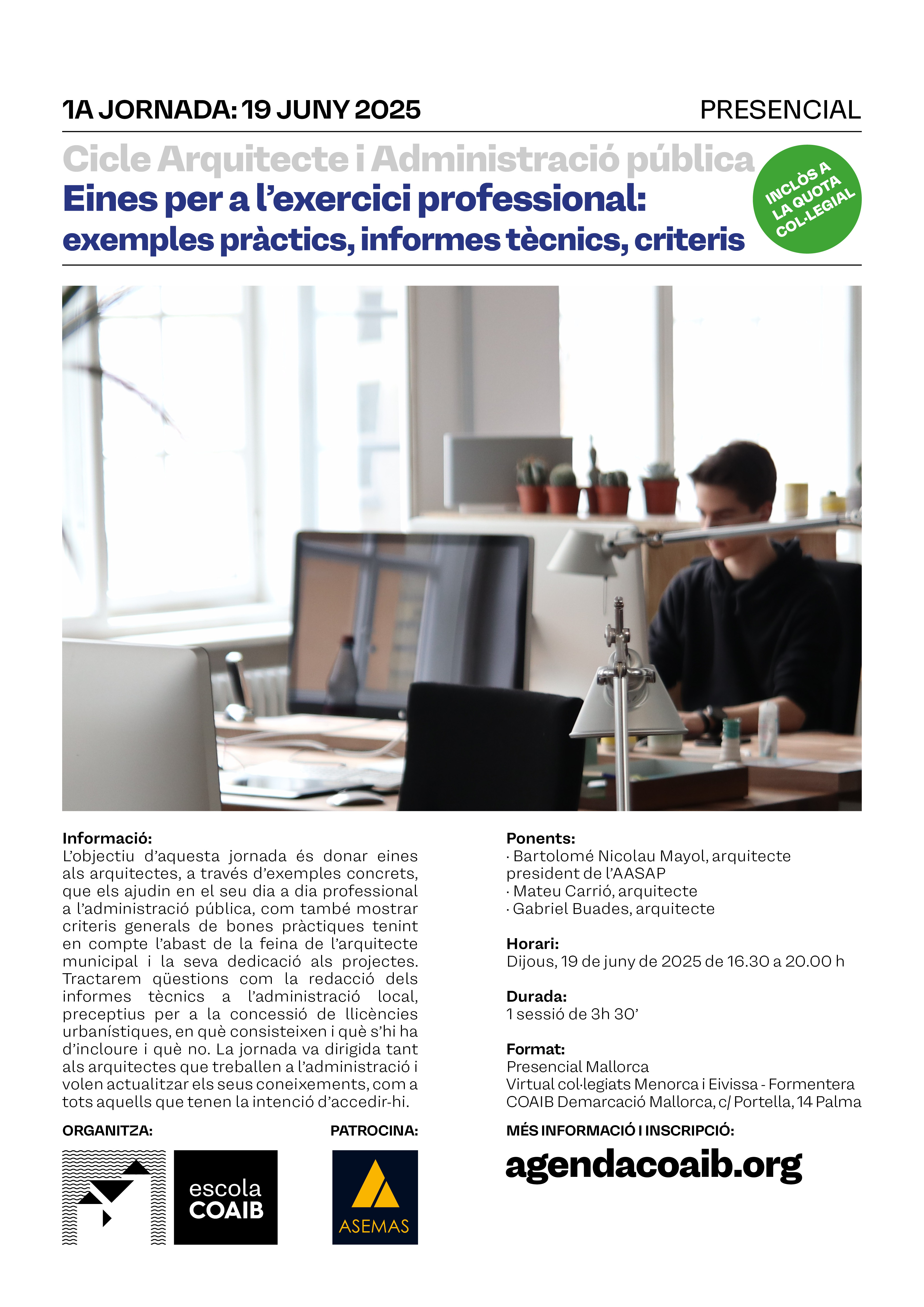 Presencial: sede del COAIB Mallorca (carrer Portella, 14, Palma)