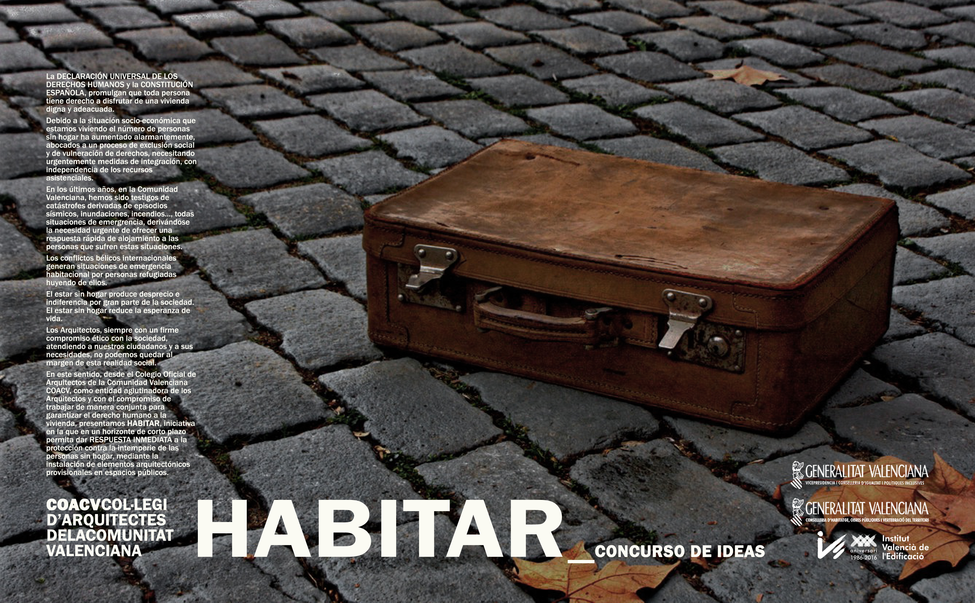 Objeto: El objeto del presente concurso de ideas, es la selección por parte del Jurado, de la mejor solución arquitectónica, que permita una respuesta inmediata a la protección contra la intemperie de las personas sin hogar, mediante la instalación de elementos provisionales en espacios públicos.
